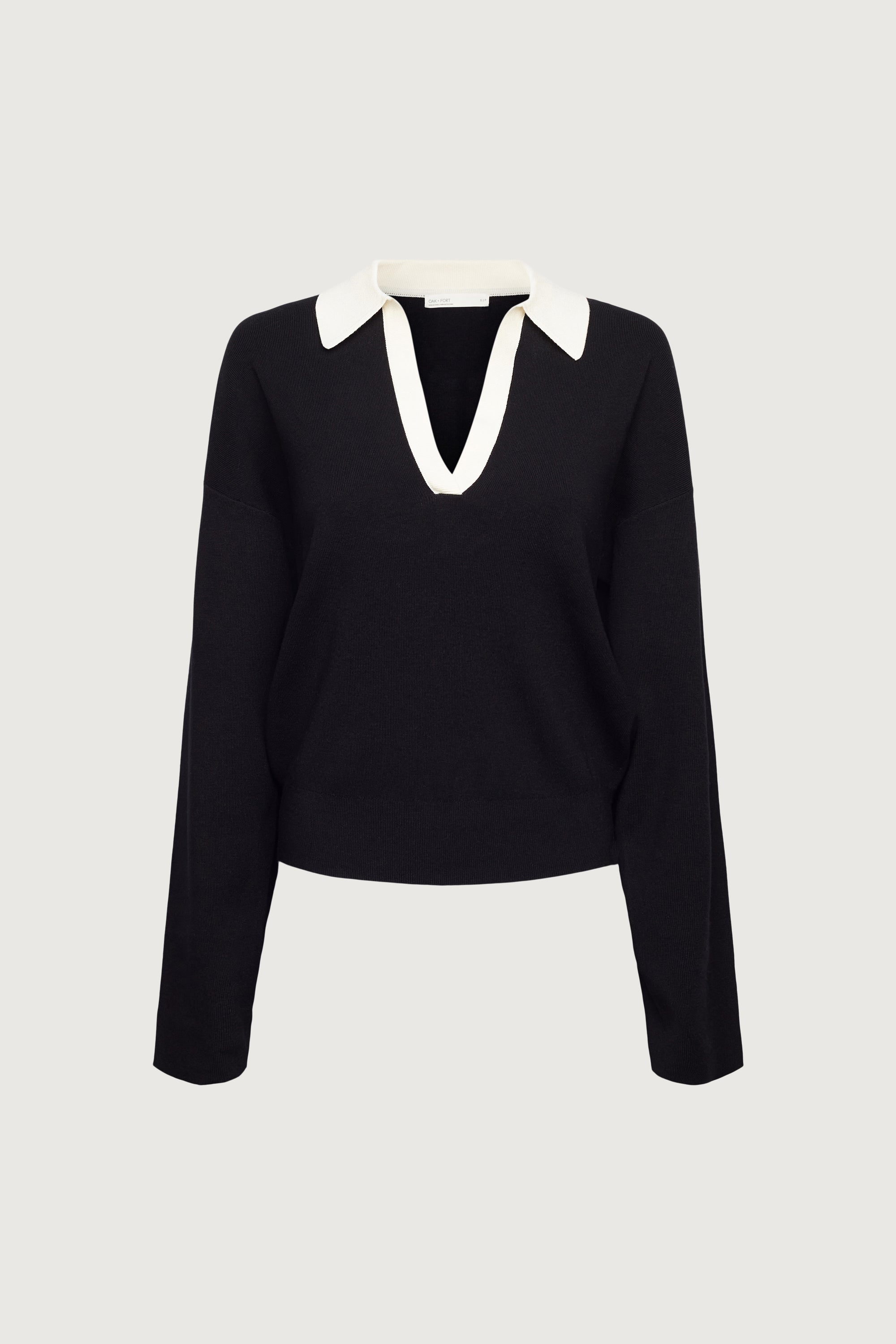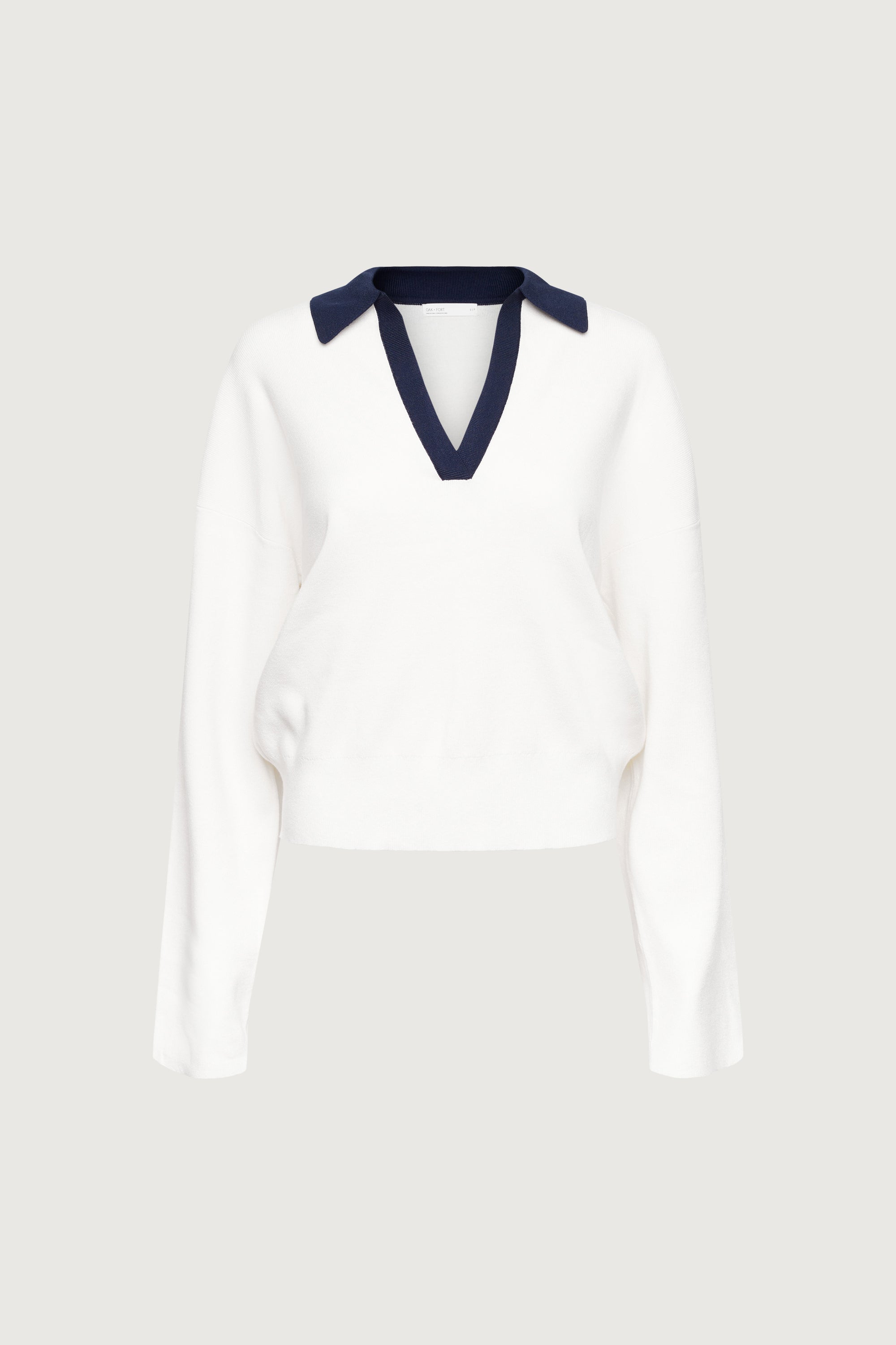 This V-neck sweater is made in a relaxed fit and is detailed with a contrast collared, V-neckline. A versatile knit you can wear from day to night, wear yours with straight leg trousers and boots.