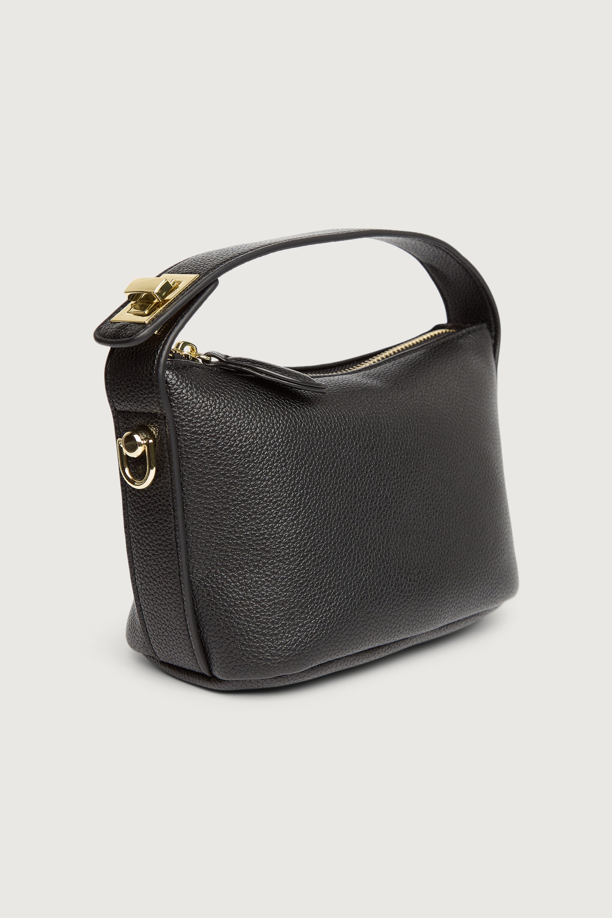 This convertible mini crossbody bag is made from pebbled vegan leather and features a removable turn-lock top handle and a removable, adjustable shoulder strap. A zip closure and internal zip pocket help keep your essentials organized and secure. Compact and functional, this bag easily transitions from day to night.