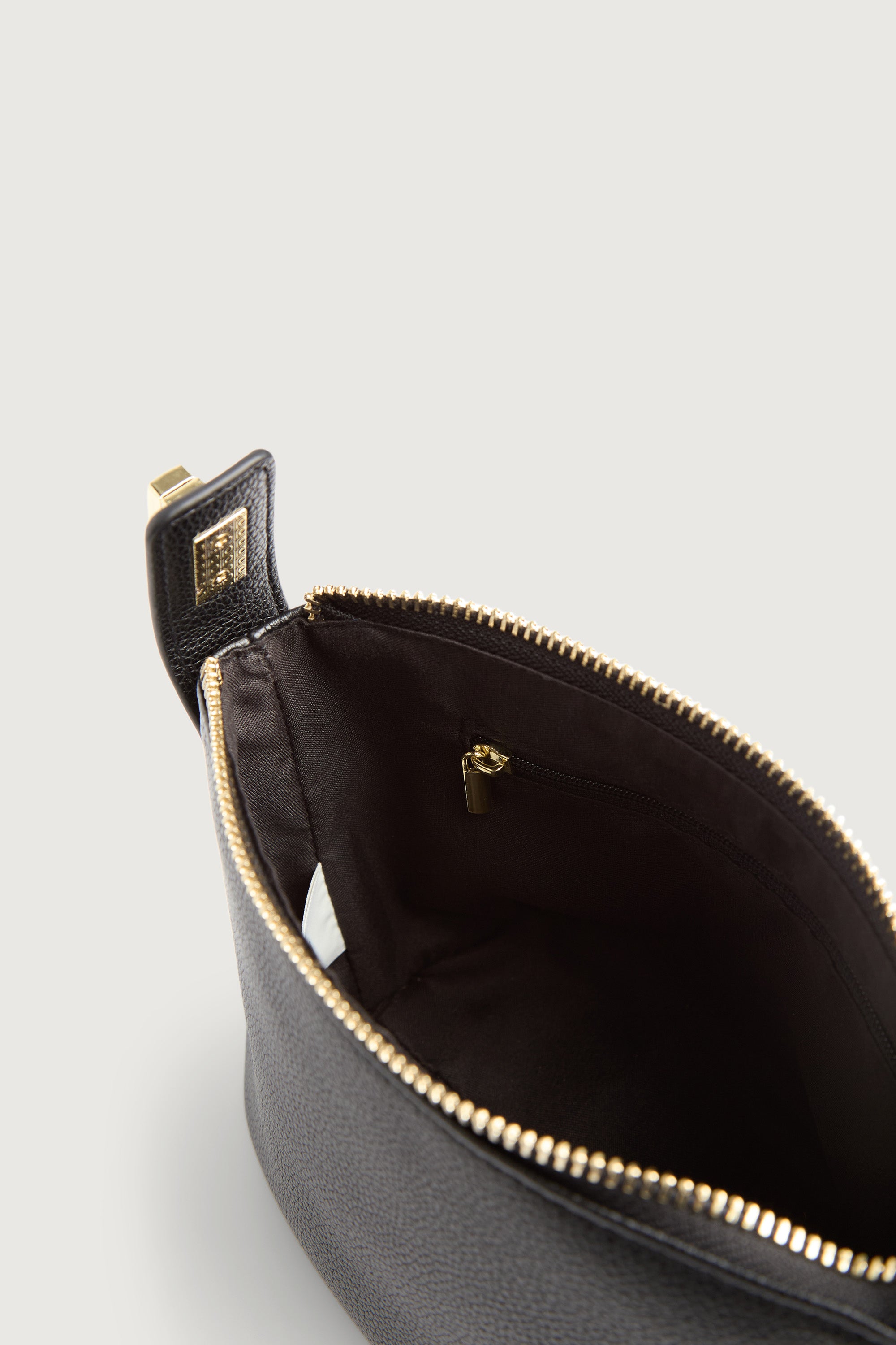 Pebbled vegan leather. Removable top handle. Removable and adjustable crossbody strap. Zip closure. Internal zip pocket.