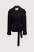 This cropped trench coat is made from sustainable fabrics in an oversized fit. It has epaulettes, removable belt details on the cuffs and around the waist and a cool sleeve panel design for a layered look. It has a single button closure, you can wear it buttoned up and the waist belt tied or open. Your new go-to outerwear to wear this season and into the next, pair yours with high-rise trousers and kitten heels.
