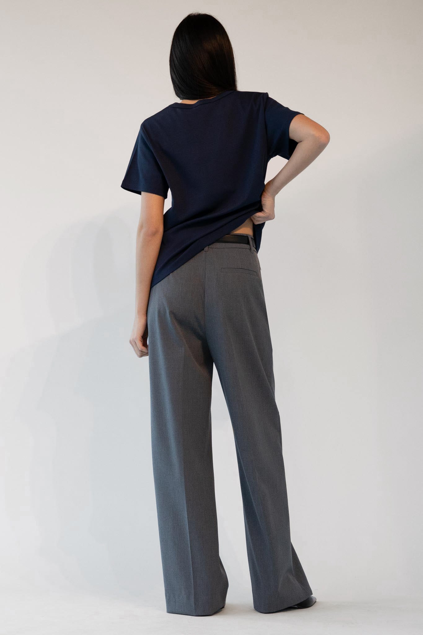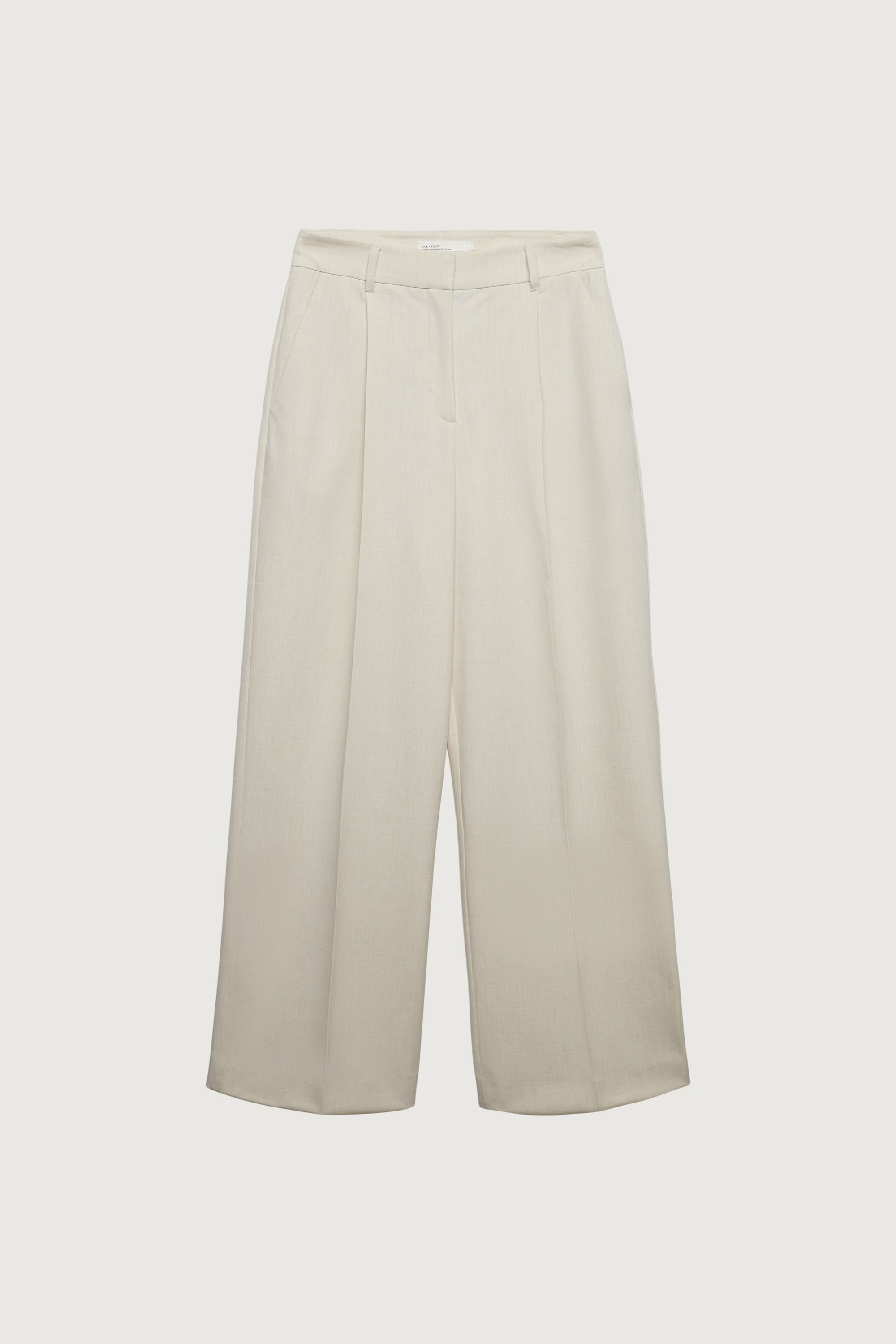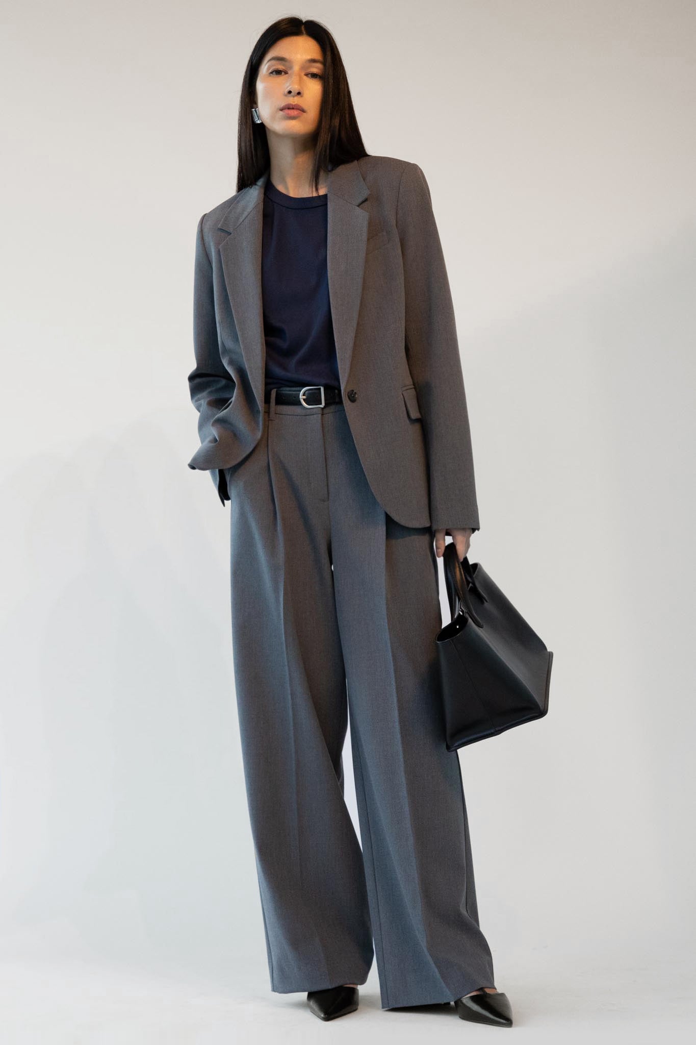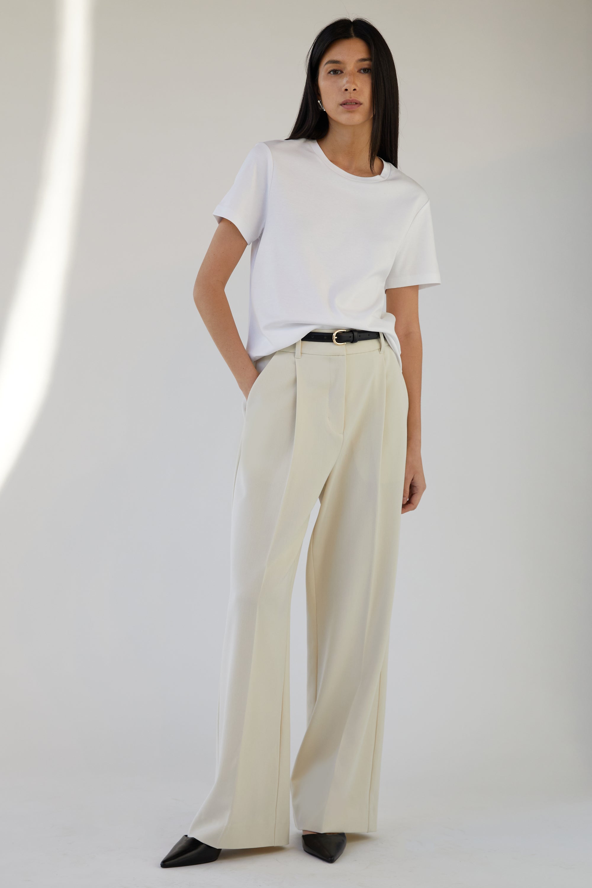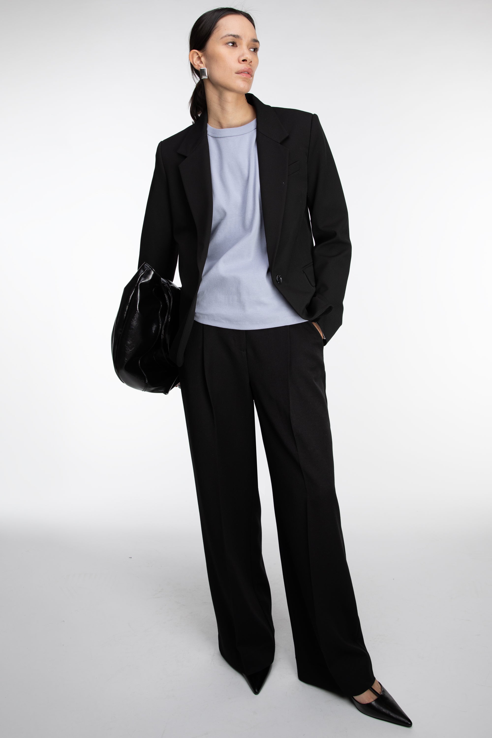 These high-rise wide leg trousers are made in a classic fit. A subtly tailored silhouette that is complete with front pleats, slash pockets and a belt loop to emphasize the high waist. A staple you need this season, wear yours as a set with the matching blazer.