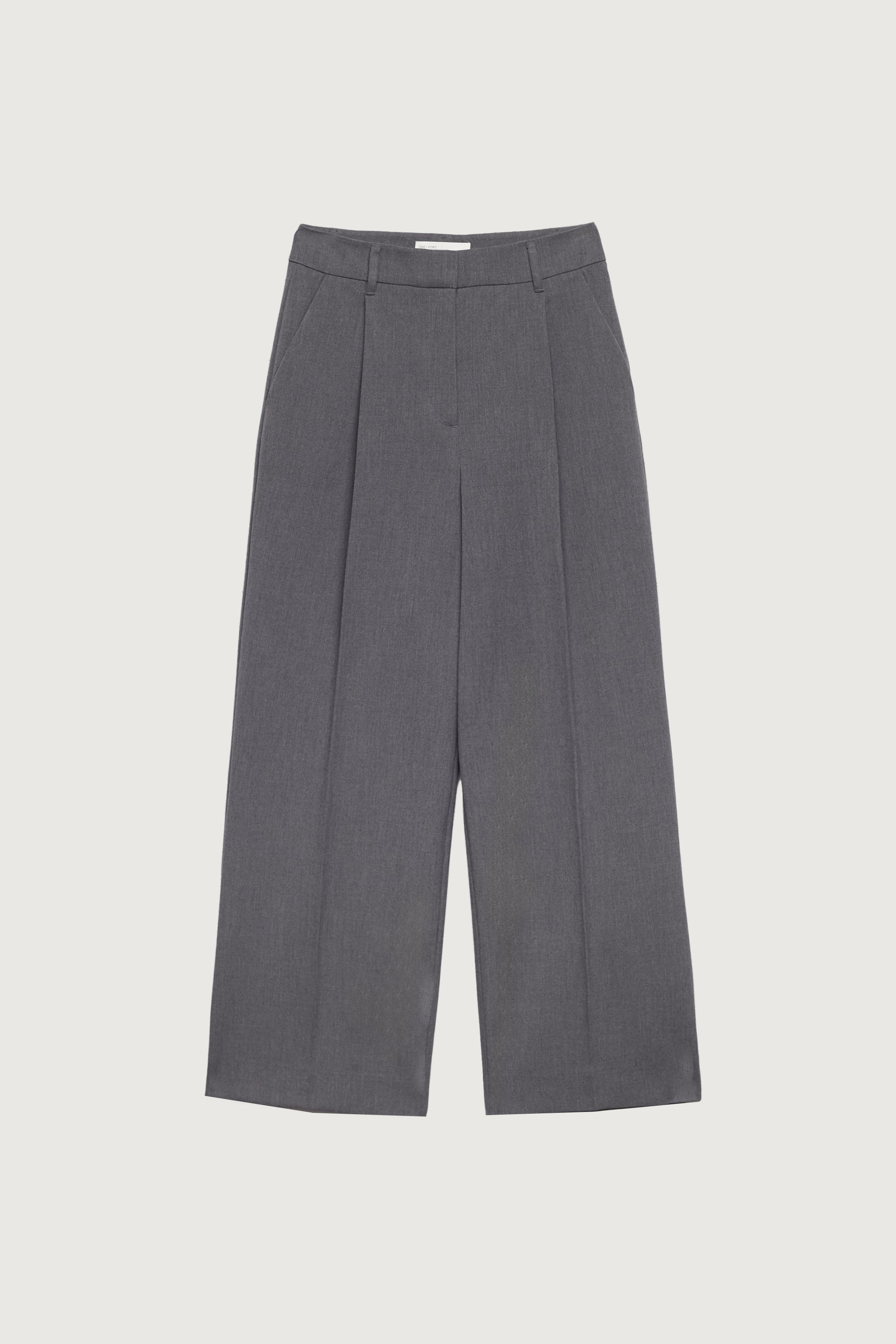 Recycled suiting fabric. Front pleats. Slash pockets. Belt loop. Full functional zip.