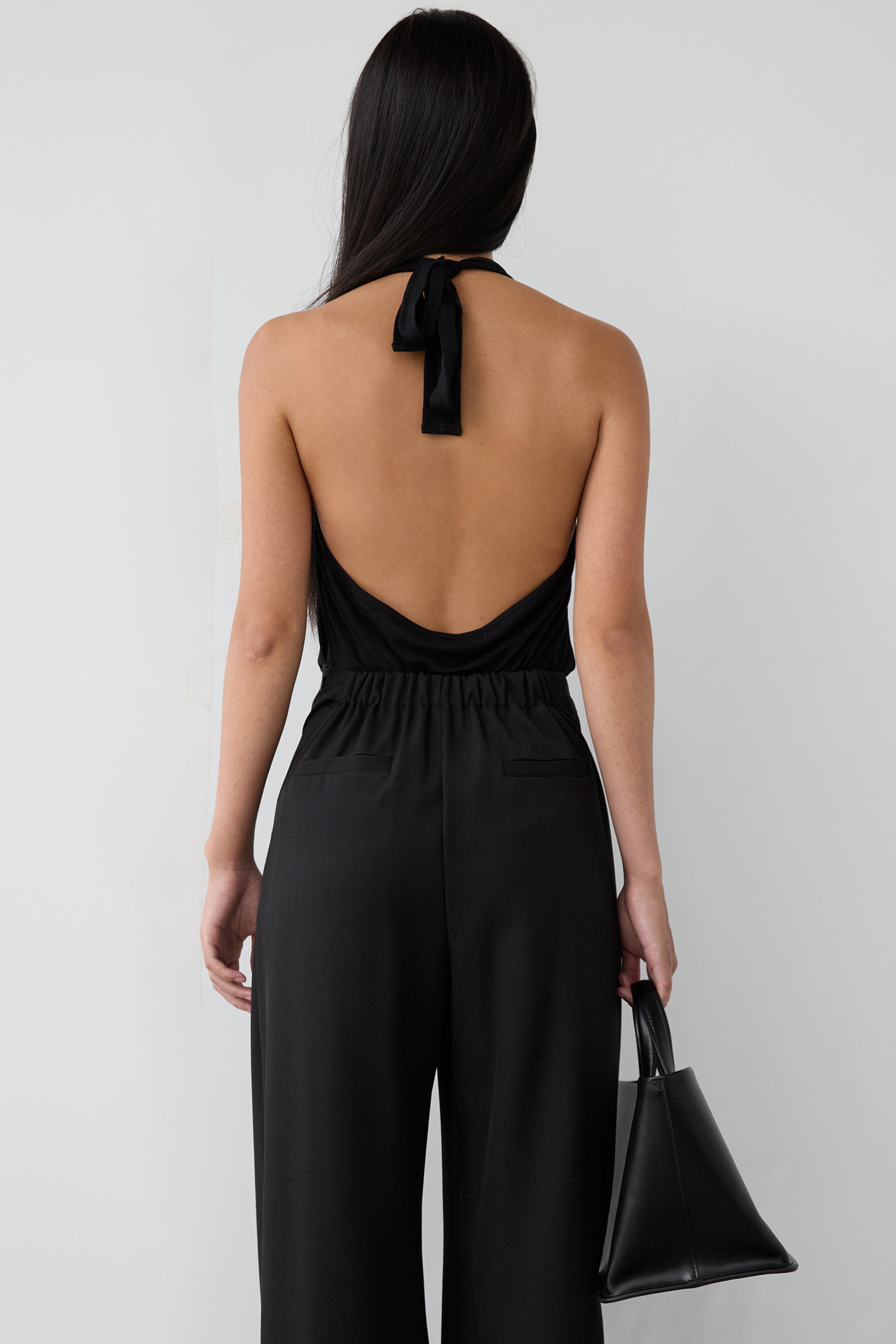 RAYON BLEND TIE NECK HALTER TOP