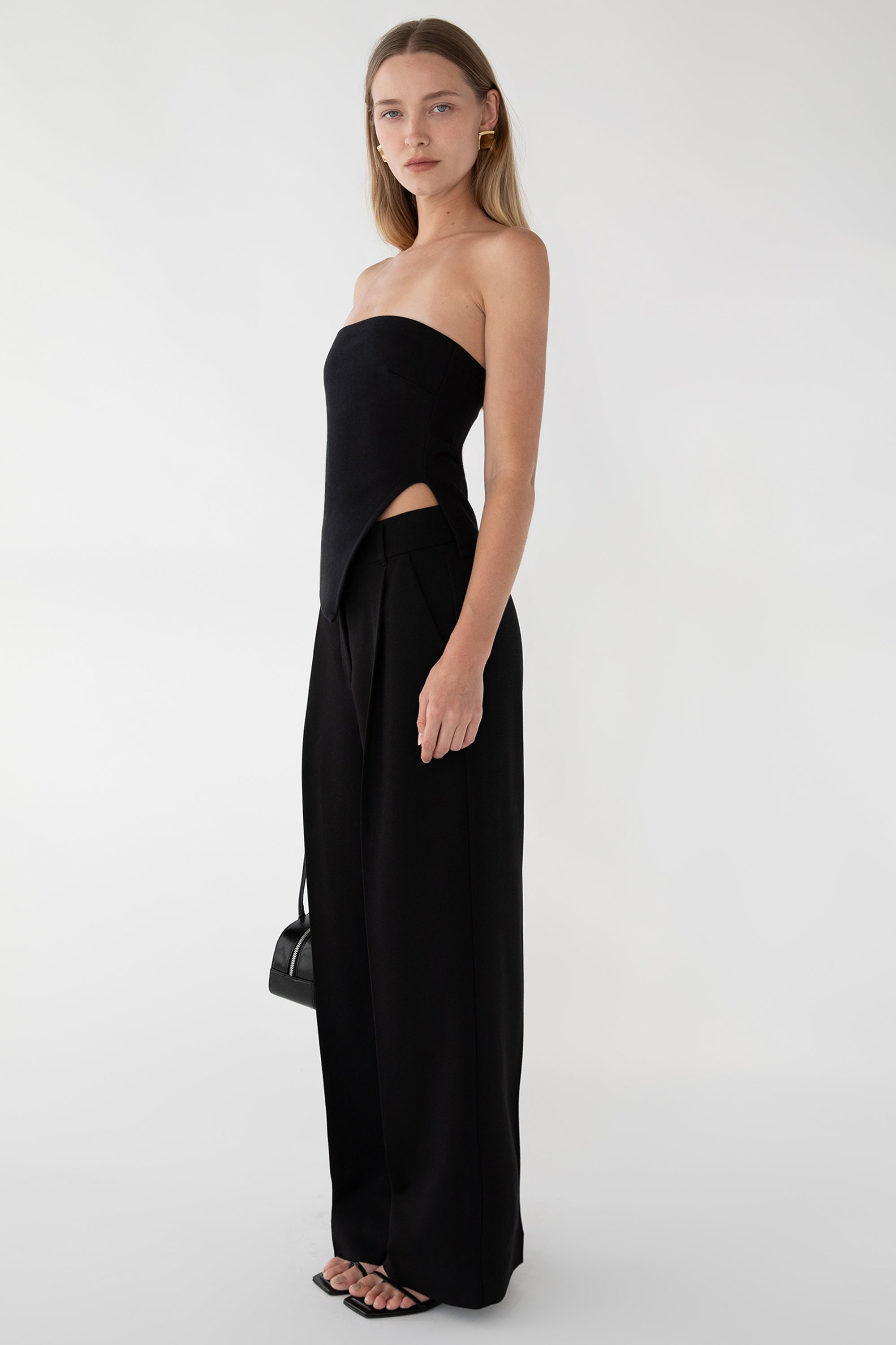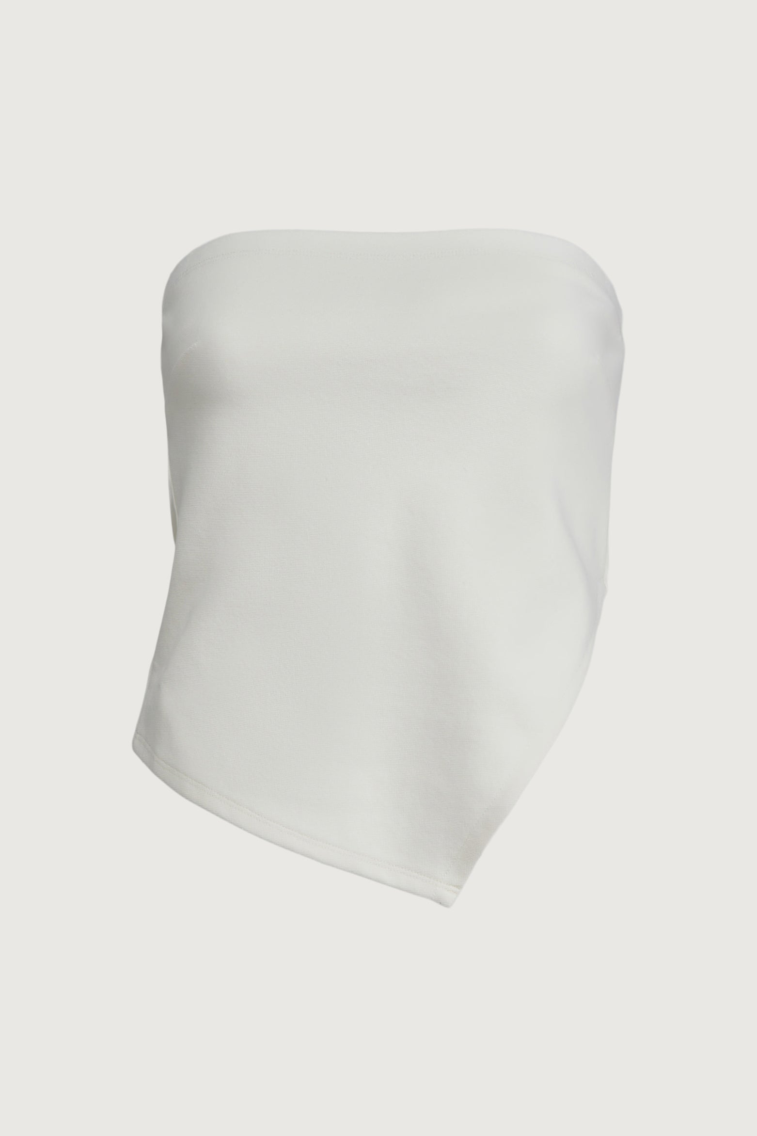 This cropped tube top is cut from a thick cotton blend and is detailed with a side slit. The perfect top that pairs well with any bottoms from midi slip skirts to high-rise trousers.