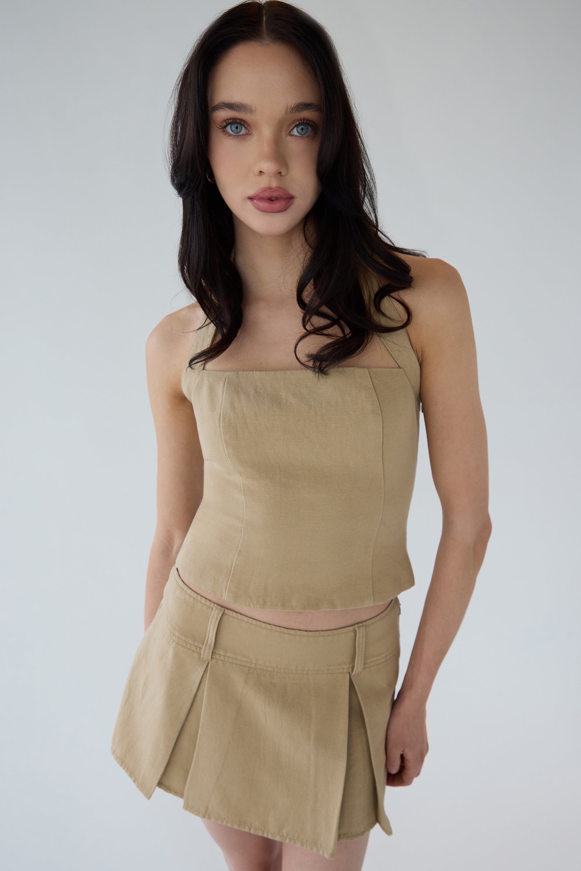 Linen blend halter square neck top in incense — main imageLINEN BLEND HALTER SQUARE NECK TOP in Incense — alternate angle