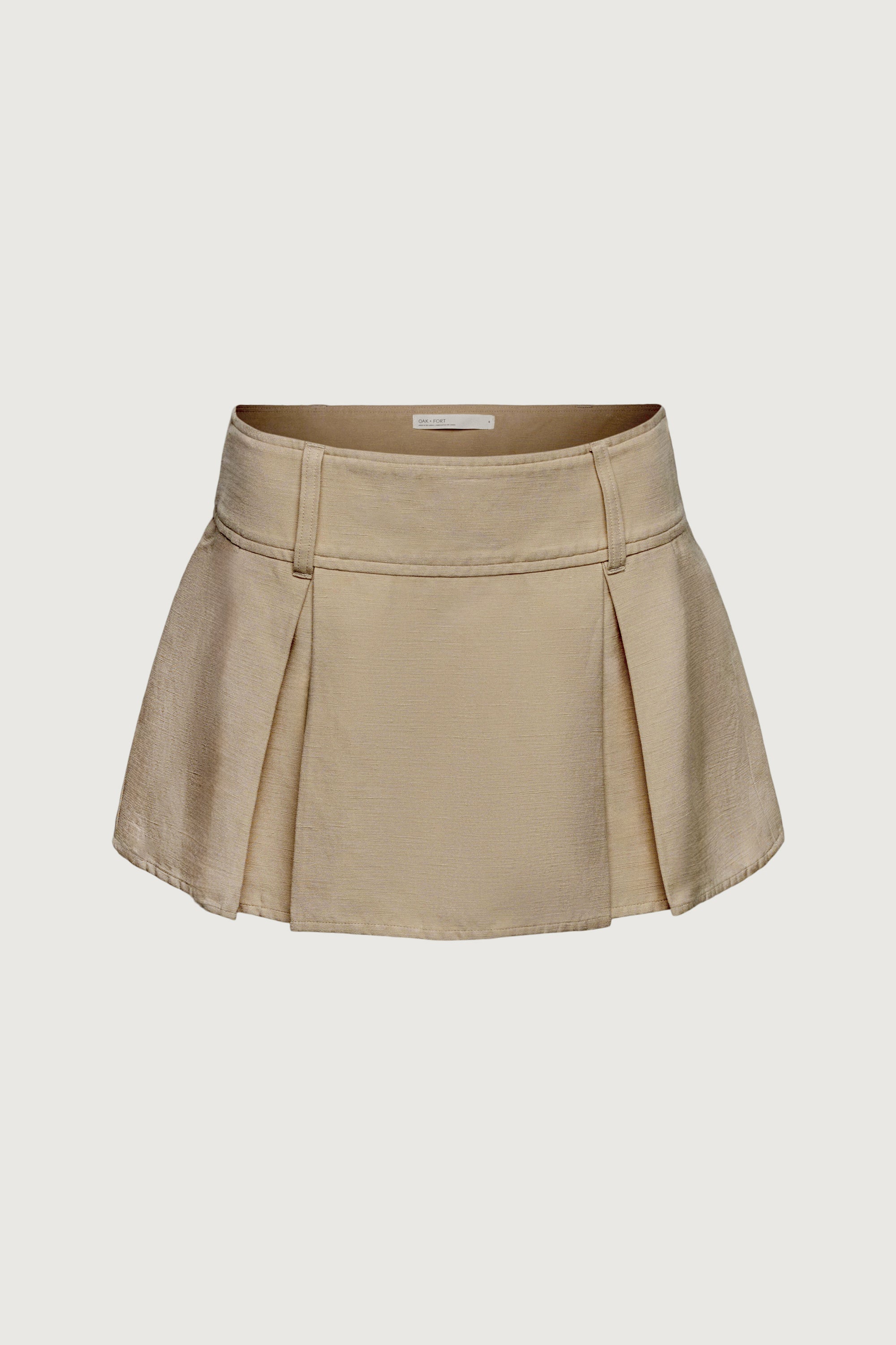 This linen blend pleated mini skirt is made in a classic fit and is detailed with a wide belt loop and is lined with shorts. Wear yours as a set with the Linen Blend Halter Square Neck Top or with style it casually with a crewneck t-shirt .