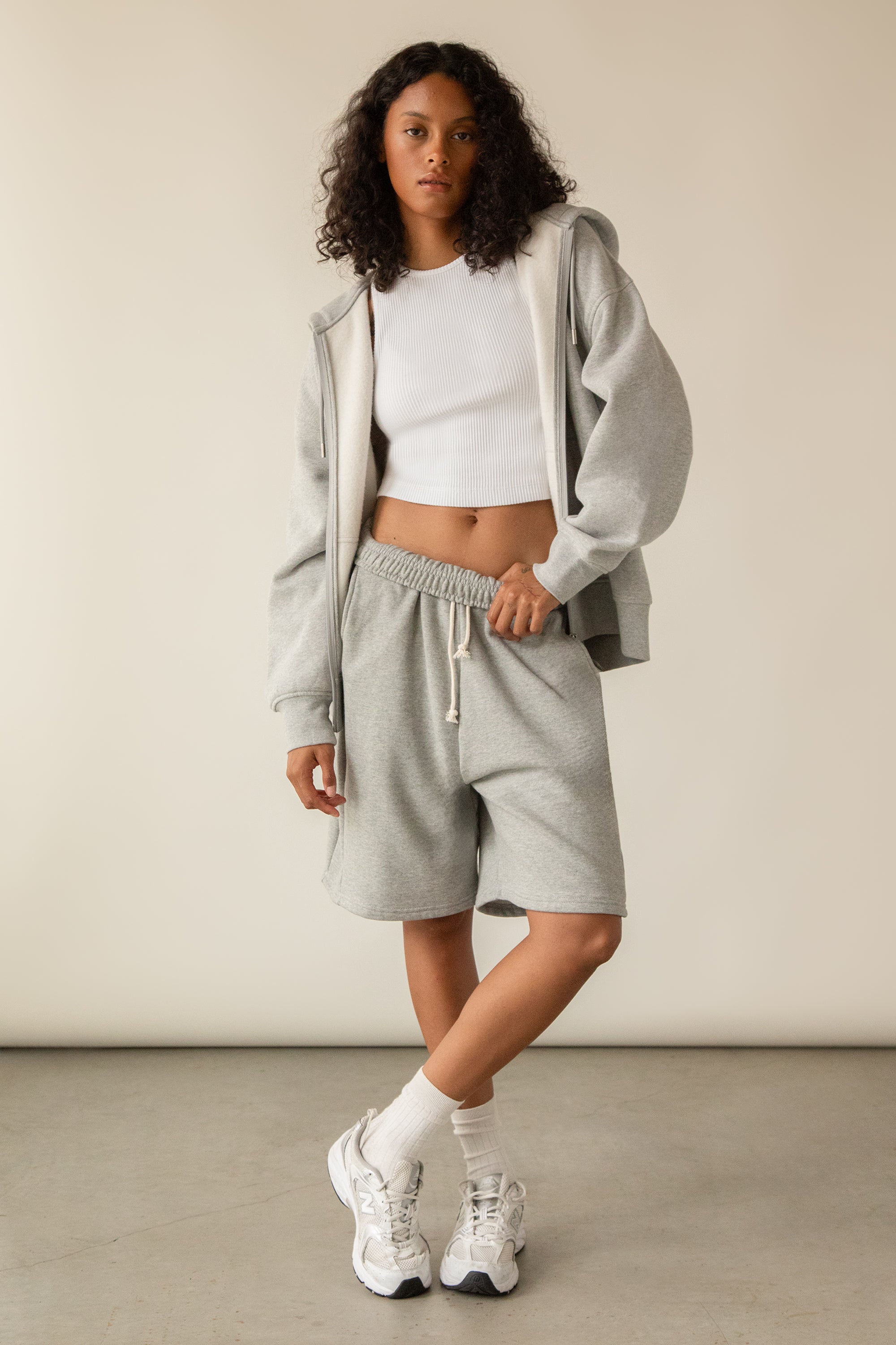 These long sweat style shorts fit oversized and has a contrast drawstring. Style yours for an athletic look.