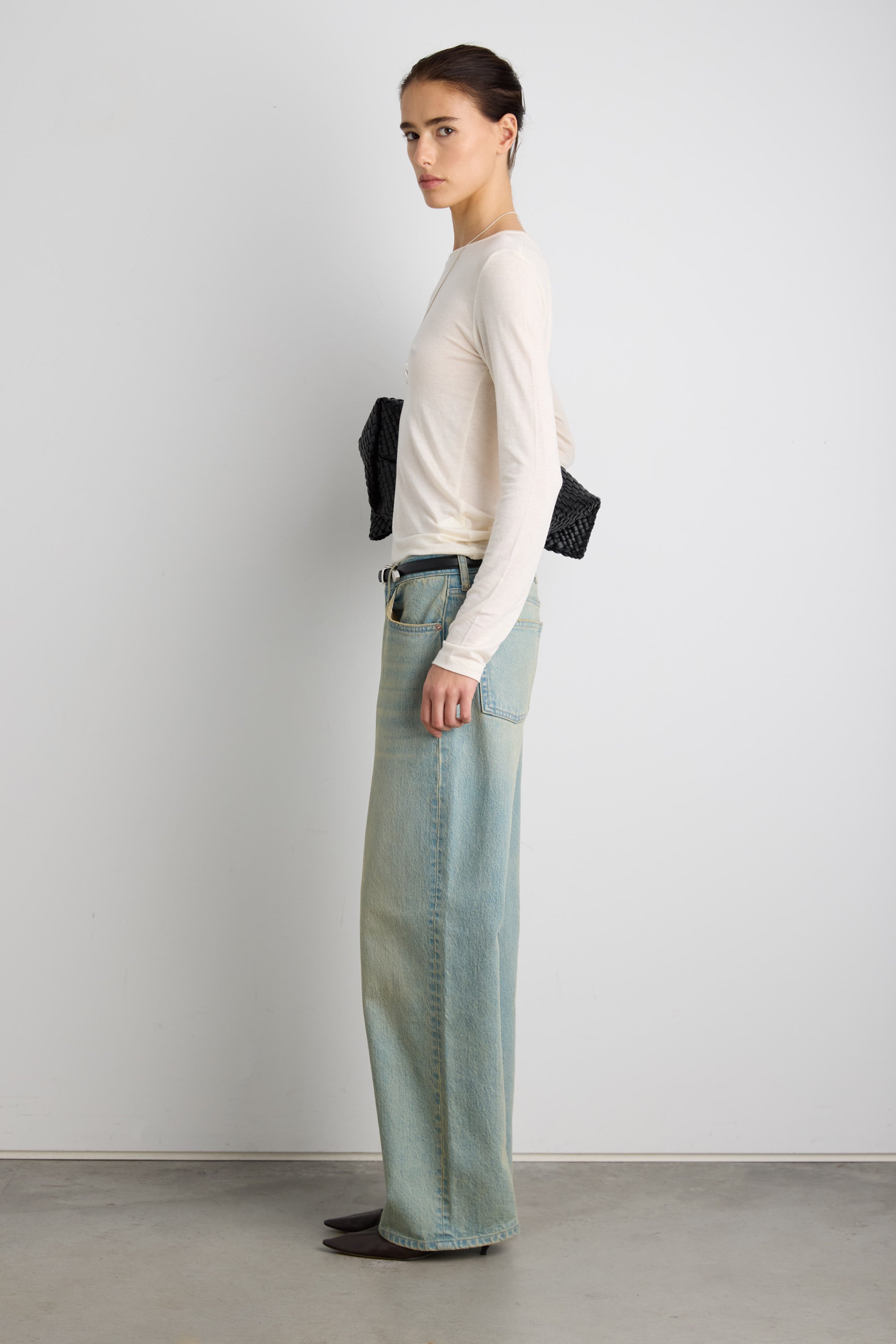 These straight leg vintage wash jeans are made in a relaxed fit and has a mid-rise waist. A staple to own this season, build endless outfits with this pair. Go for a more relaxed look and size up so it sit lower on the waist.