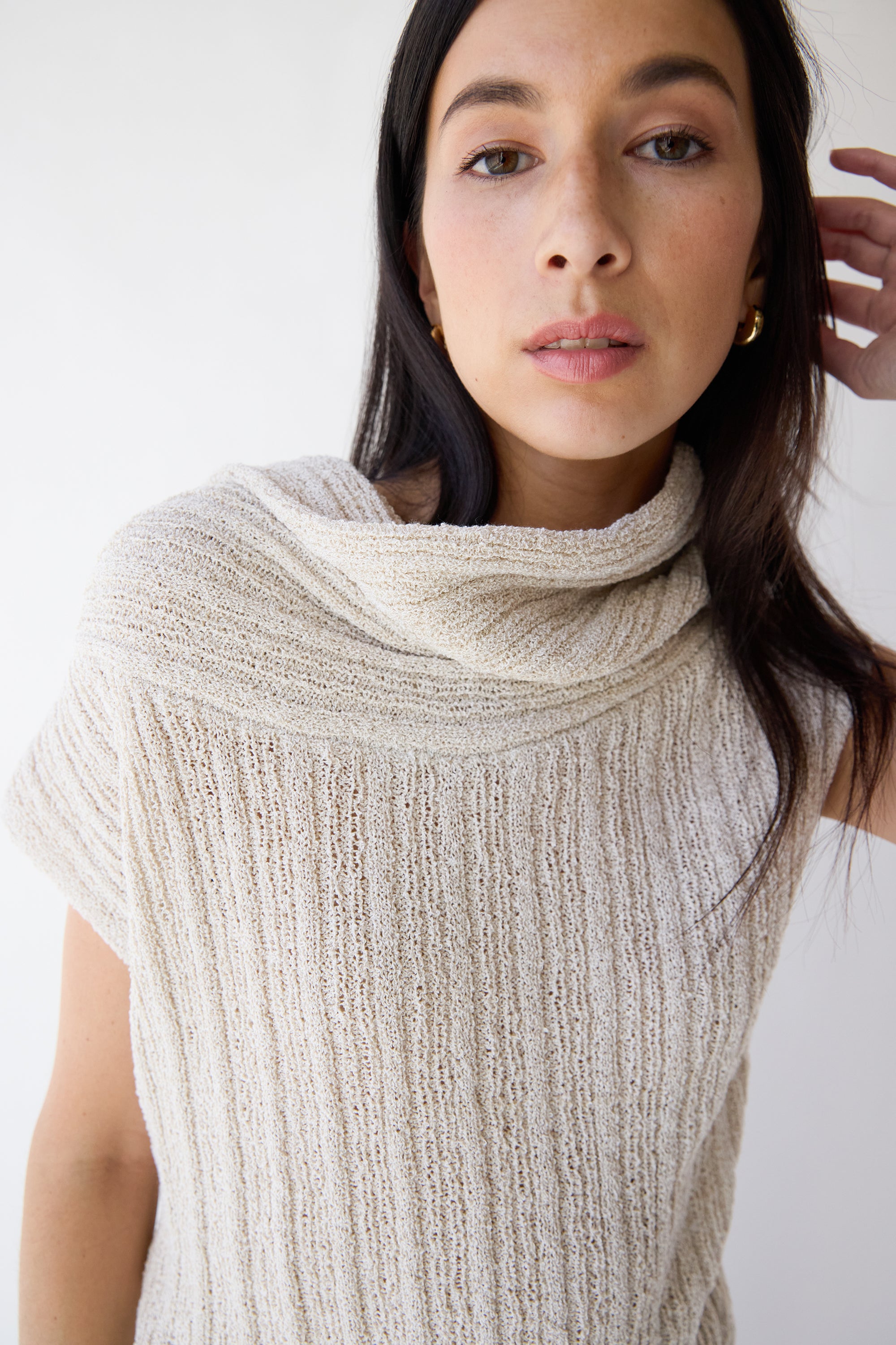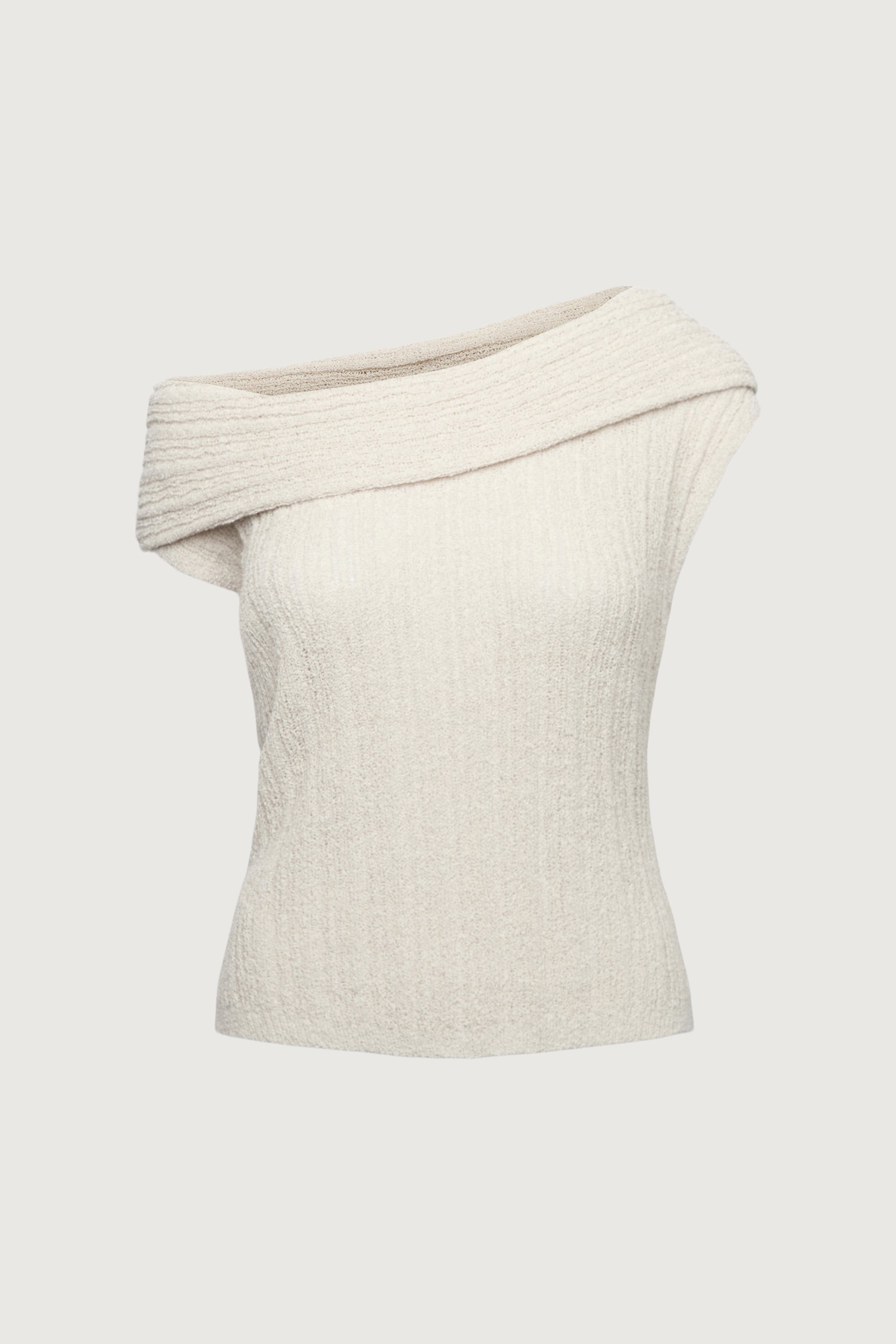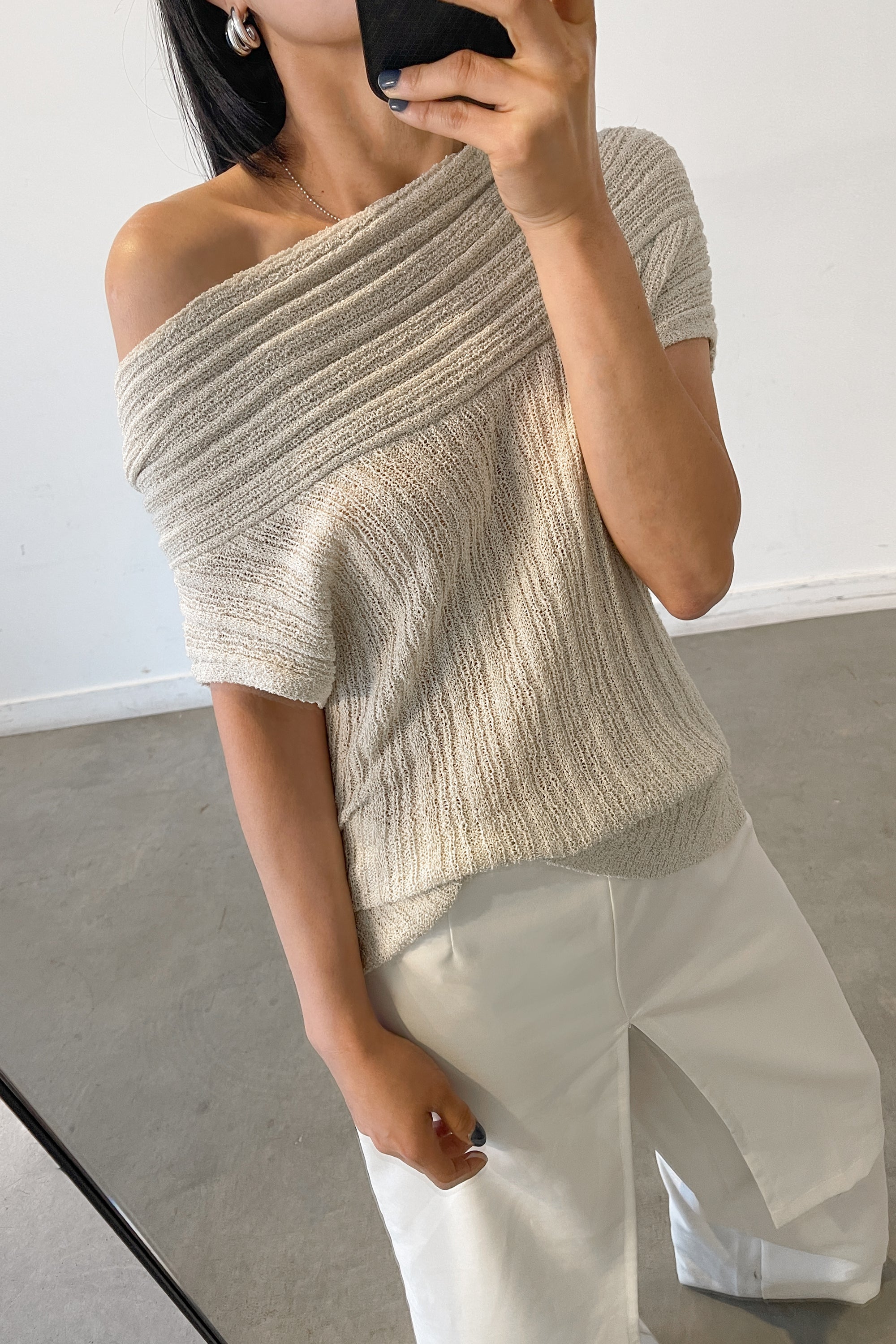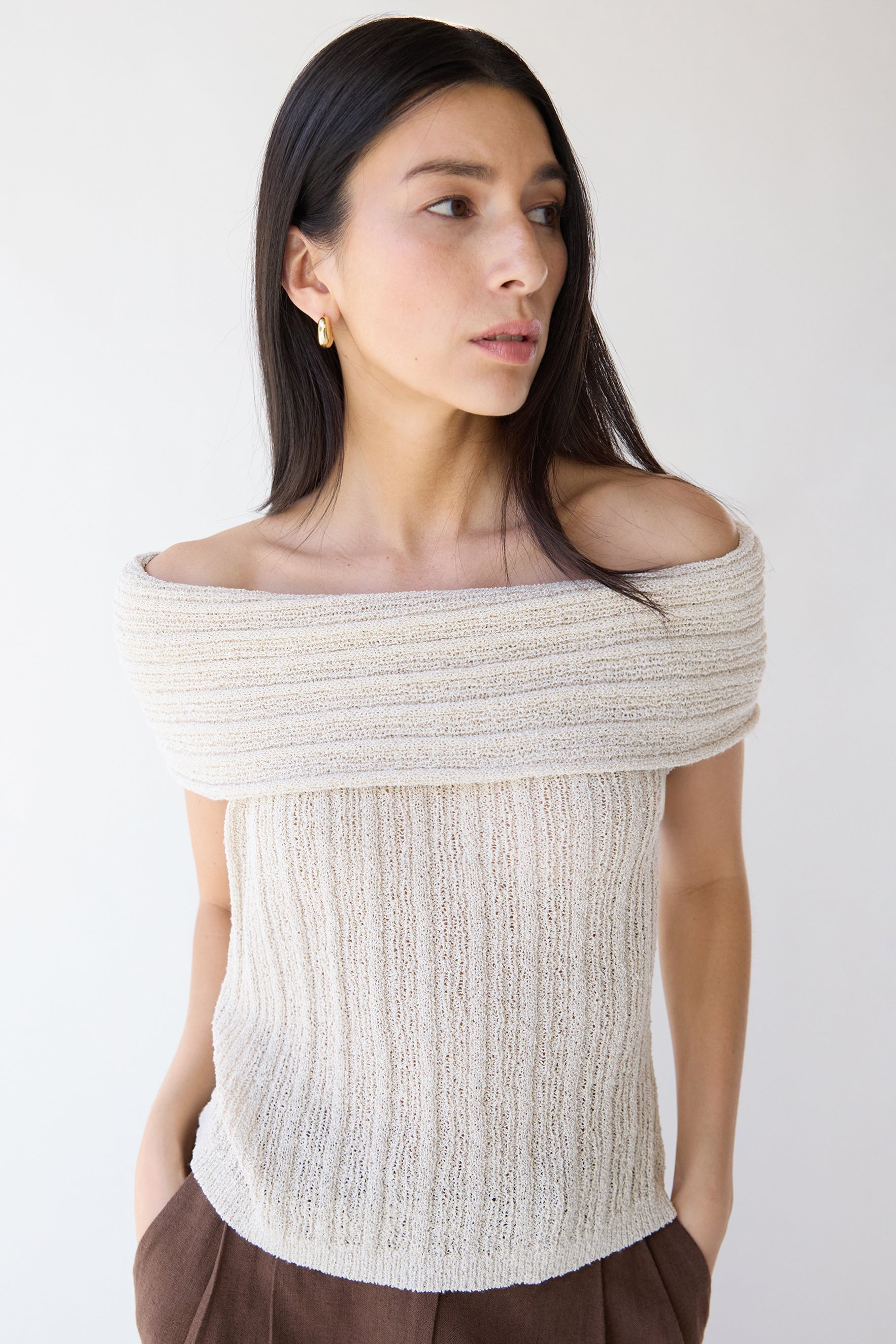 Inspired by our best-selling sweater, we've created a short sleeve version for the Spring and Summer season. It's spun from a textured varied rib-knit and has a foldover slouchy off shoulder design. A new classic you can wear with any bottoms from satin midi skirts to wide leg trousers.