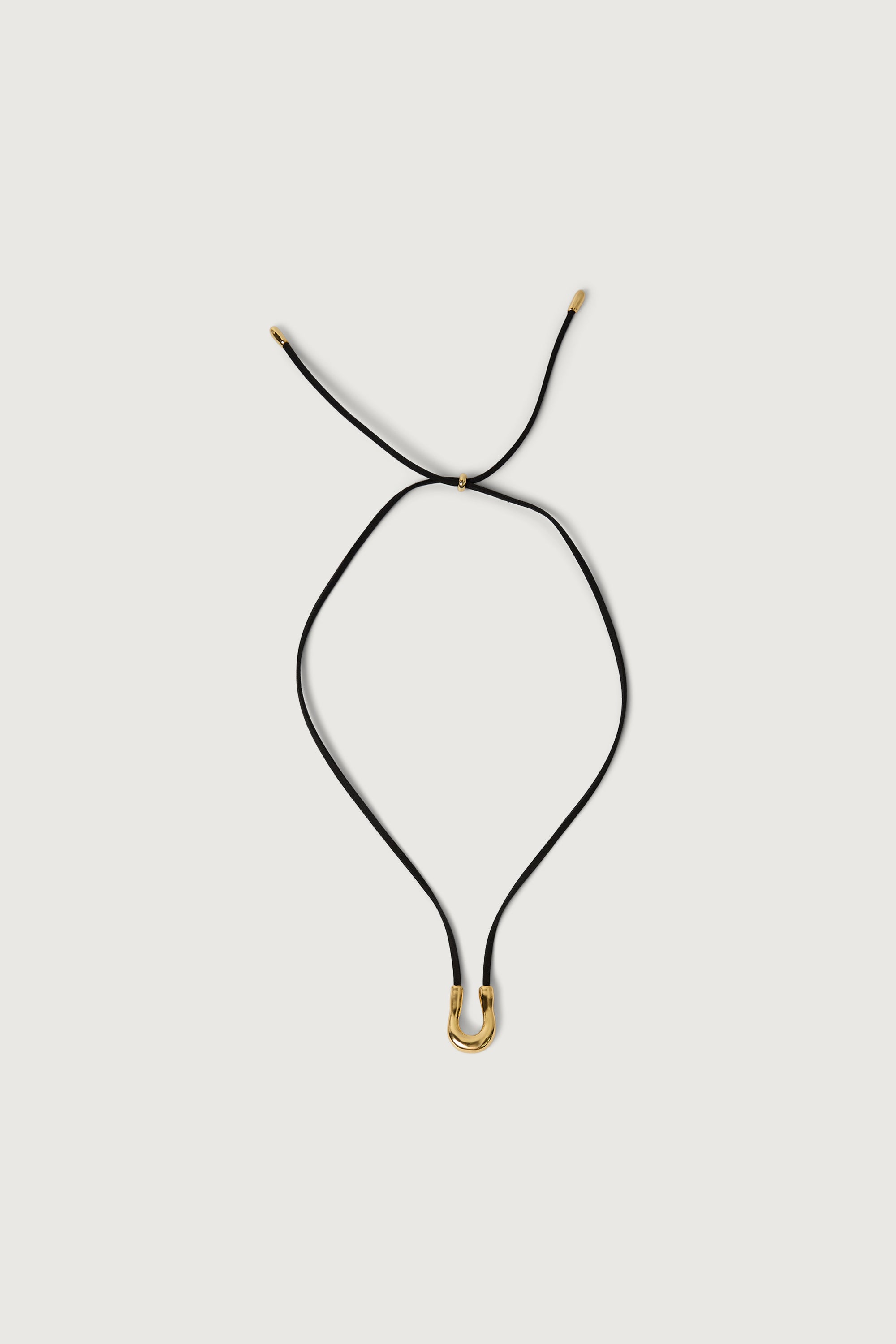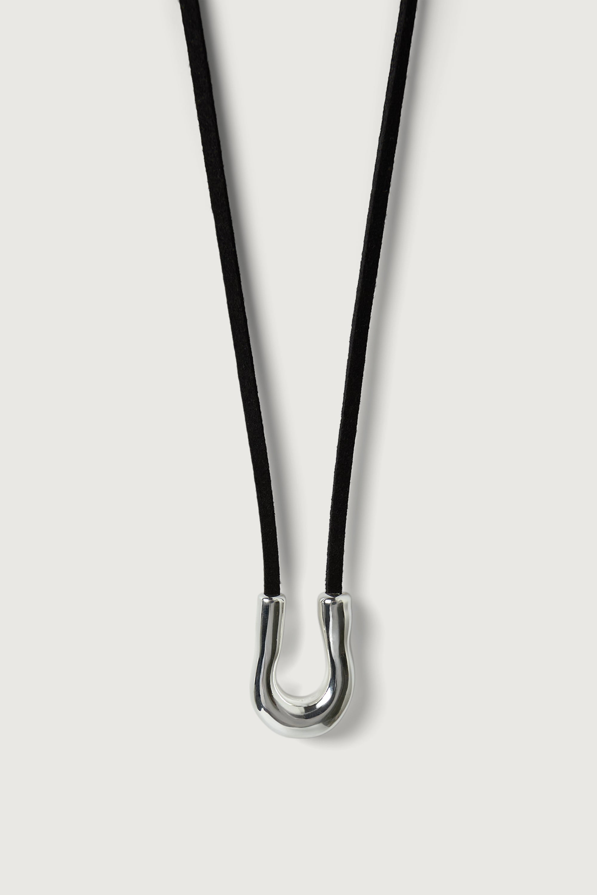 This necklace features a cord chain with a horseshoe U shaped pendant. You can achieve the perfect length with the adjustable slip bead for easy sizing. Wear alone on layered with your favourite necklaces.
