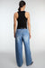 These light wash blue wash jeans are mid-rise and have a wide leg fit. Wear these classic denim jeans with a t-shirt or sweater.