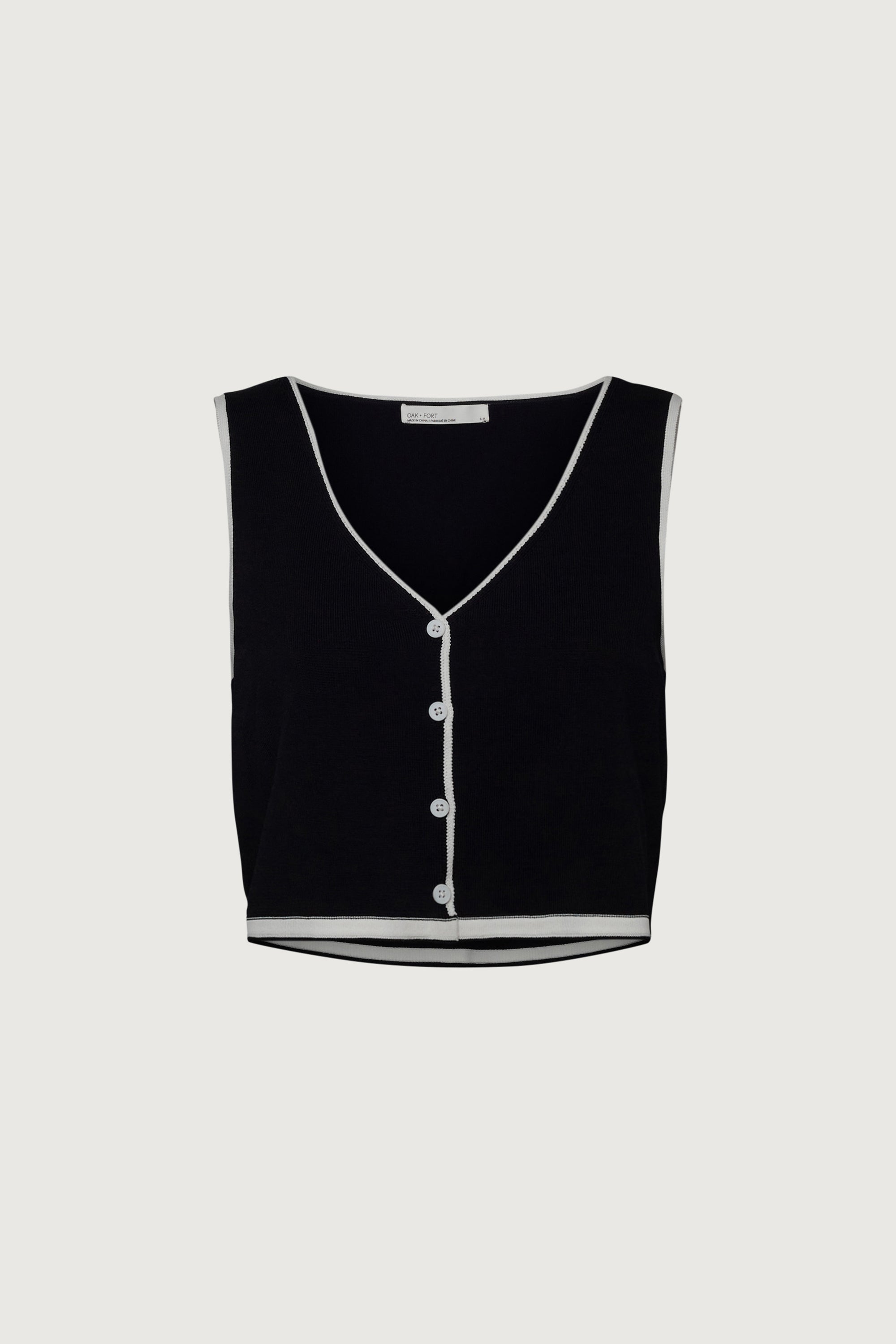 This button front tank is made in a relaxed fit and cropped length. It is detailed with contrast trims and buttons. Wear yours with jeans and heels.