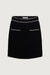 Fitted silhouette. Mini length. Welt detail contrast trims. 16" length based on size S.