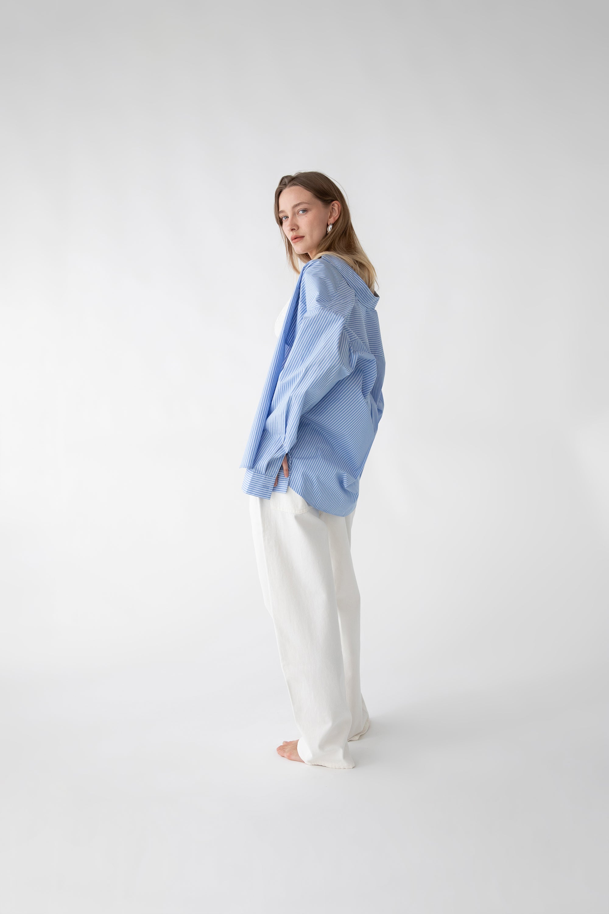 This button up shirt is made in an oversized fit cut from a lightweight striped cotton poplin. An easy go-to you can wear in any season, wear yours with the matching pant or short for the warmer weather ahead.