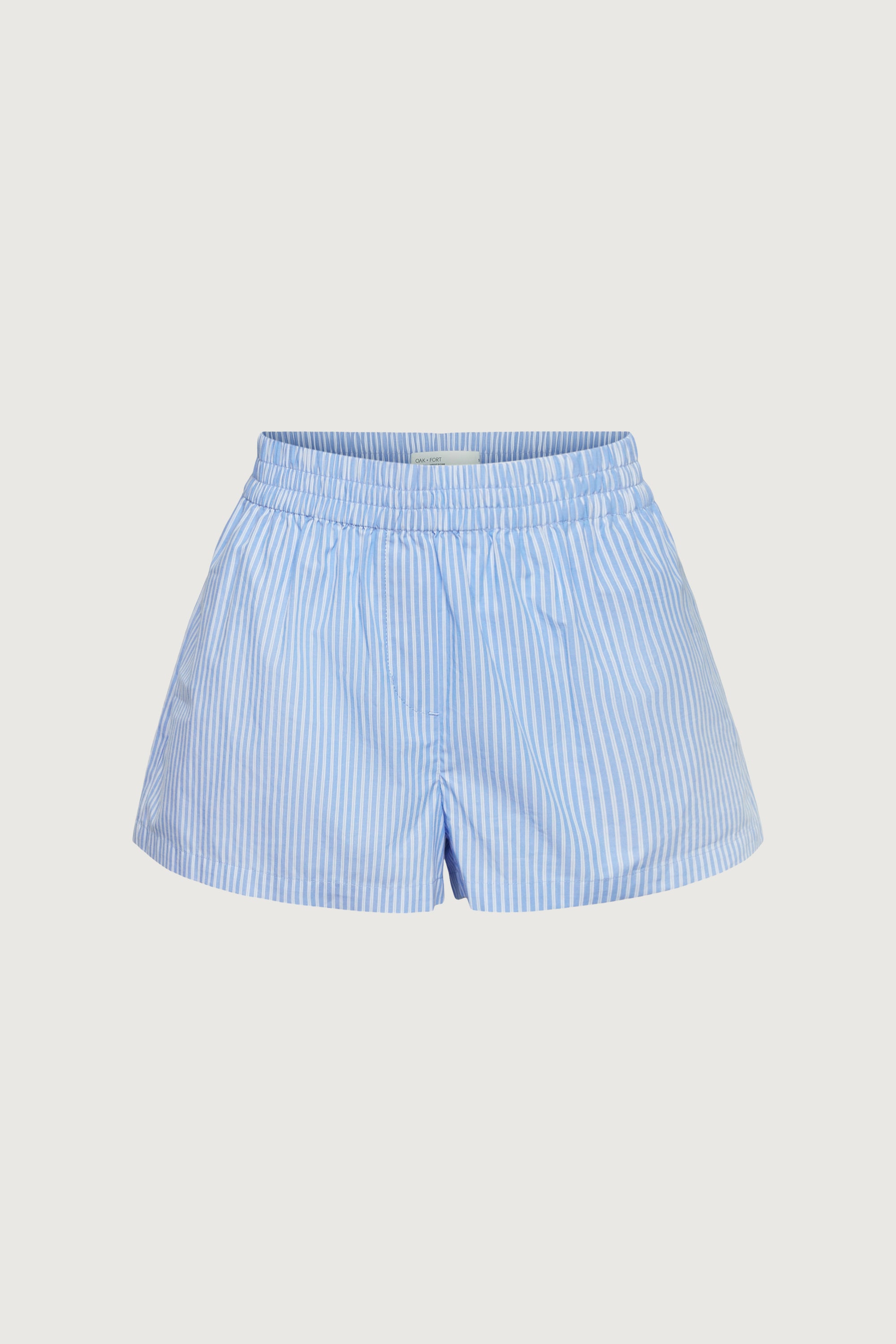 These boxer-style shorts are crafted from soft, breathable striped cotton poplin for ultimate comfort. With an elastic waistband and relaxed fit, they offer a versatile, effortless style. Create endless outfits with these shorts and pair it with ribbed tanks, a basic tee or even its matching pinstripe shirt.