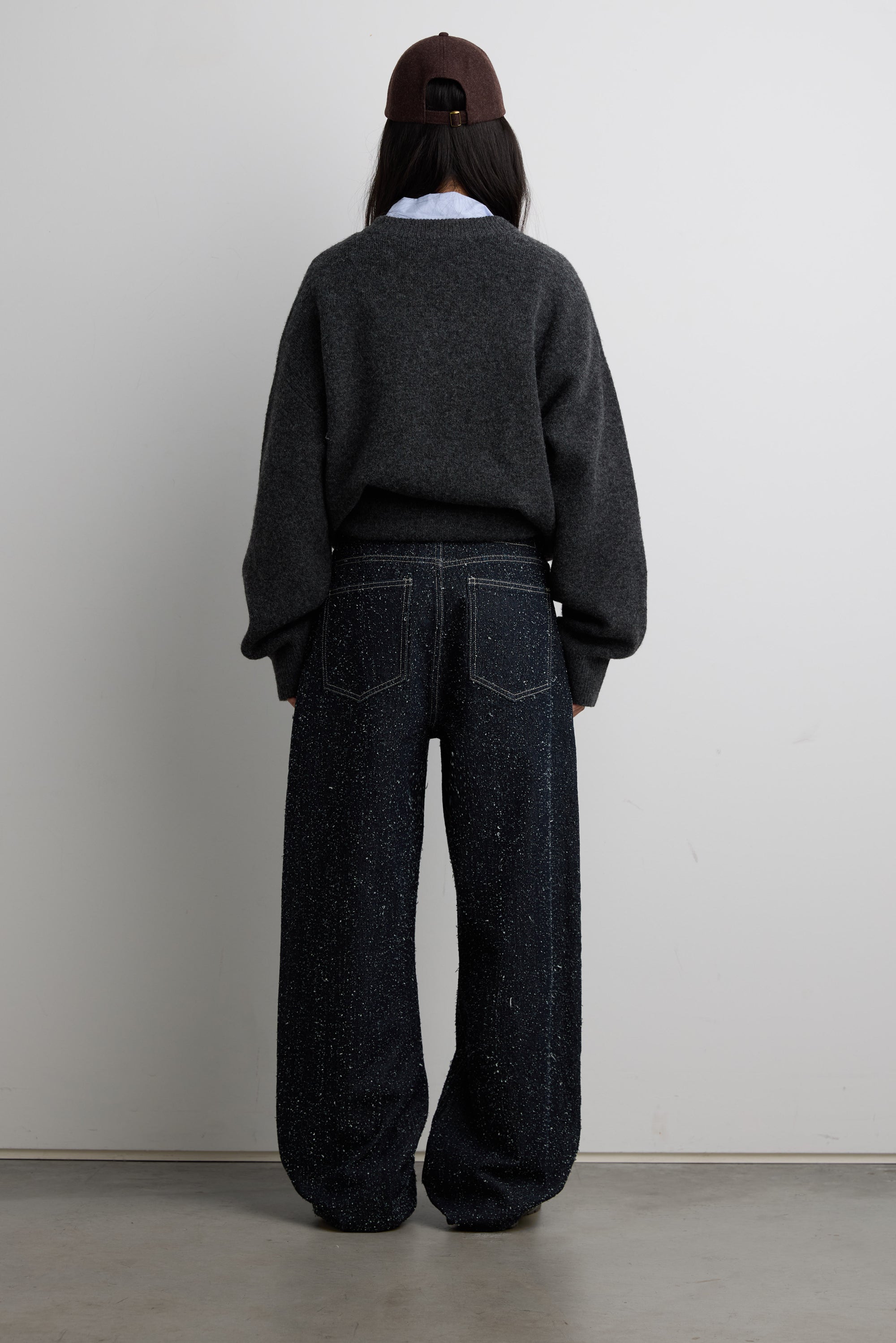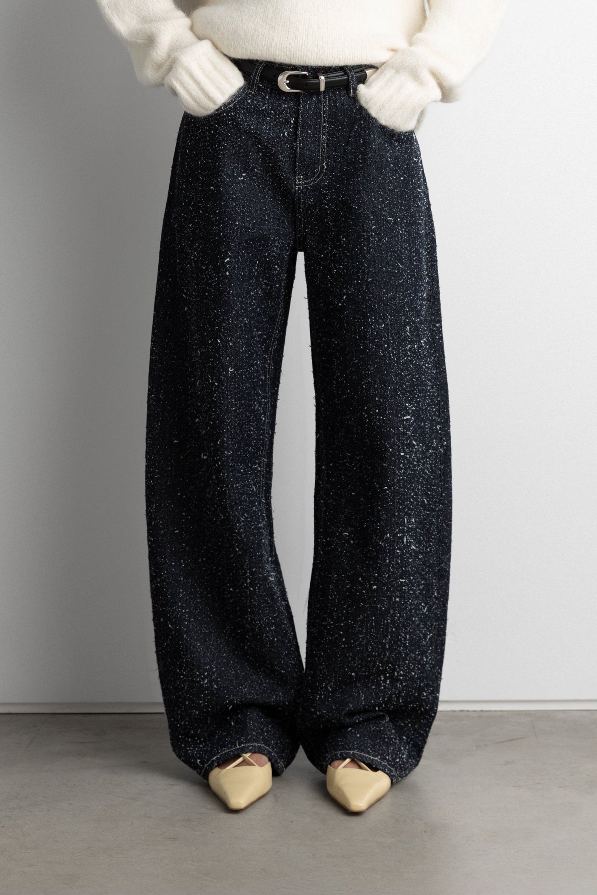 These barrel fit jeans feature a boucle texture. Wear these statement jeans with a classic top. Each pair vary in texture, making them one of a kind.