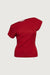 Knit fabric. Cap sleeves. Asymmetrical neckline.