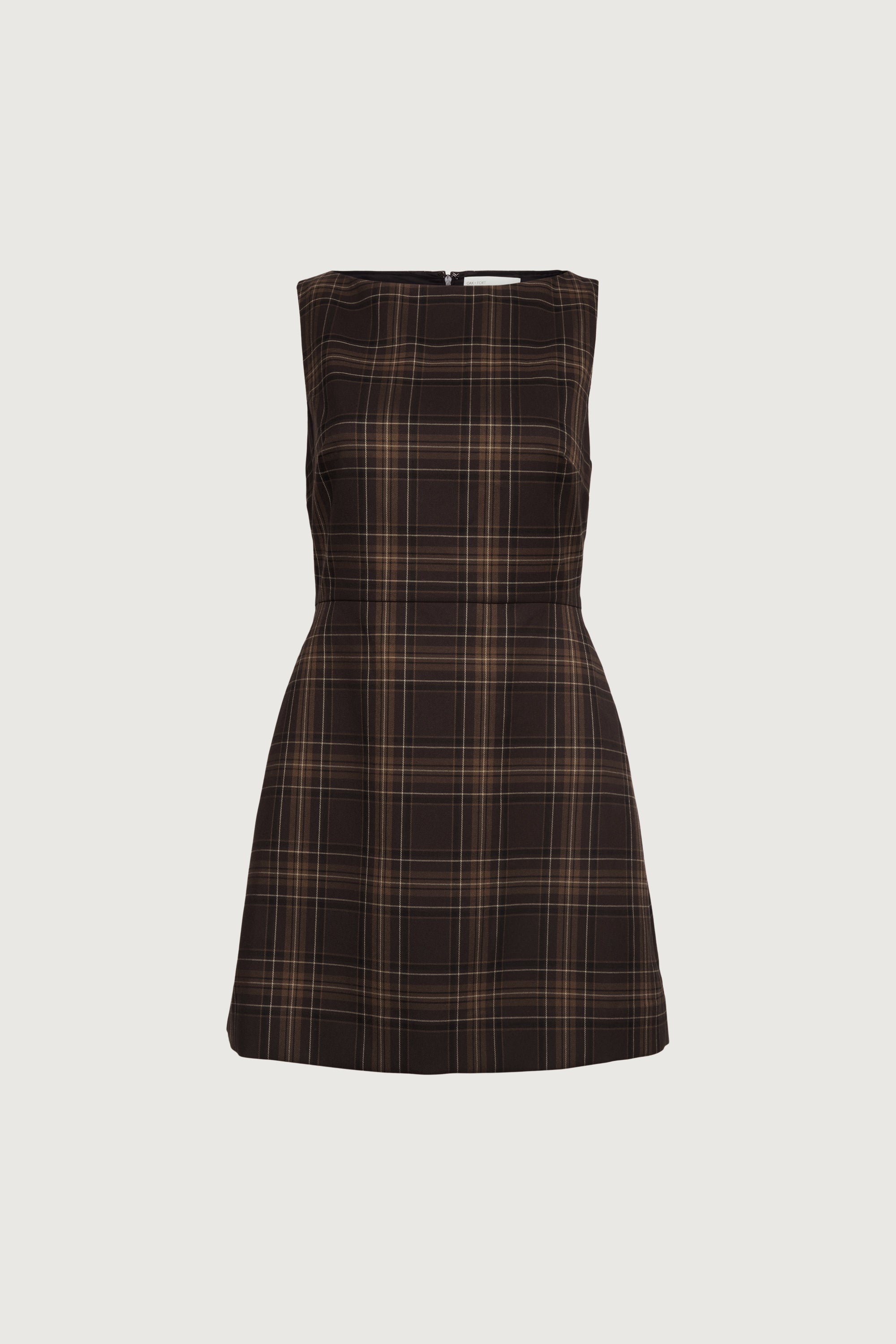 This classic suiting mini dress is made in a slim fit. It has a high neckline, seam details and has side pockets for added function. A versatile silhouette to wear to the office or to your next occasion.