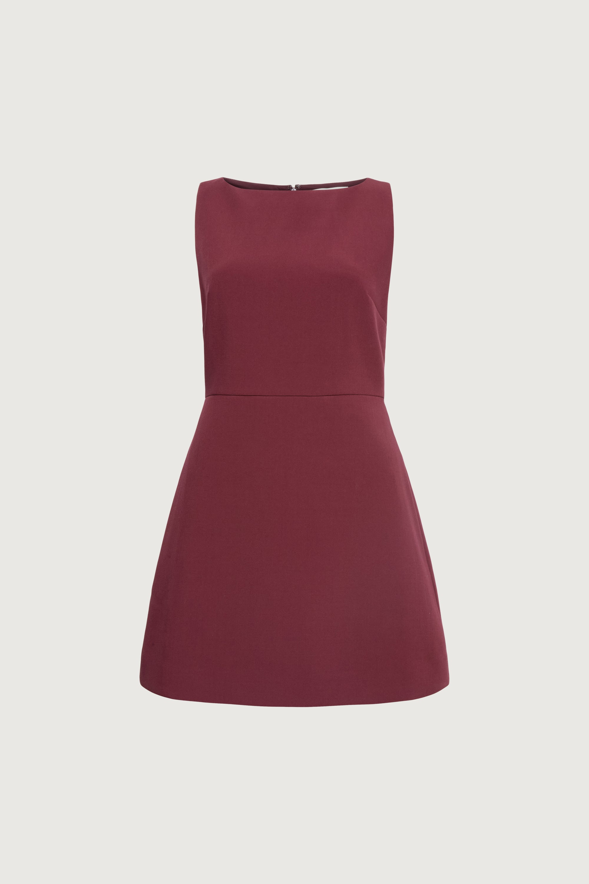 Suiting fabric. High neckline. Sleeveless design. Inseam pockets. Bust darts. Back zipper.
