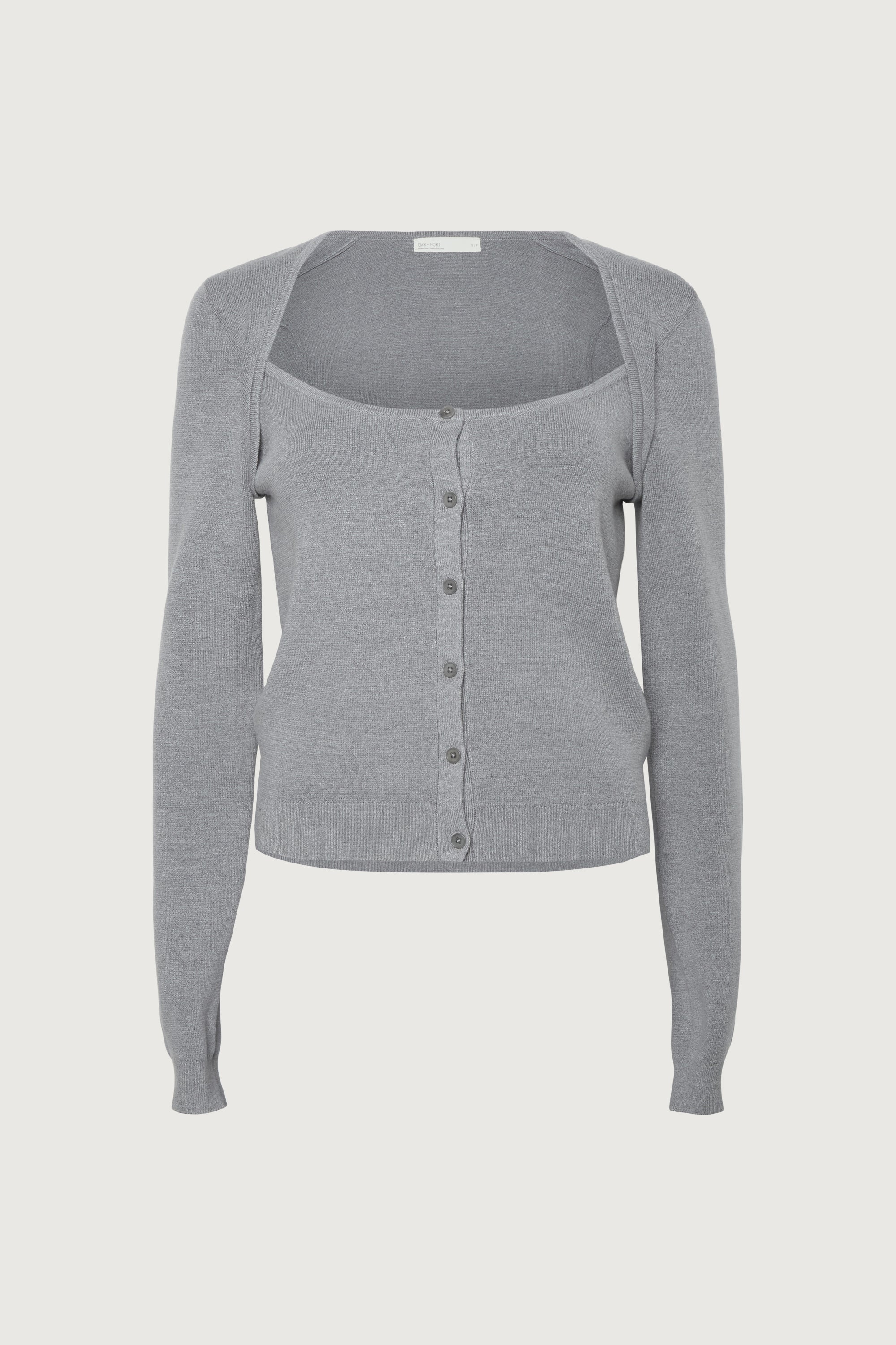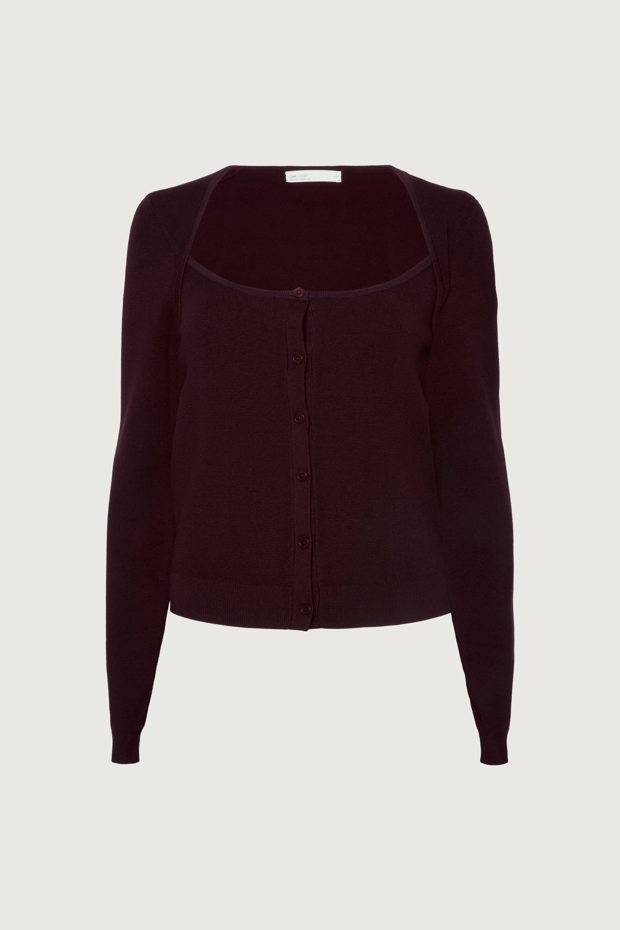 This knit sweater is made in a slim fit and is designed with a button front and a built in long sleeve bolero. A new classic to add to your weekly rotation, style yours with high rise trousers and boots.