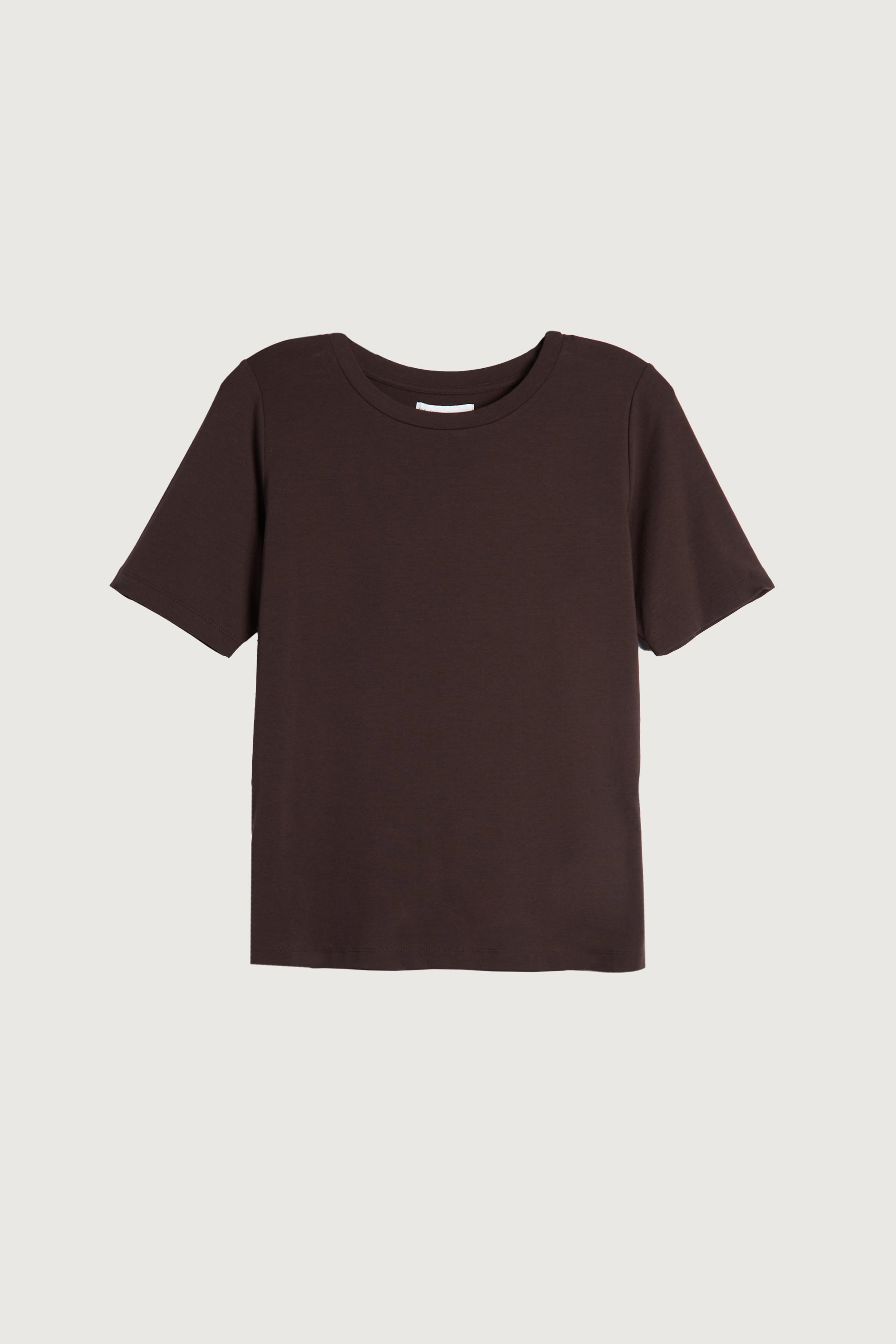 Cotton modal jersey. Lightweight: 156 gsm. Crew neckline.