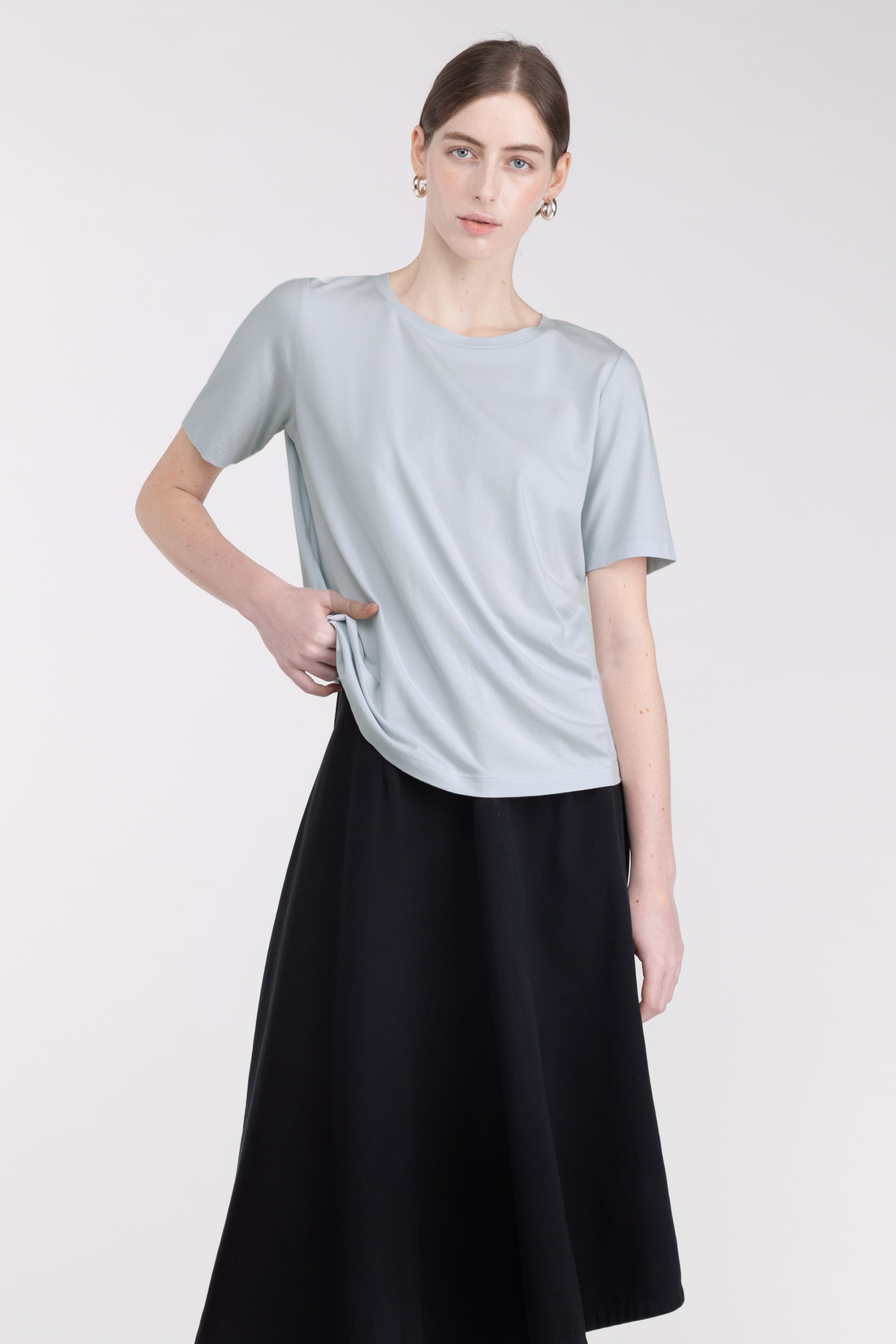 Our tried and true, best-selling crewneck t-shirt is made with cotton modal jersey in a classic fit. It's breathable, lightweight and soft to touch for a comfortable all day wear. A wardrobe staple to wear in any season, style yours tucked into pleated pants.