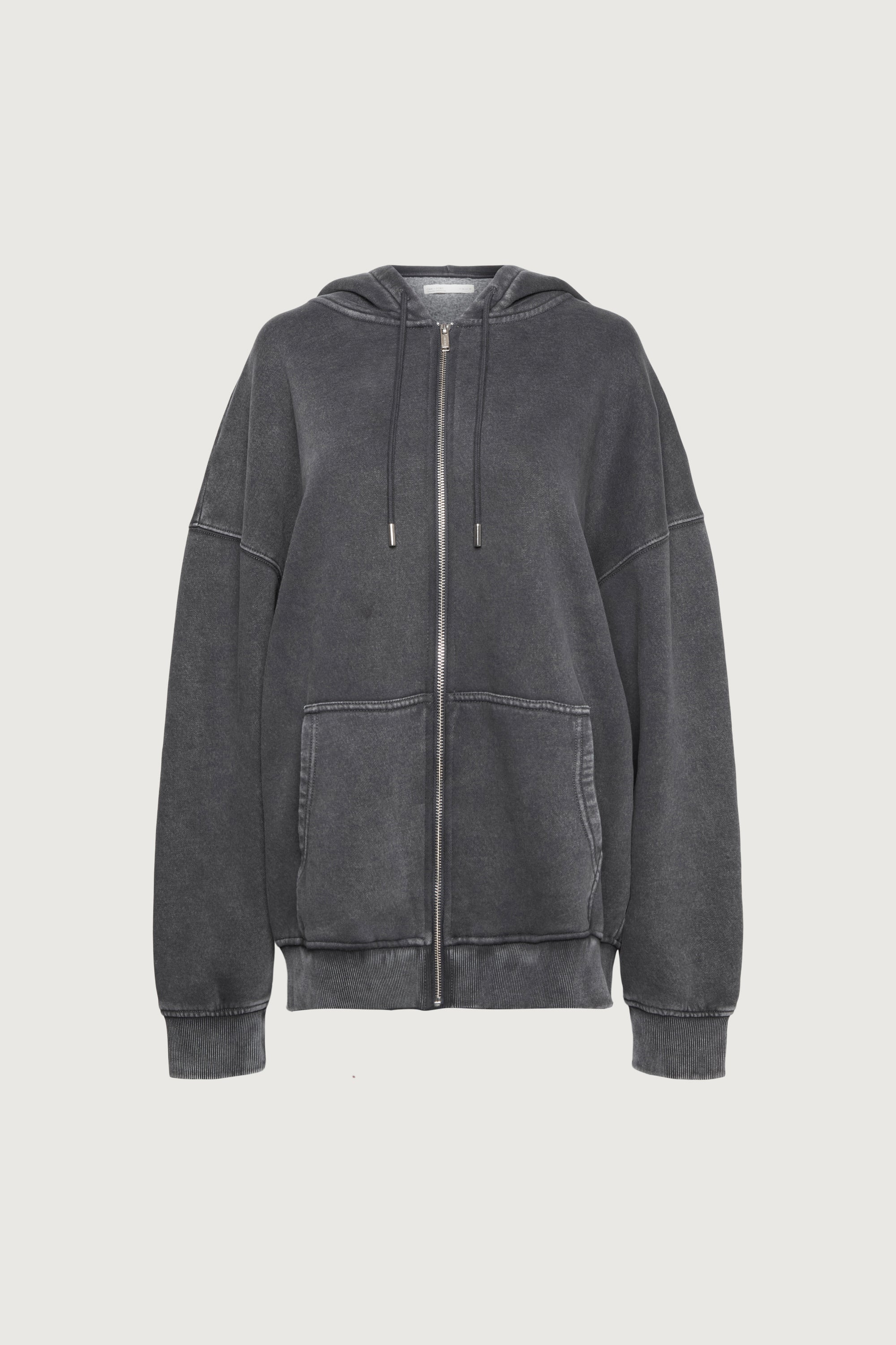 This soft fleece-lined zip-up hoodie is the ultimate essential to own for lazy days or running errands. It's made in an oversized fit with a drawstring hood, front pockets and ribbed trims. Wear it as a set with matching sweatpants.