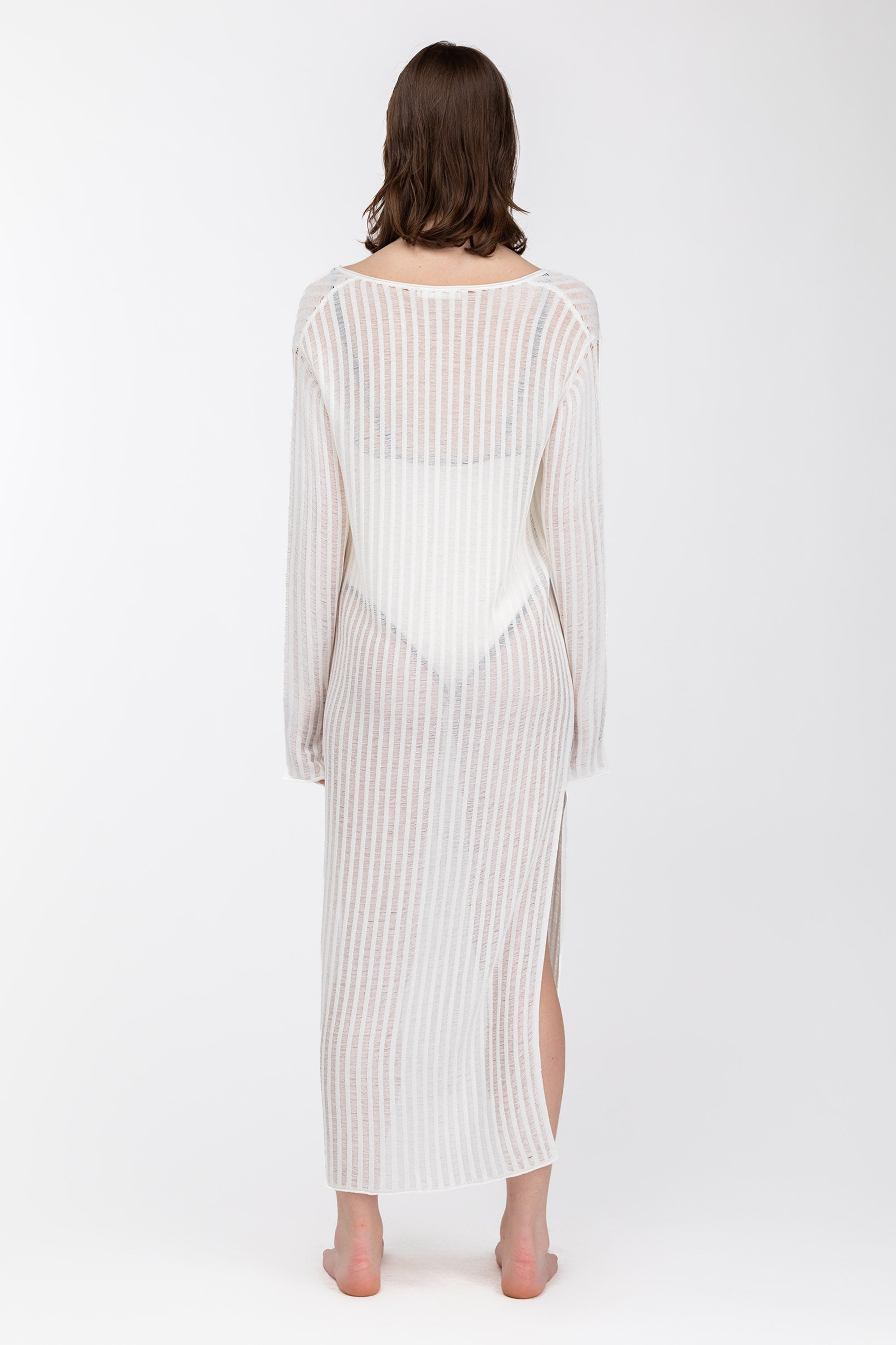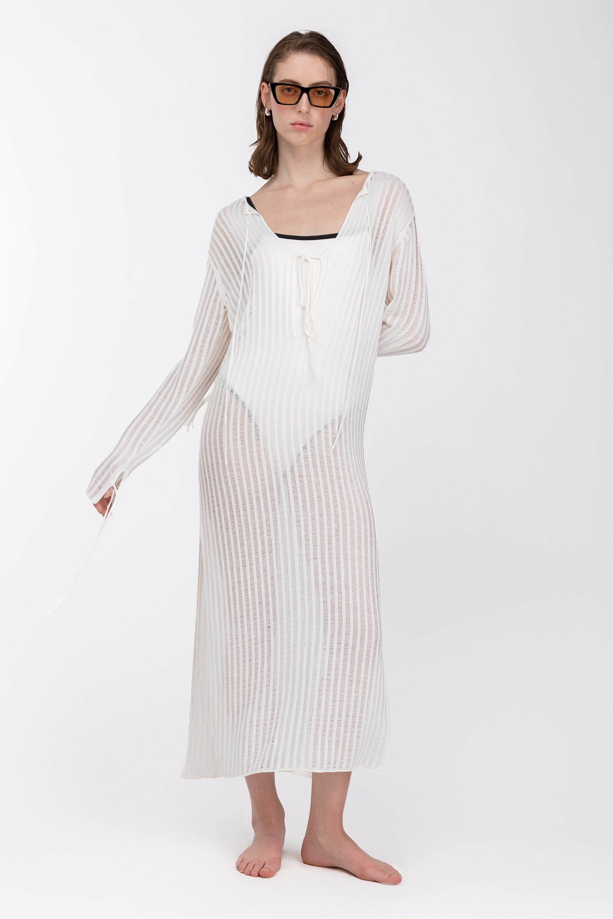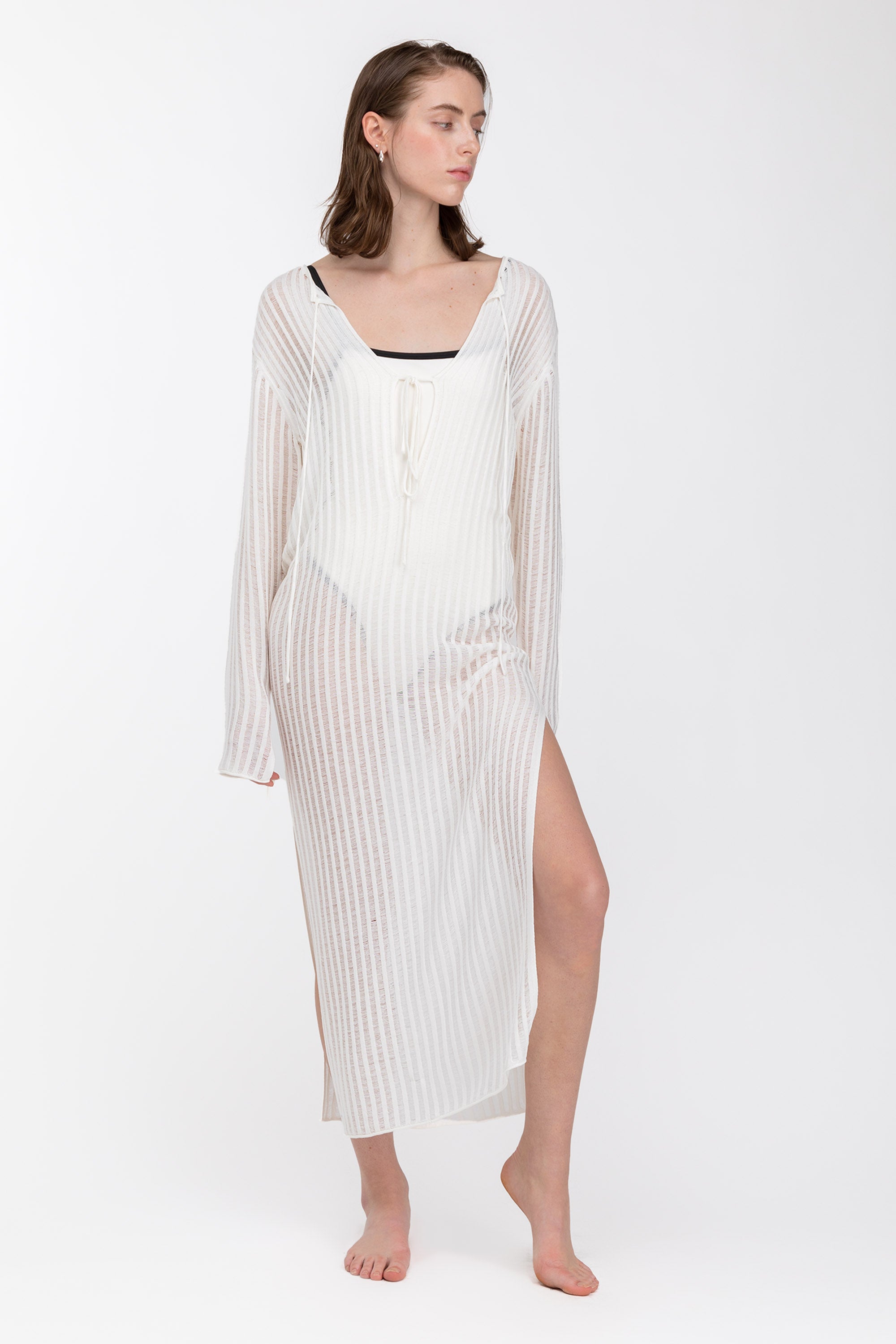REVERSIBLE SHEER RIB-KNIT DRESS SWIM COVERUP