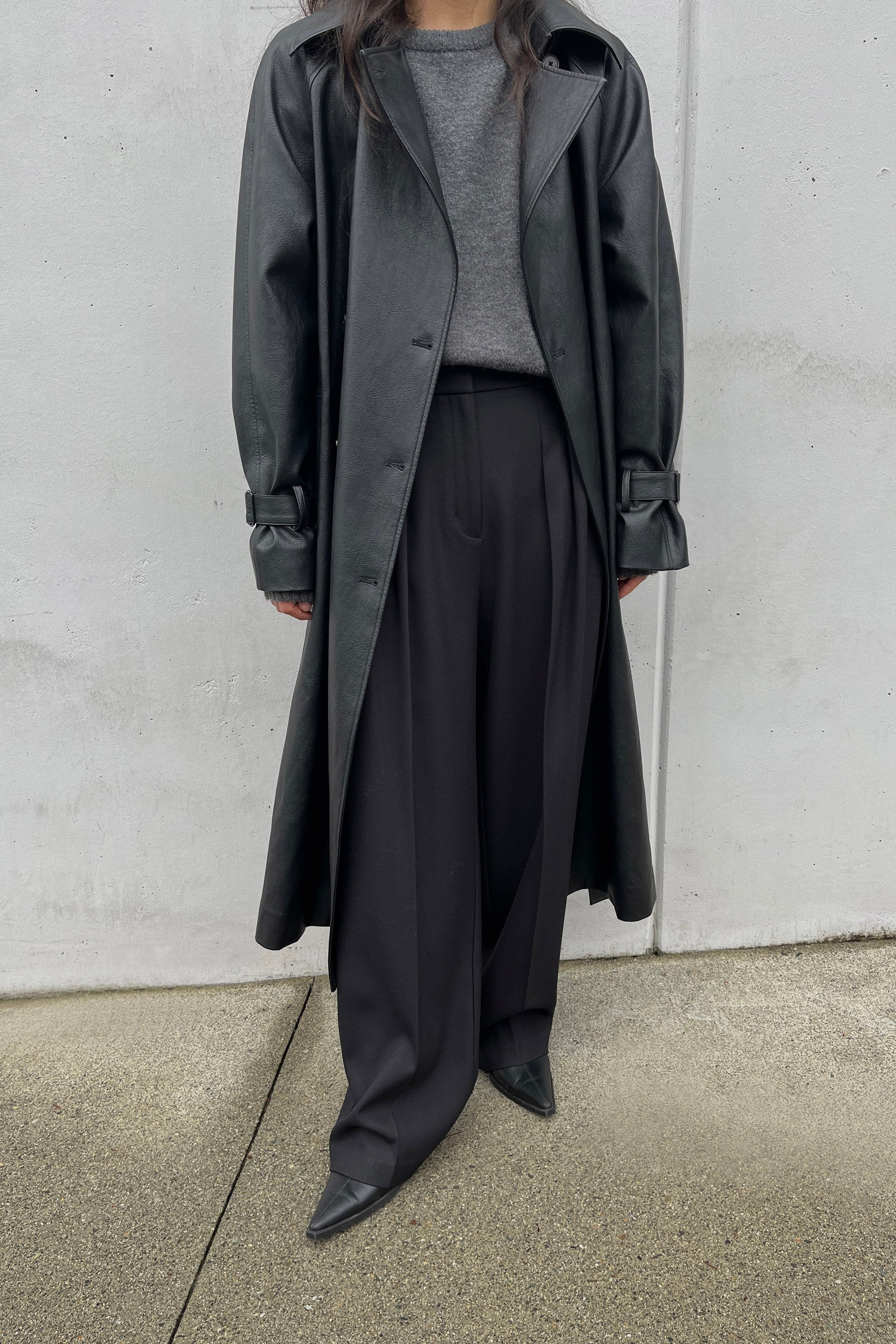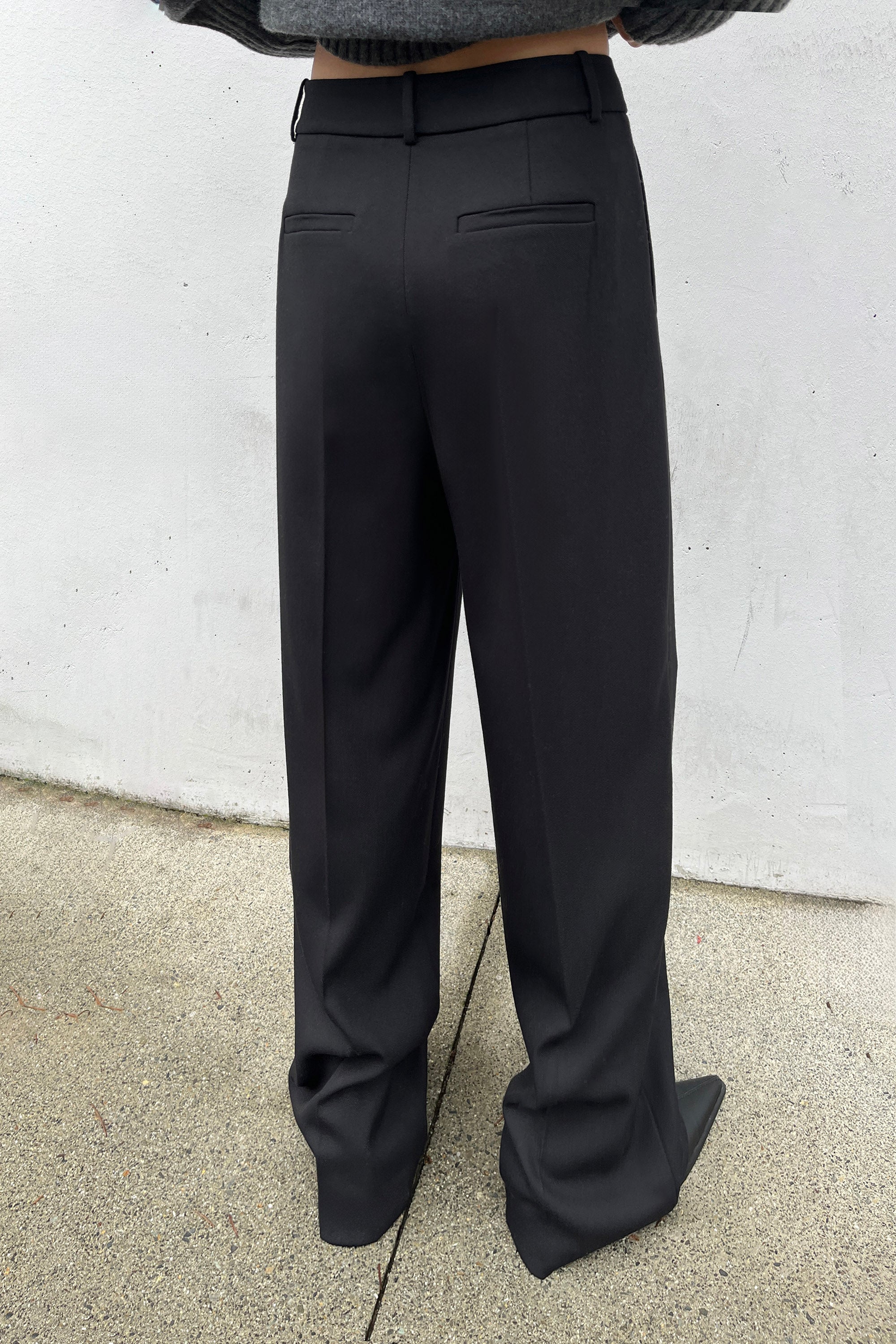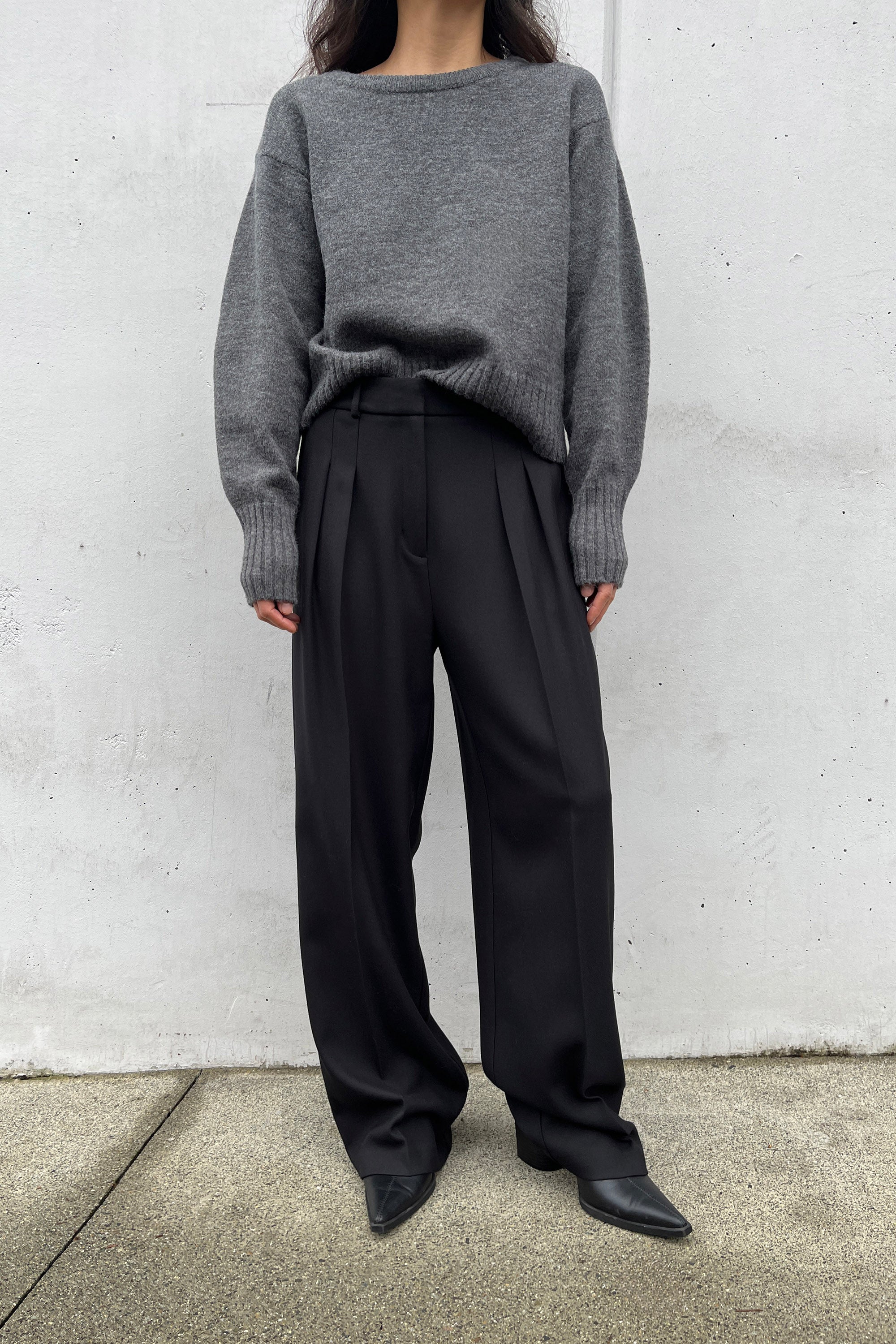 These wide leg trousers are made in a relaxed fit and has a high-rise waist. It has double pleats at the front and side pockets. A wardrobe staple to wear year after year, style yours with a ribbed sweater and boots.