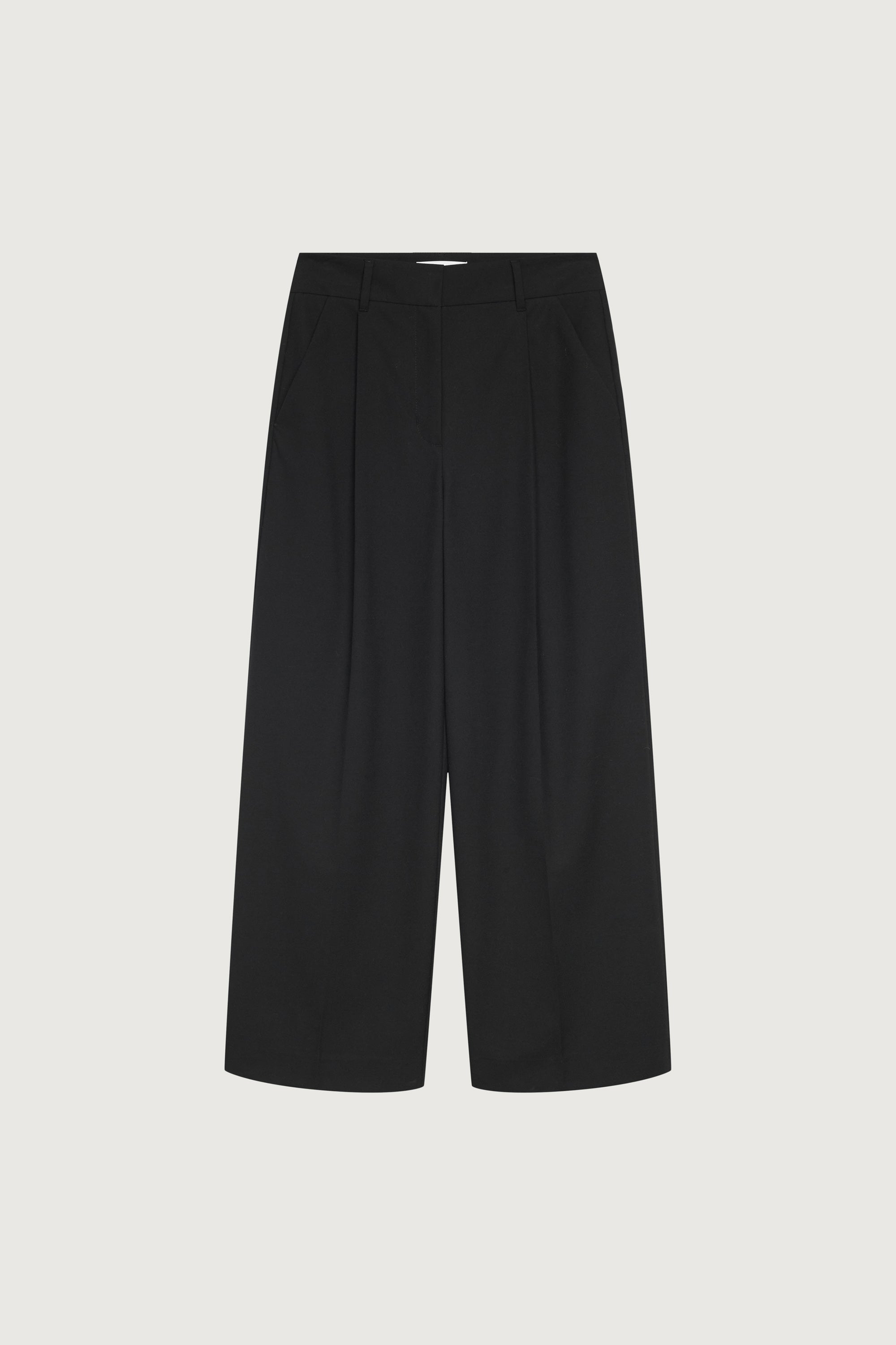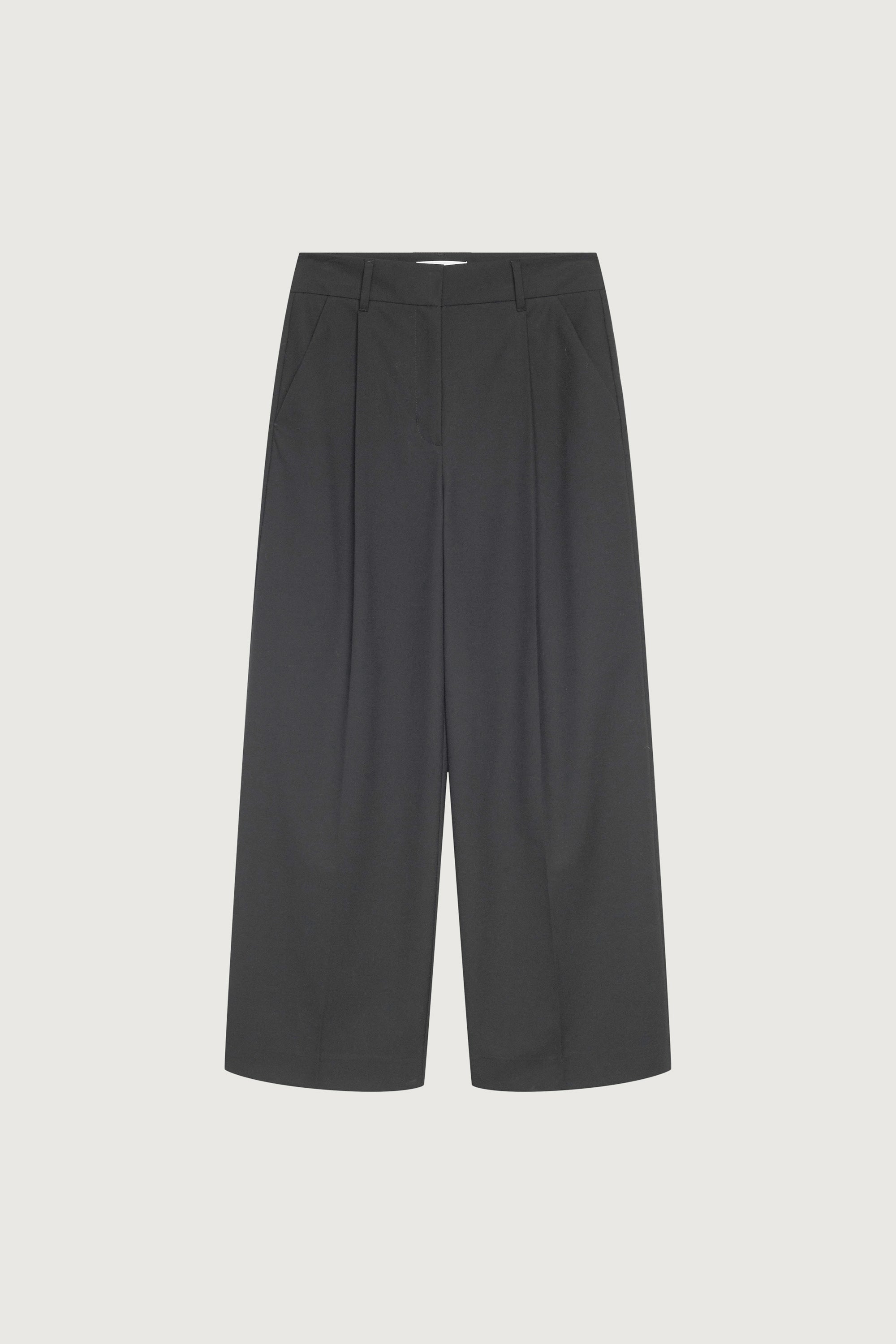 Suiting fabric. Front pleats. Side pockets. Welt pocket.