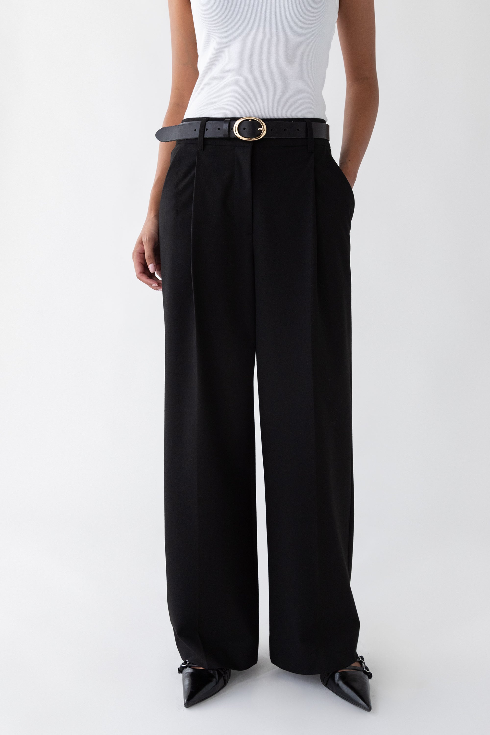 A new update to our best-selling Wide Leg Pant (PT-8193) — this version has the same relaxed fit with an updated fabric. It has the wide leg silhouette, front pleats, a belt loop, side pockets and a back welt pocket. A classic style to add to your essentials, wear it with a matching blazer and heels.