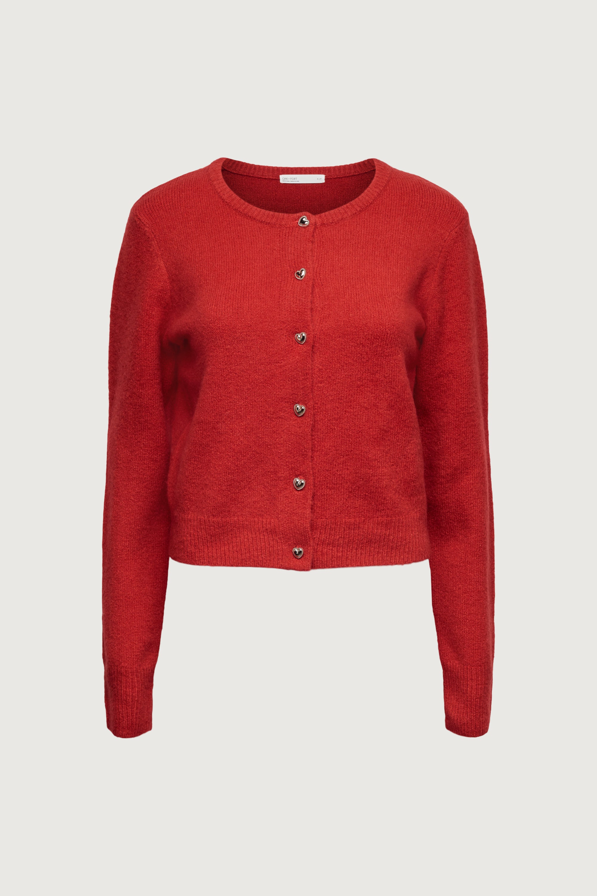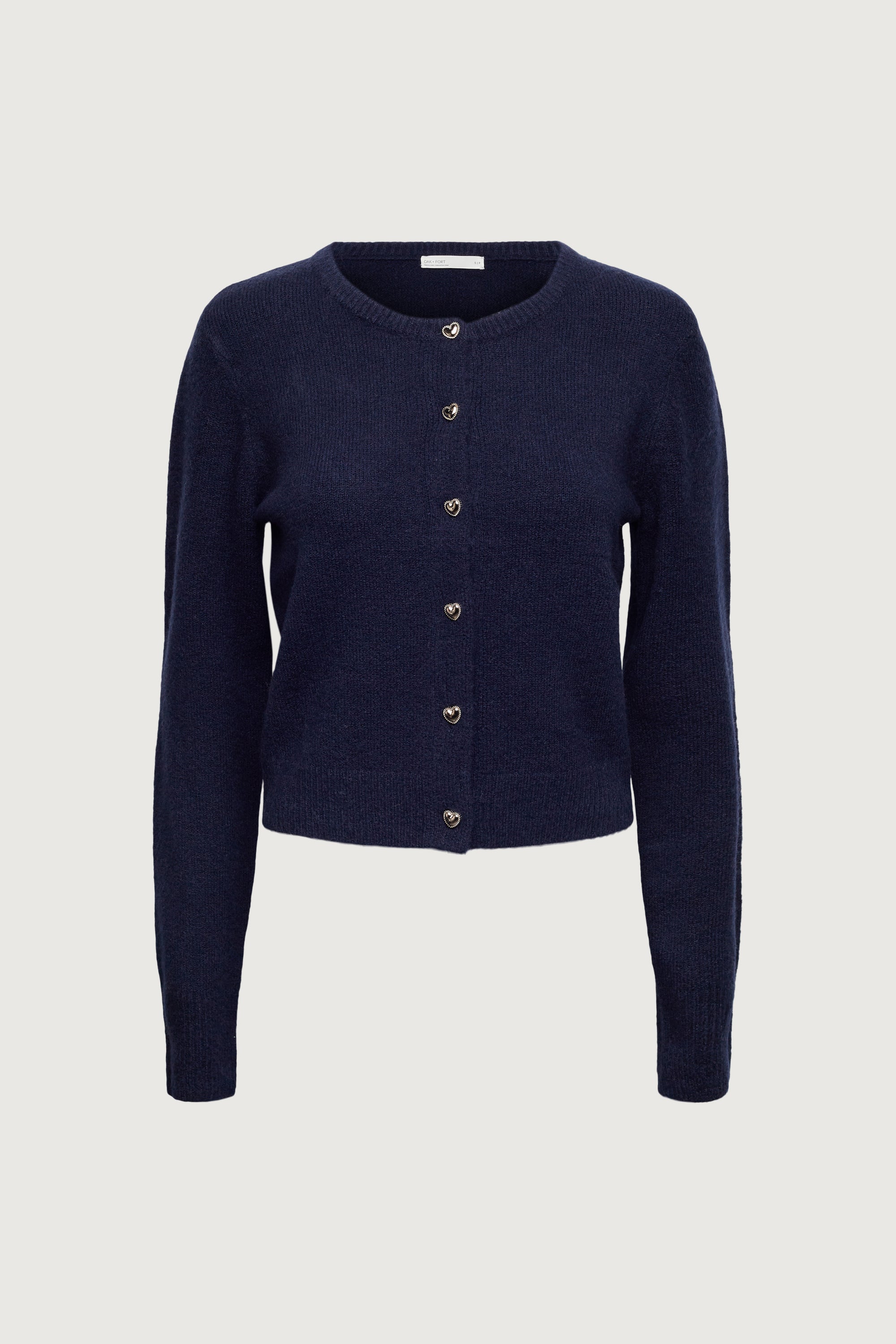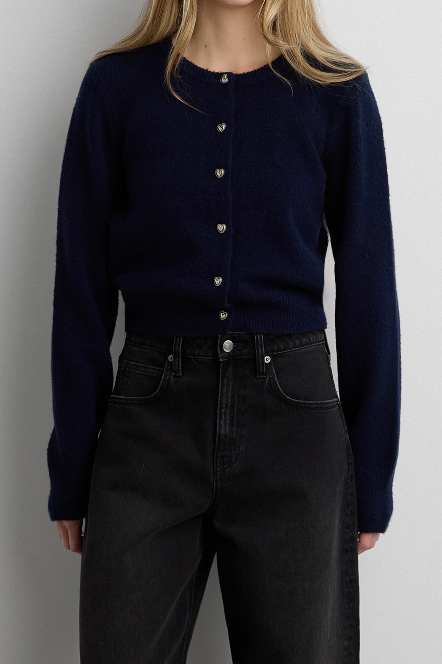 This cardigan is made in classic fit and is detailed with ribbed trims and heart buttons. A sweet touch to a wardrobe go-to, style yours with a pleated skirt and boots.