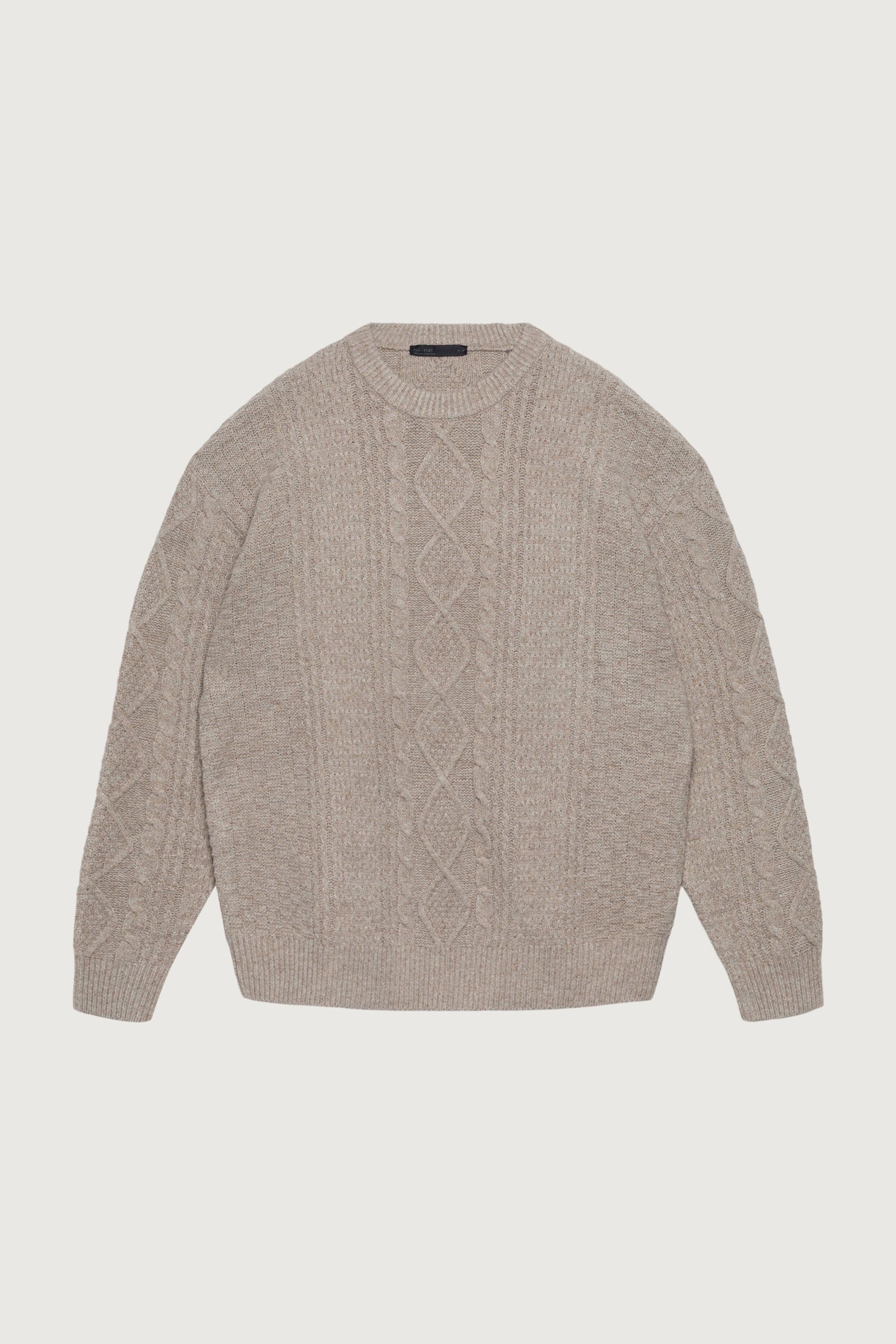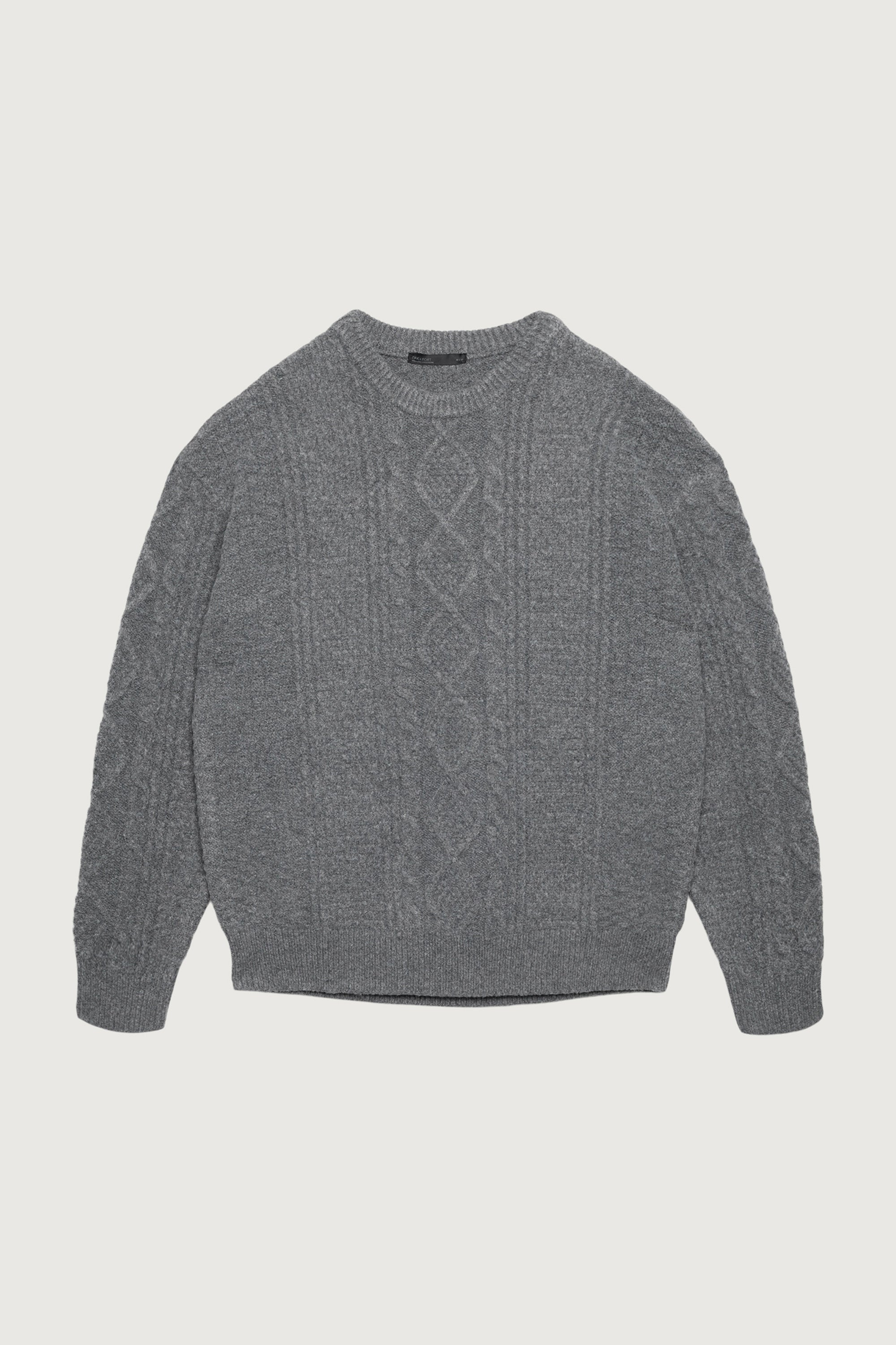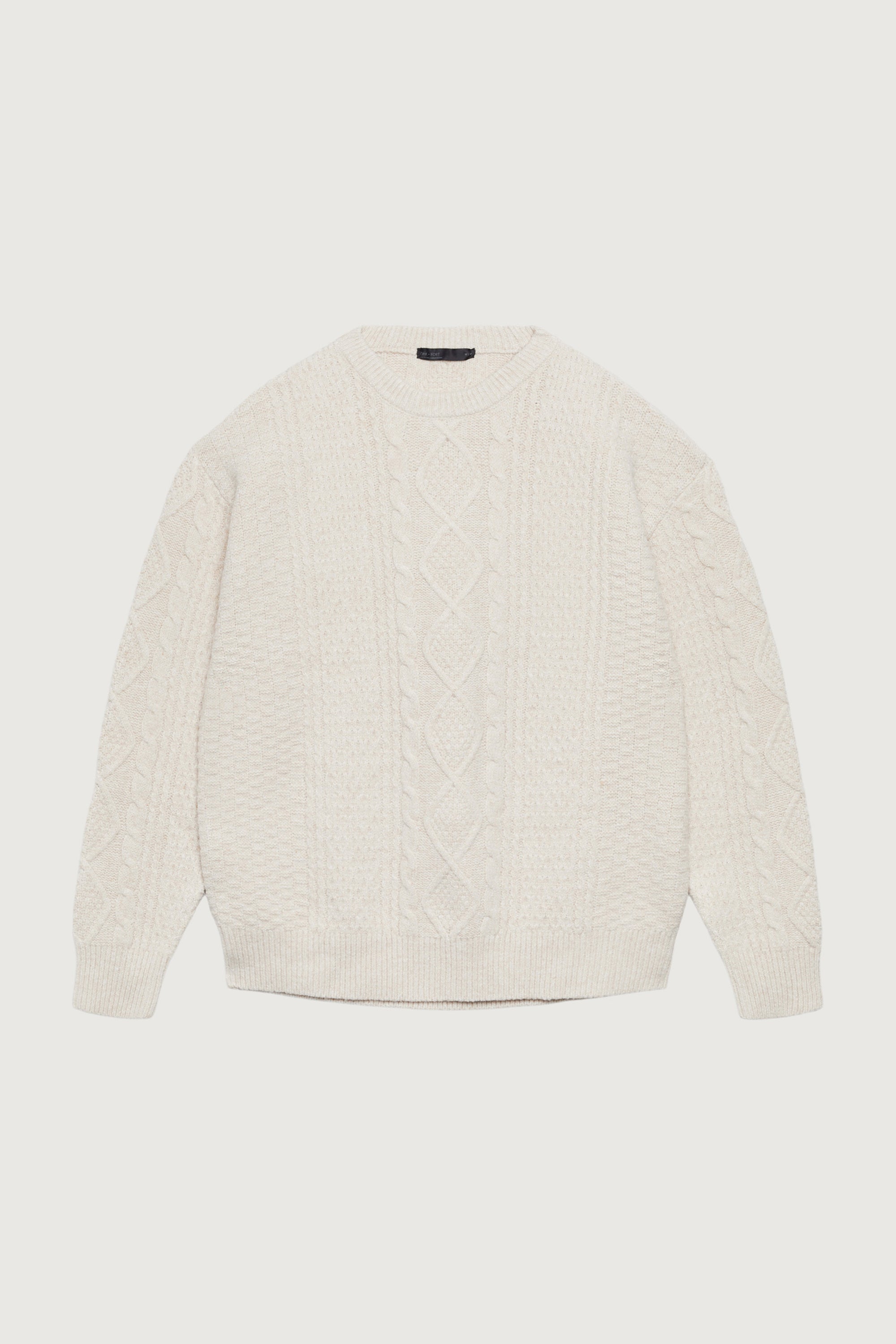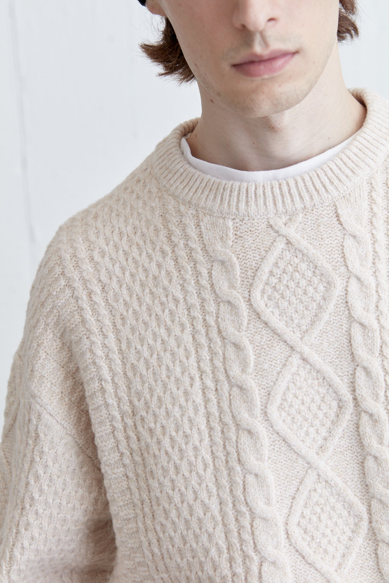 Relaxed fit. Crew neckline. Cable knit design. Ribbed trims. 27.5" length based on size M.