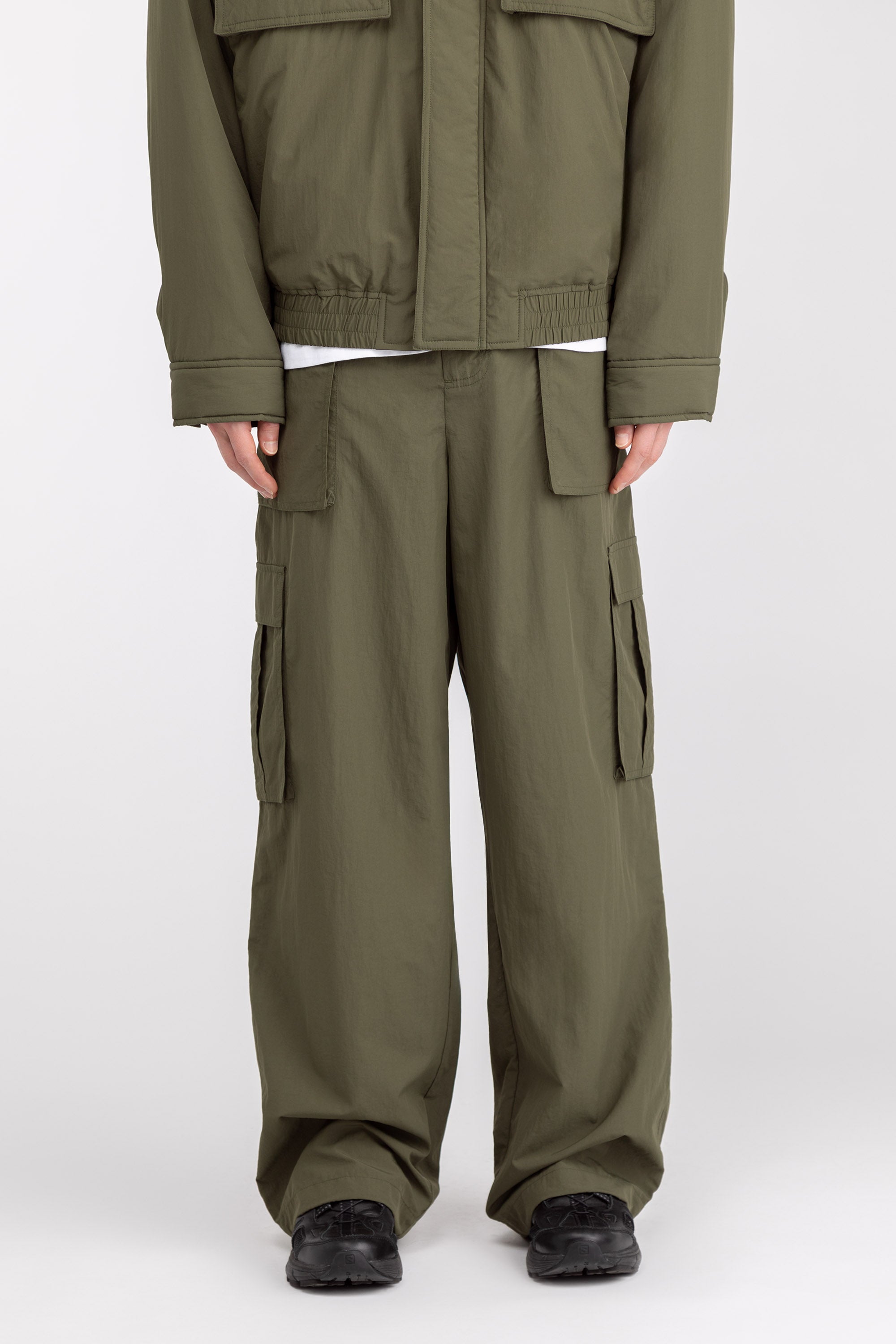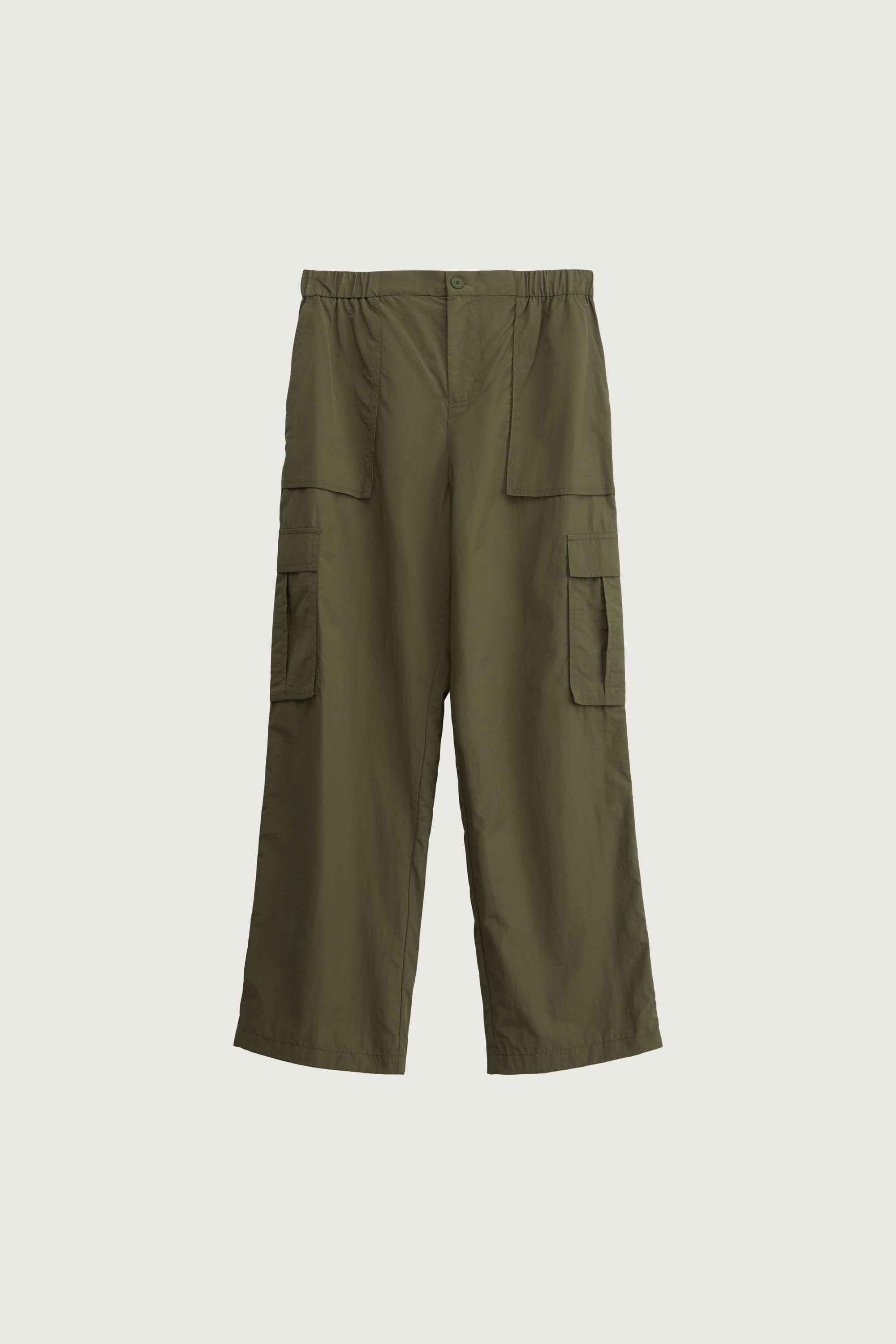 Relaxed fit. Straight leg. Mid-rise, elasticated waist. Nylon fabric. Cargo pockets. Toggle hem. 31" inseam based on size M.