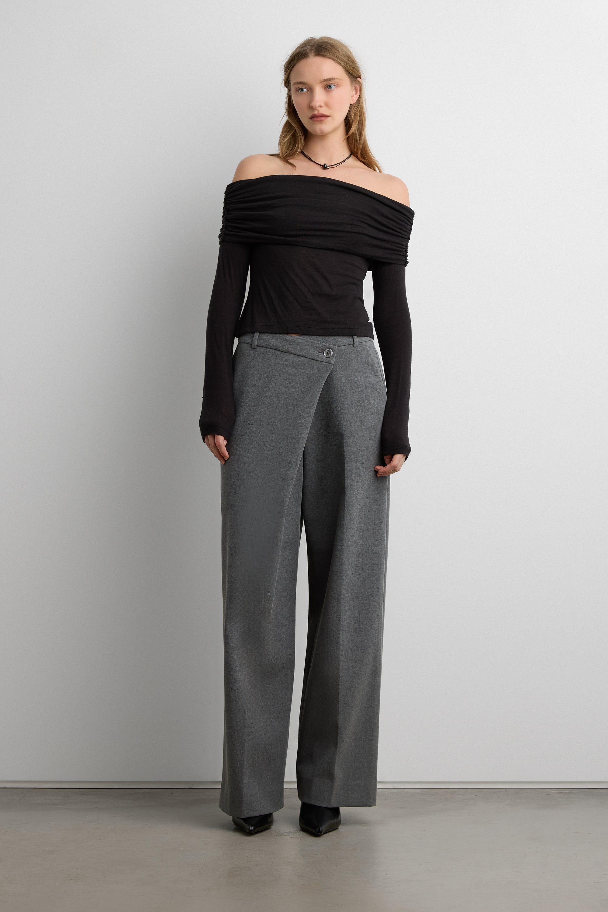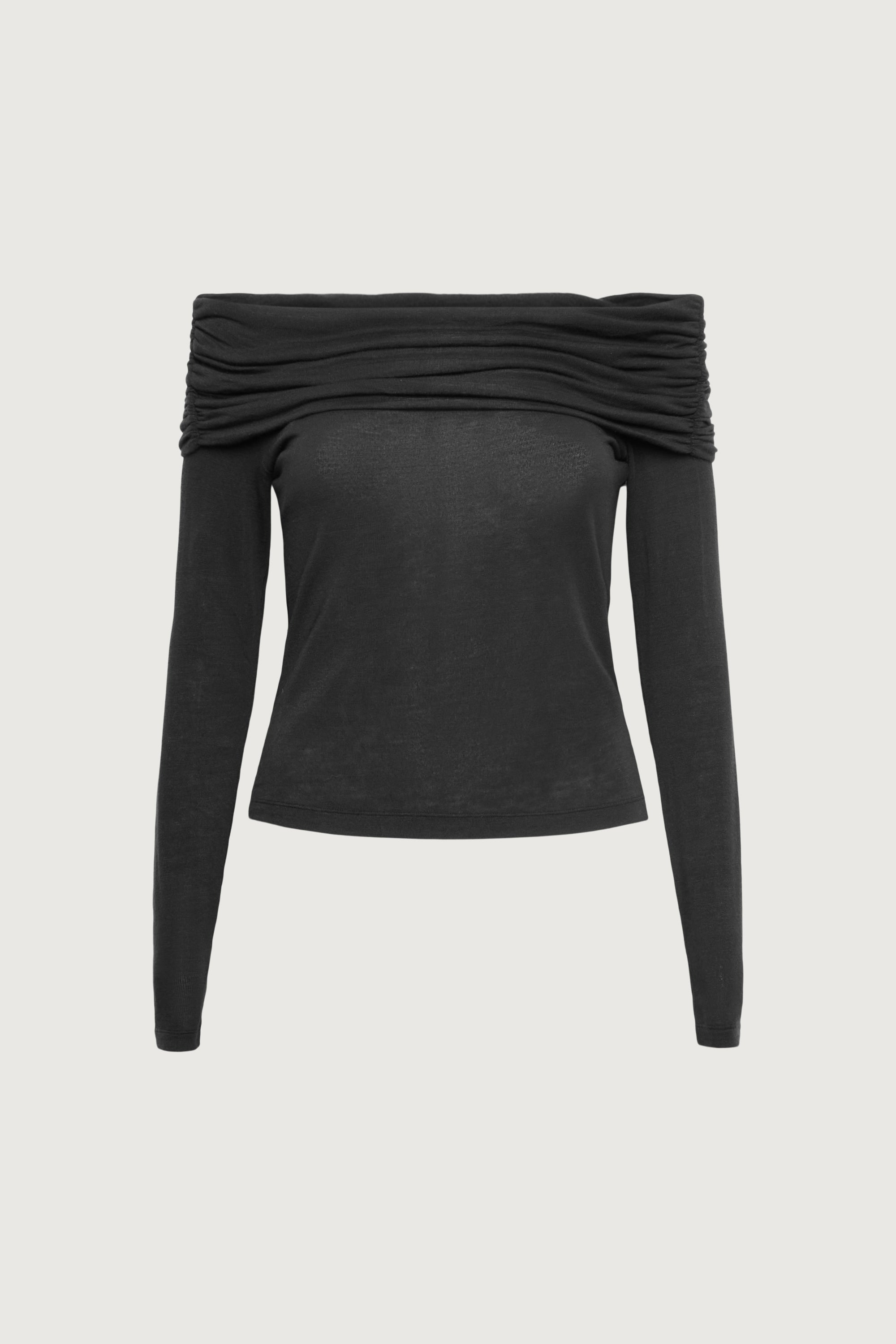 TENCEL™ LYOCELL. Fold-over off the shoulder design. Long sleeves.