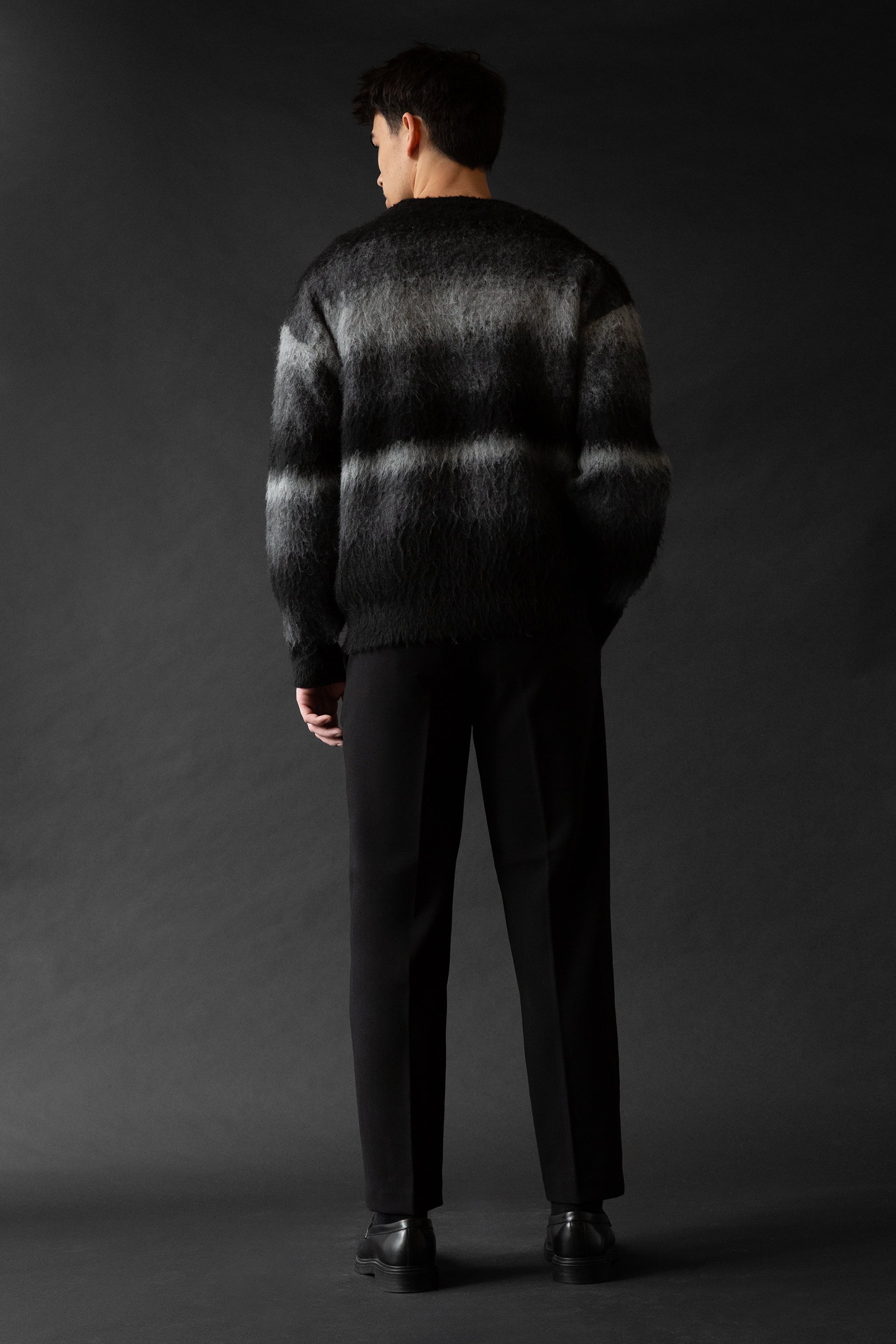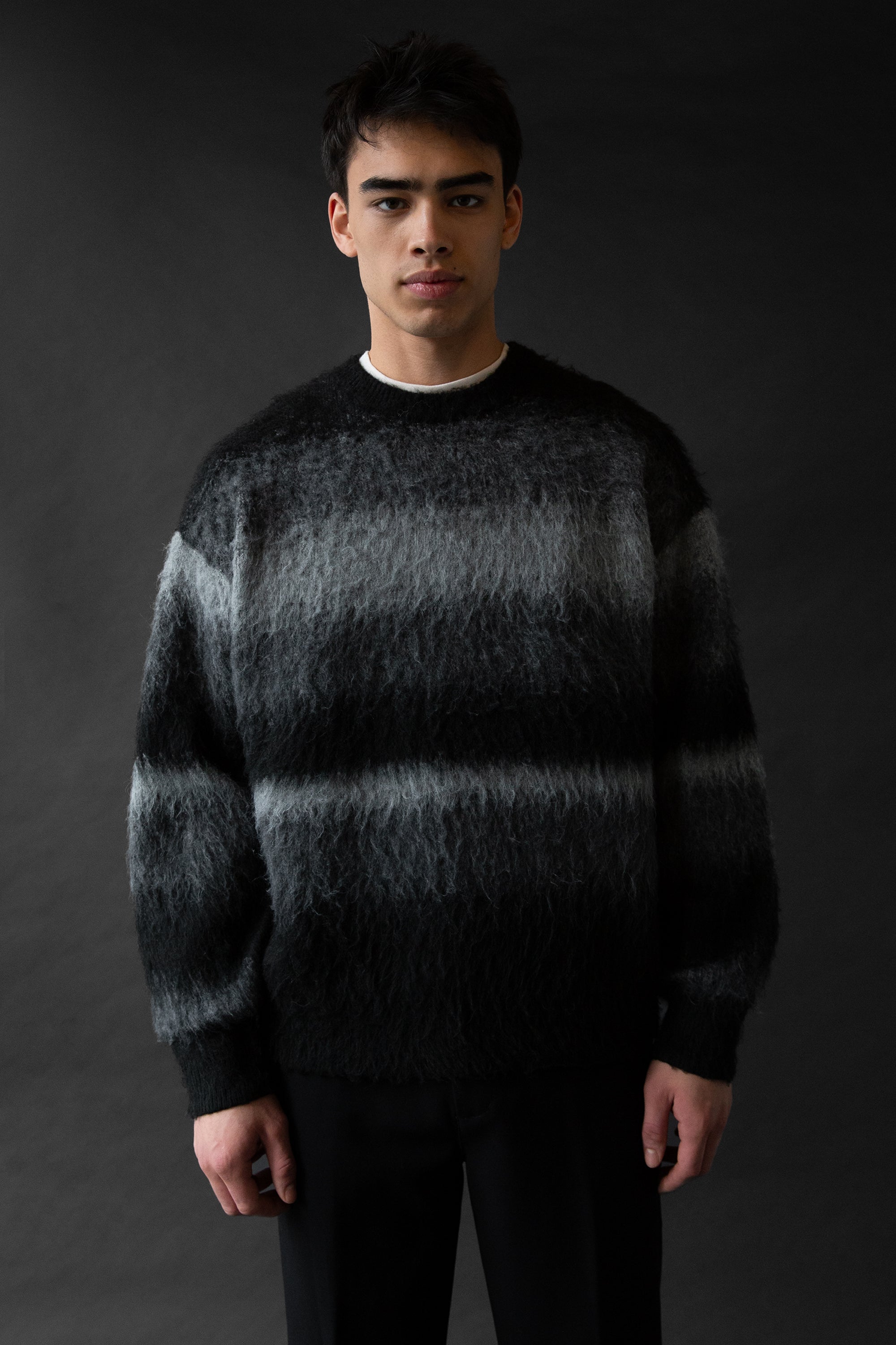 Relaxed fit. Ombre textured knit. Crew neckline. Ribbed trims. 27.5" length based on size M.