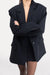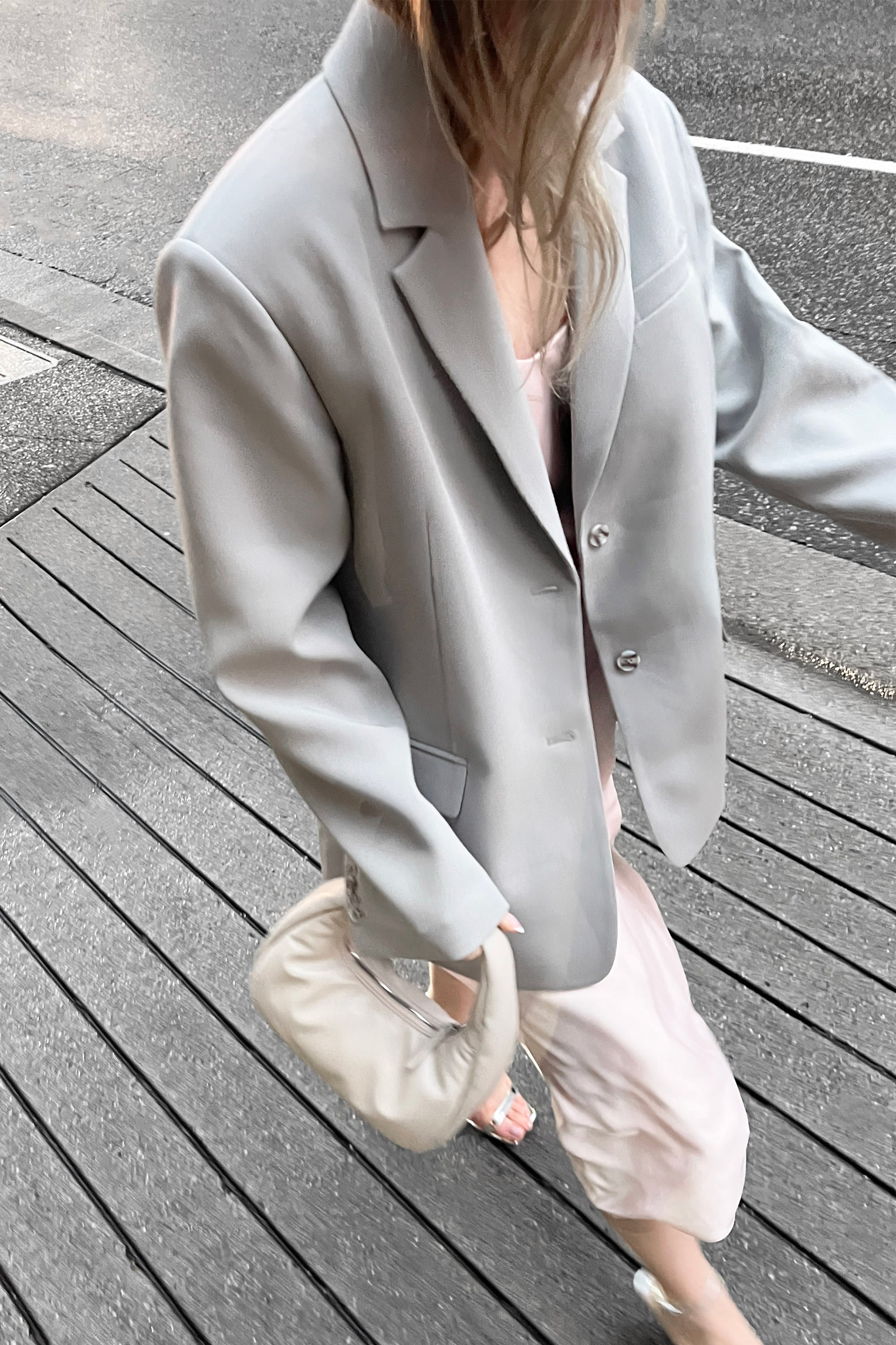 This oversized suiting blazer is a classic to own in your wardrobe. It has slightly dropped, padded shoulders, notched lapels, two-button closures and front flap pockets. This fabric is cut from recycled materials and is GRS certified — a climate-friendly approach to production which reduces the harmful impact on environment. Wear yours as a set with matching Mini Suiting Skirt (SK-11838-W).