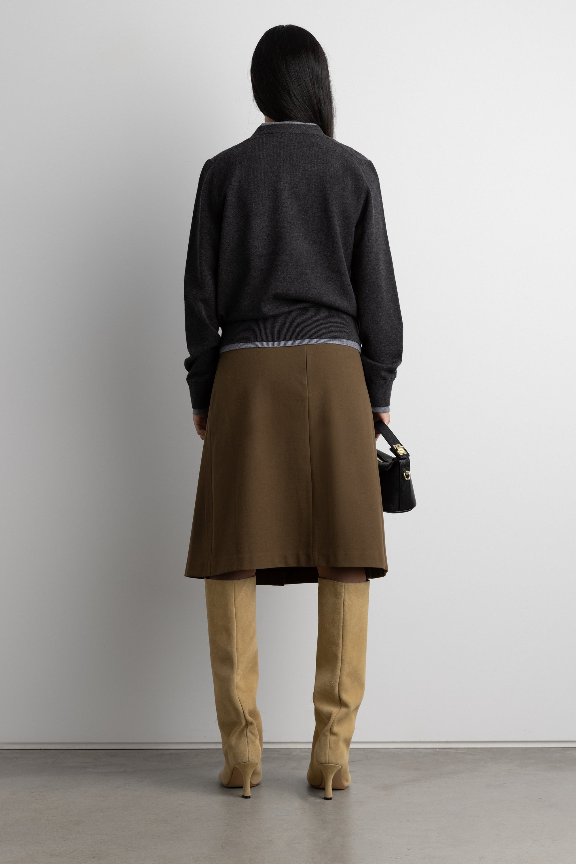 This suiting midi skirt is made in a classic fit and is designed with an A-line silhouette with three front pleats. Perfect for the new season ahead, style yours with a belt and a button front cardigan.