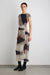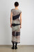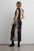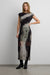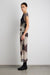 Sheer mesh fabric with lining. High neckline. Ruched detail. Front slit. Patterns may vary.