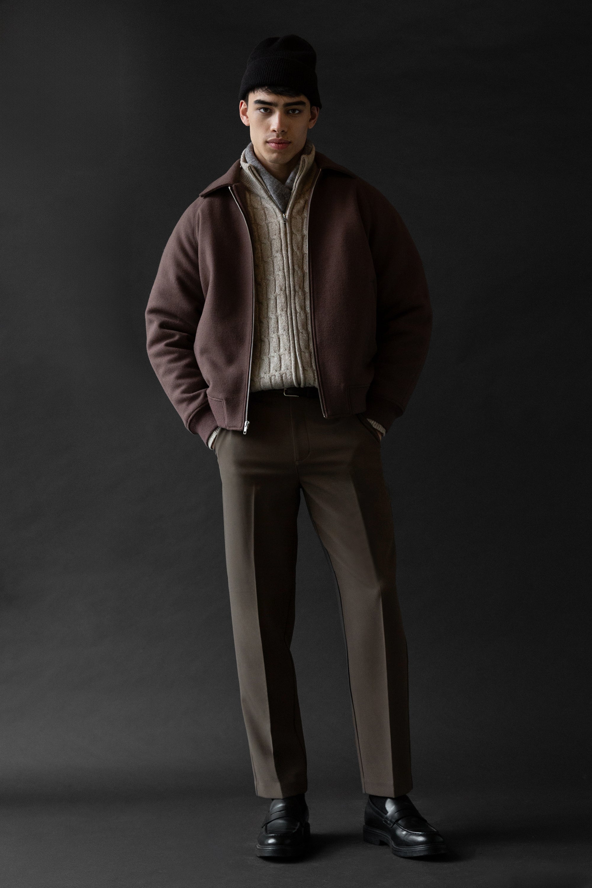 Slim fit. Mid-rise waist. Tapered leg. Side pockets and back welt pockets. Belt loop option. 28.5" length based on size 32.