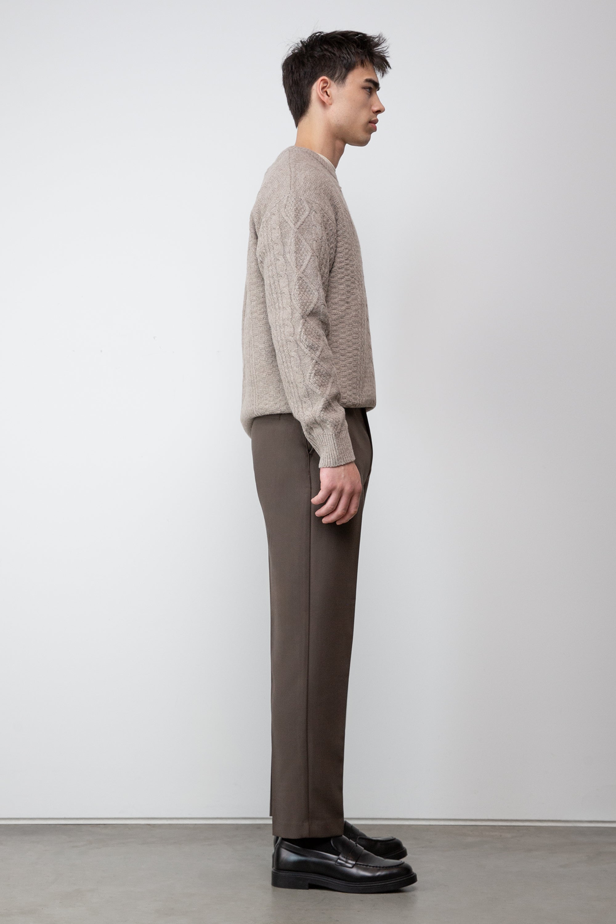 STRIPED TEXTURED KNIT CREWNECK SWEATER