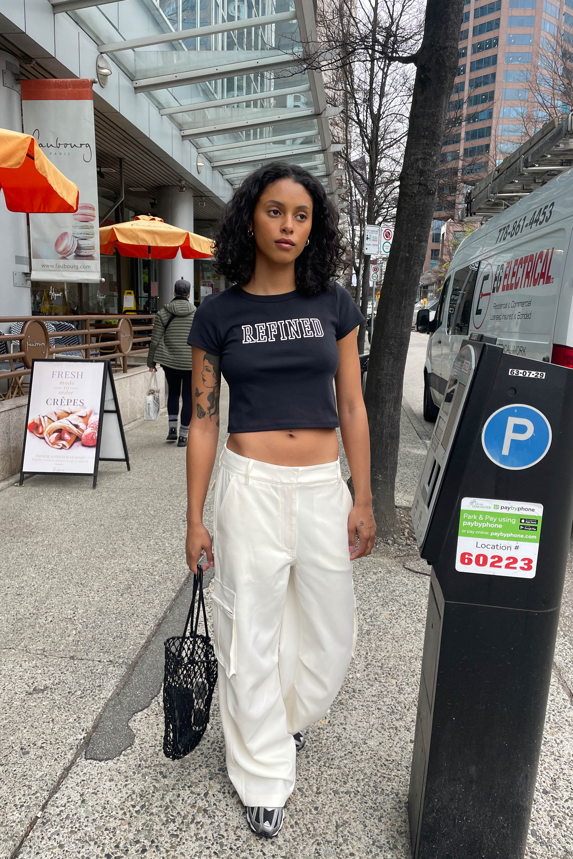 This wide leg suiting cargo pant is made in a relaxed fit and has a mid-rise waist. A versatile option to wear during your week and into the weekend. Pair it with the Cropped Blazer (OW-11848-W).