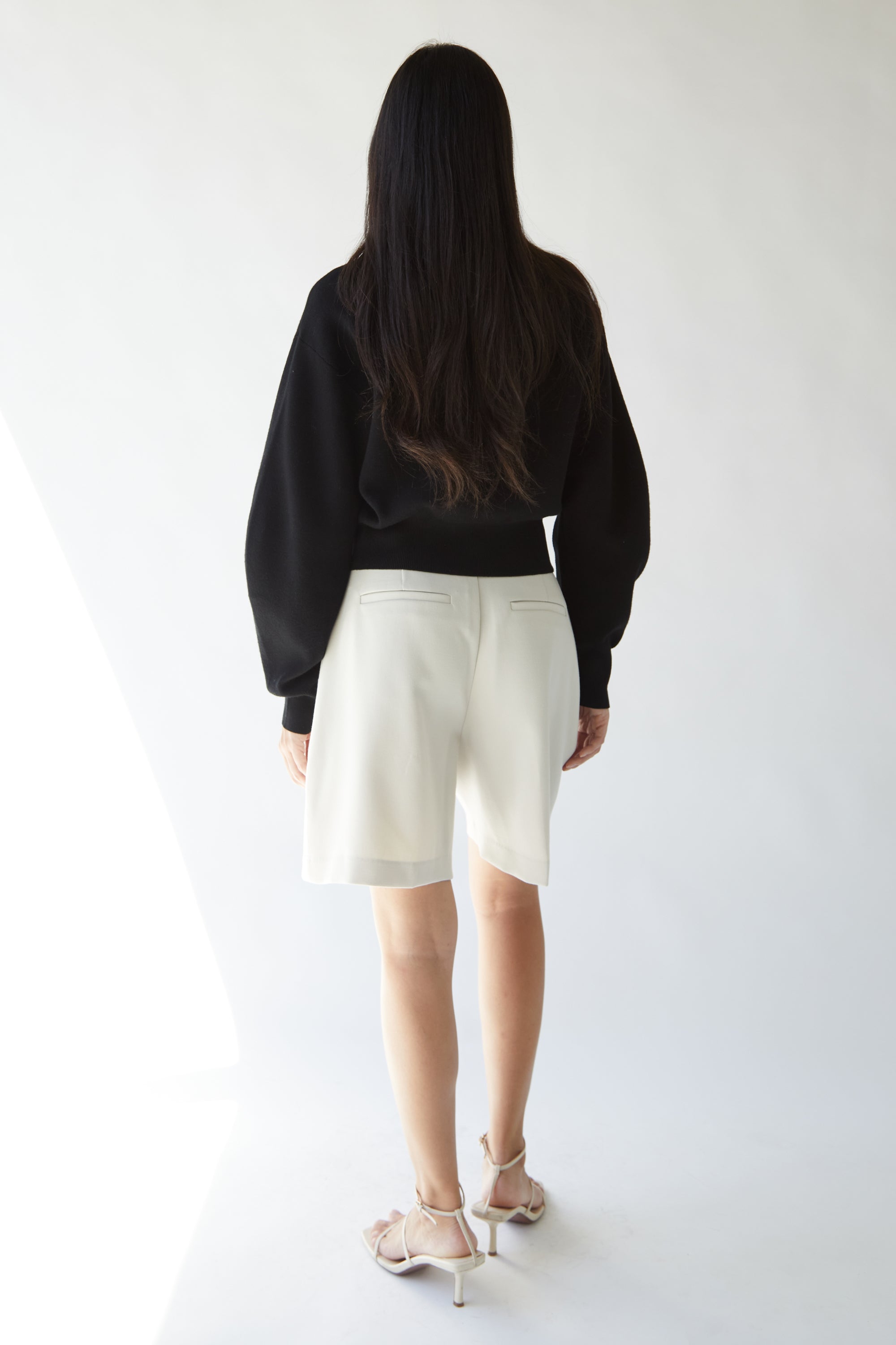 These suiting shorts are the perfect addition to your summer wardrobe. It sits high-waist and has a relaxed fit. Style yours with a tube top and a belt.