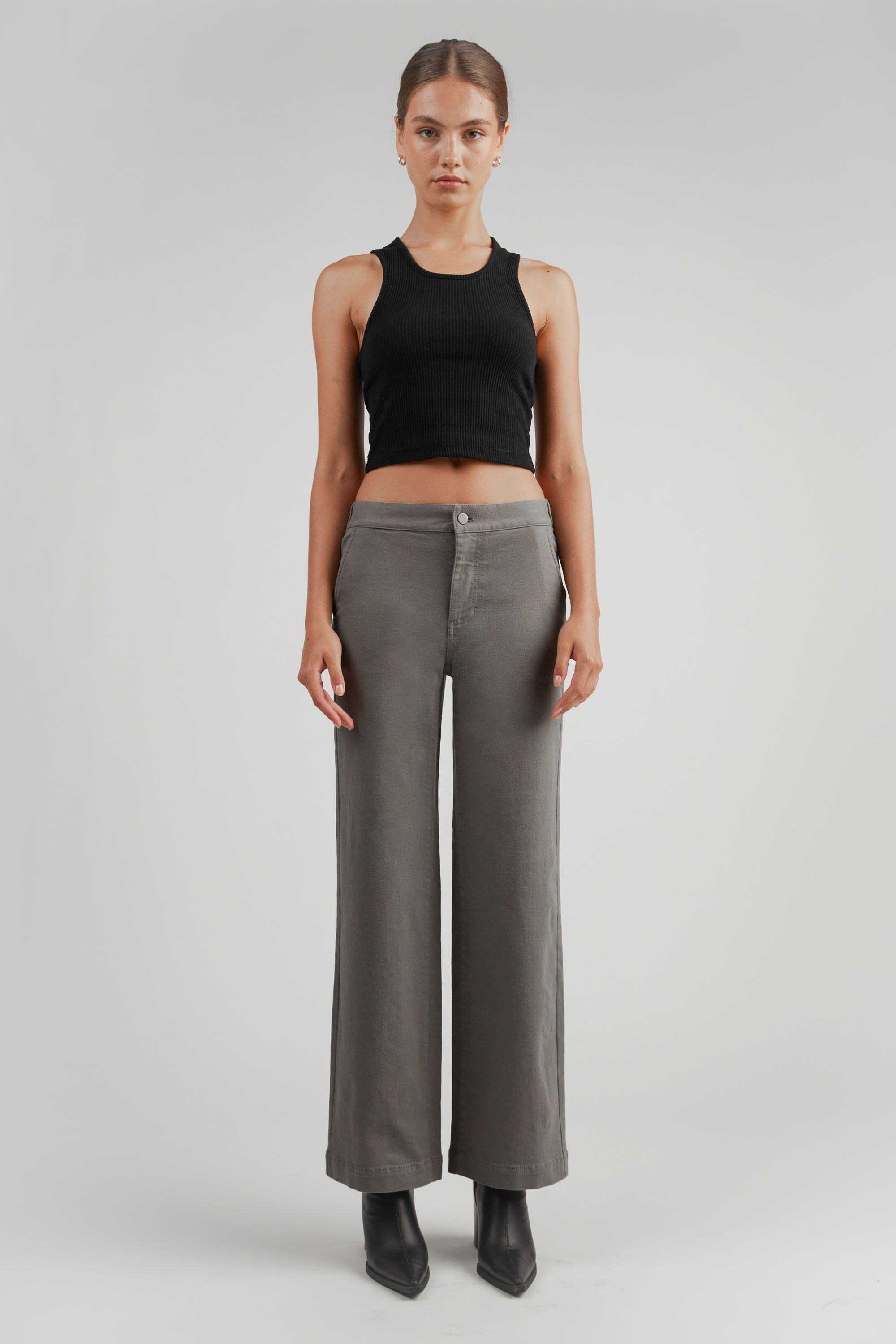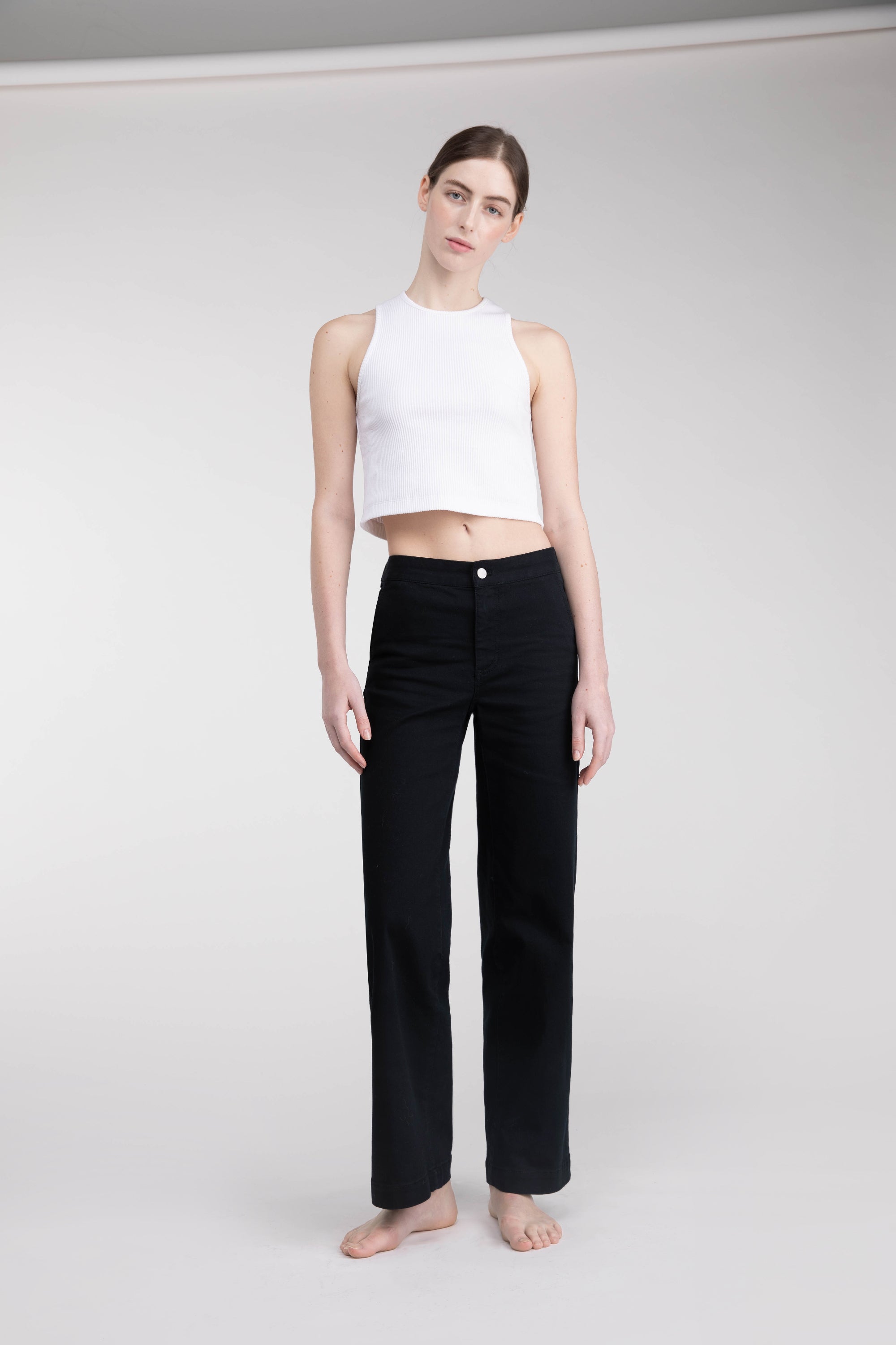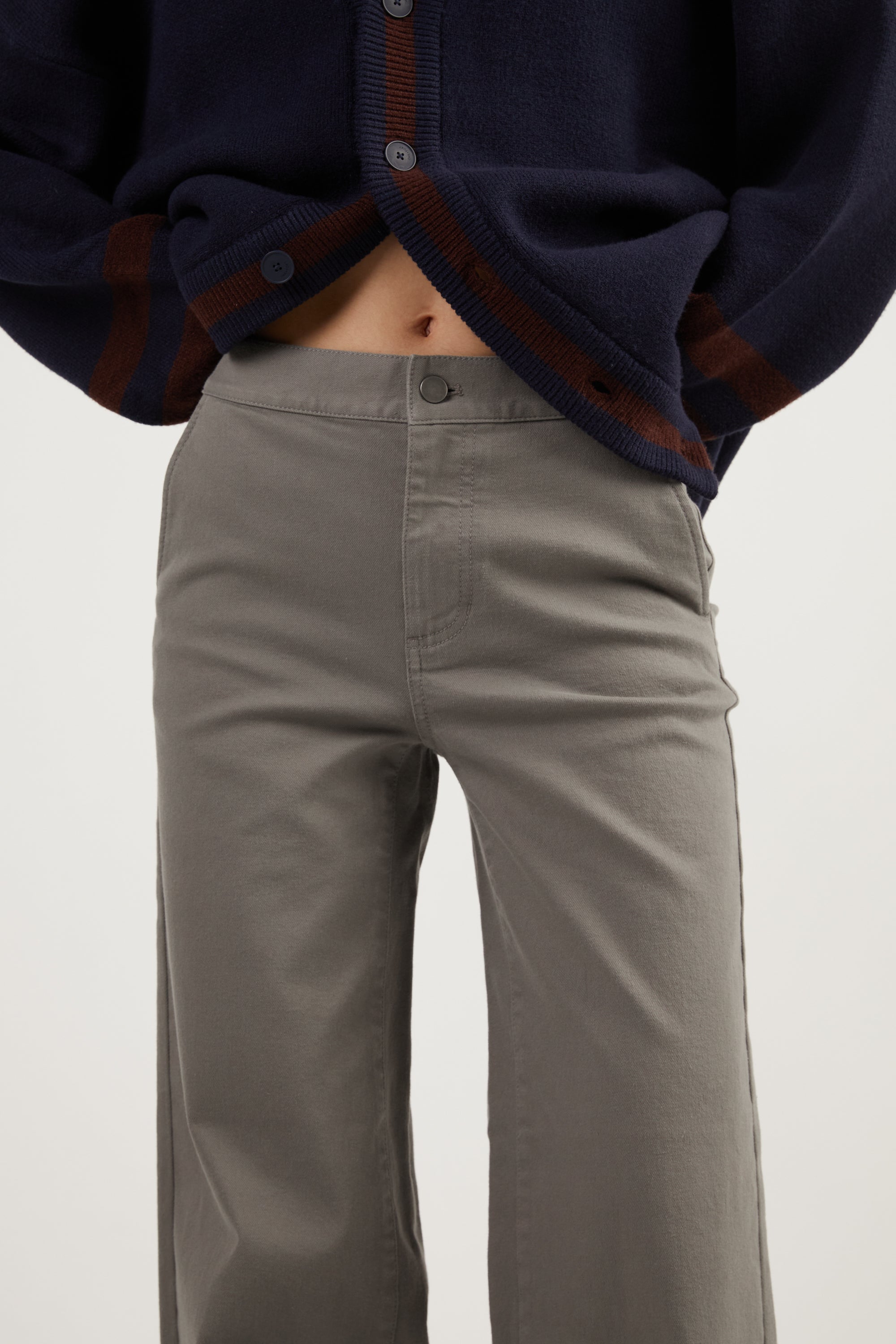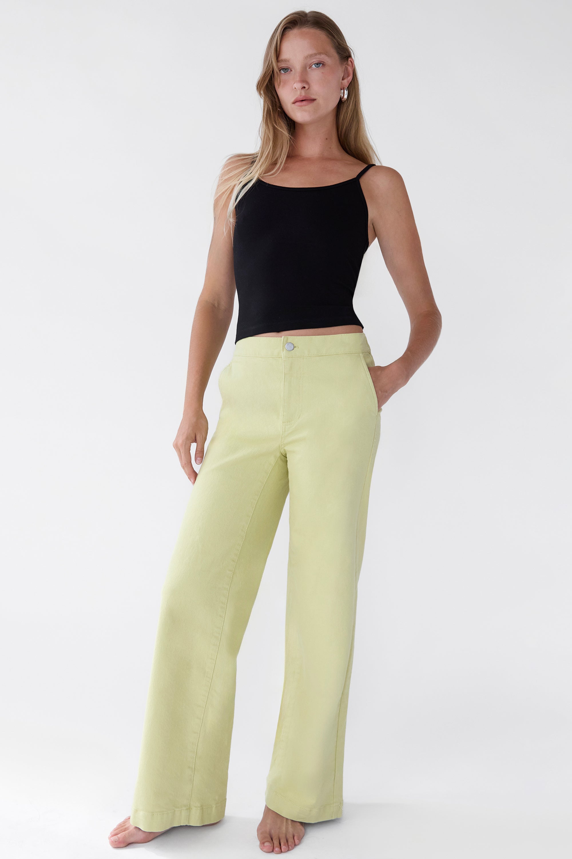 Our best selling twill pants are back now made in long length with a 30" inseam. It's made from stretchy, slub twill and has a mid-rise waist with an elasticated back. Now in new colours to wear in any season, wear it with cropped sweaters and sneakers.