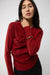 Asymmetrical off the shoulder cap sleeve sweater in cherry — main imageASYMMETRICAL OFF THE SHOULDER CAP SLEEVE SWEATER in Cherry — alternate angle