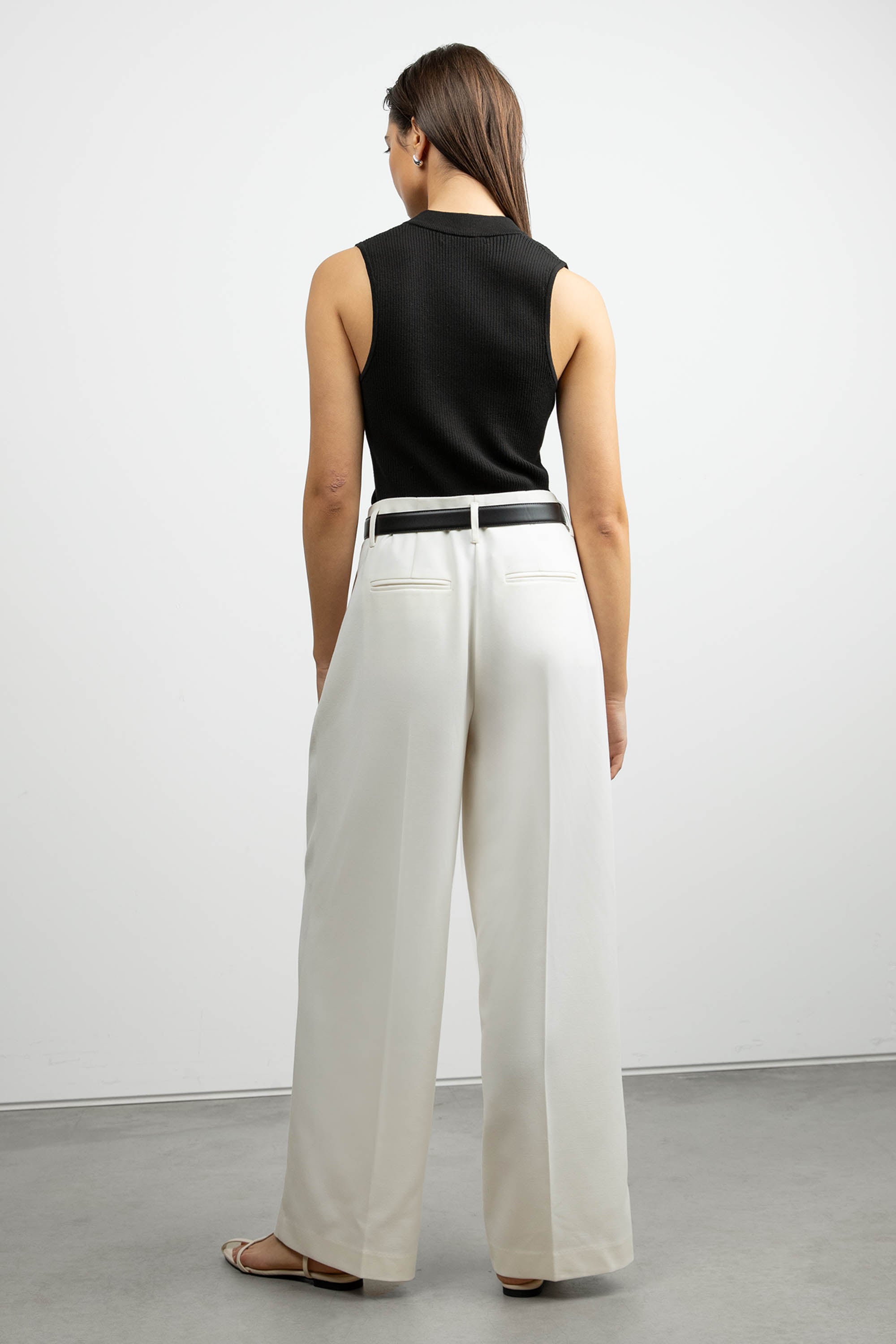 These high-rise wide leg suiting pants are made in a relaxed fit and is detailed with front pleats and belt loops. A staple piece to own this season, style it with a tube top and heeled wedges.