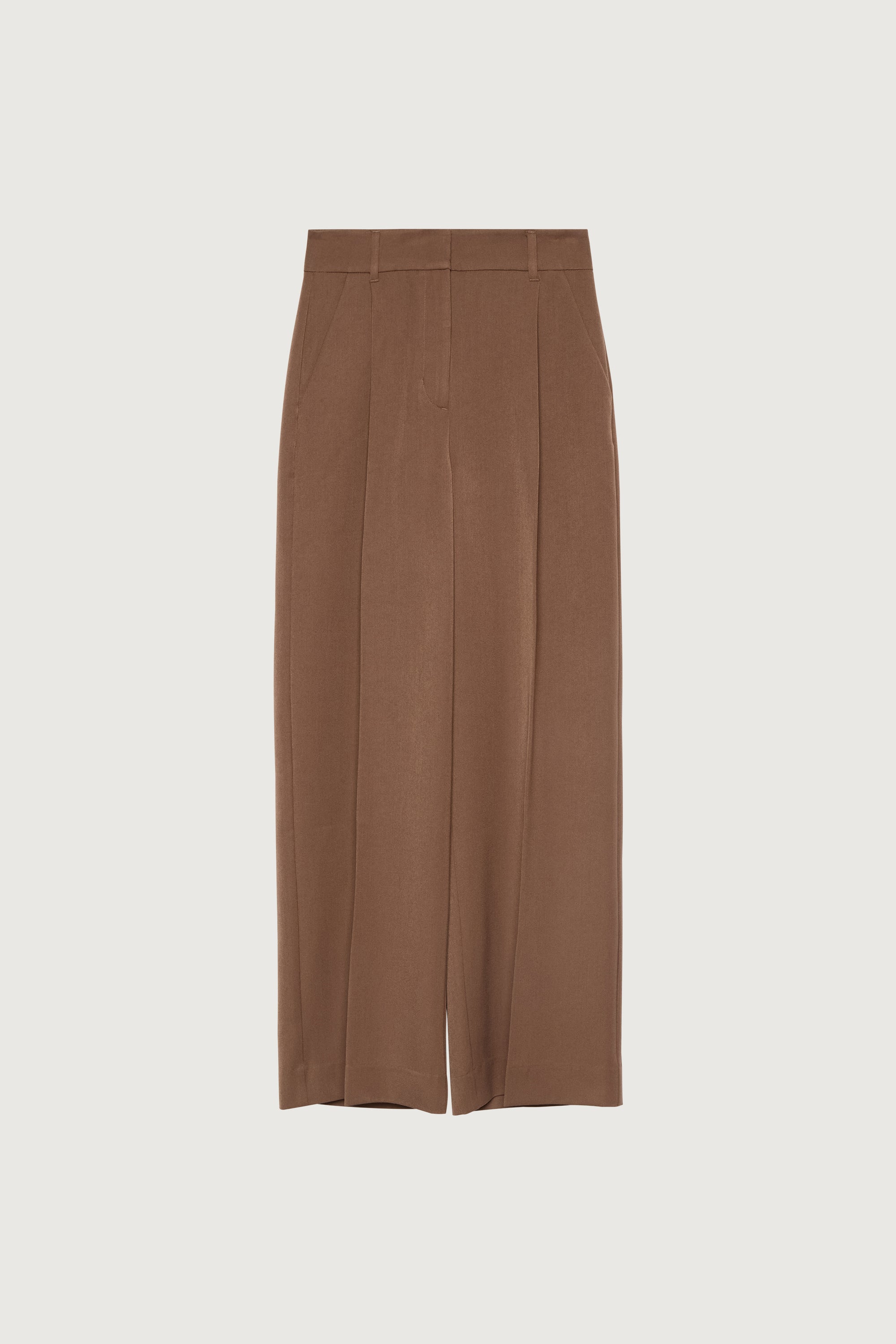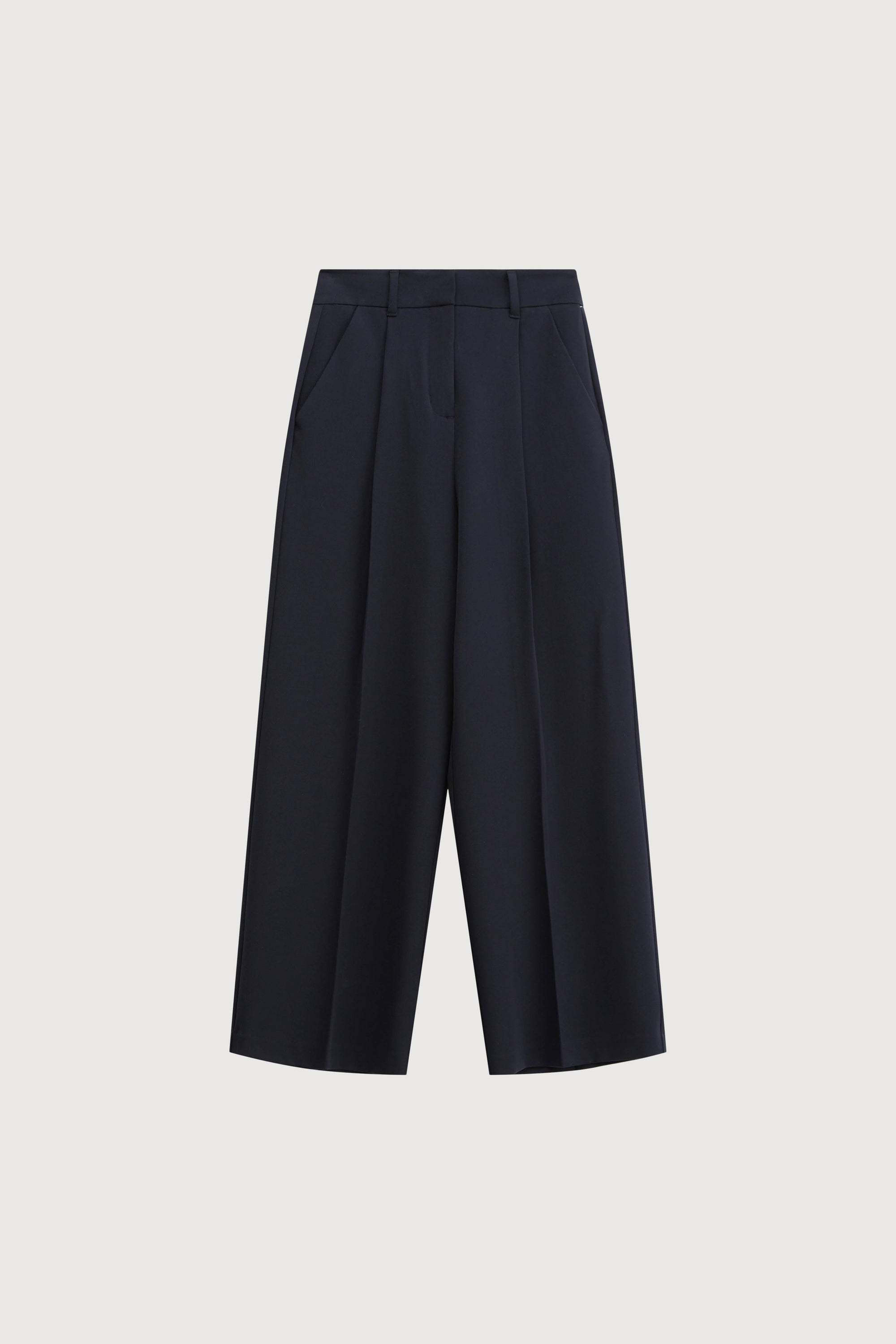 These wide leg trousers are made from woven twill in a relaxed silhouette. It has a flattering high-rise waist, side pockets and front pleats to give that tailored look. The wide leg design is the perfect detail to elevate any look, wear yours with heels or with sneakers for a more casual look.
