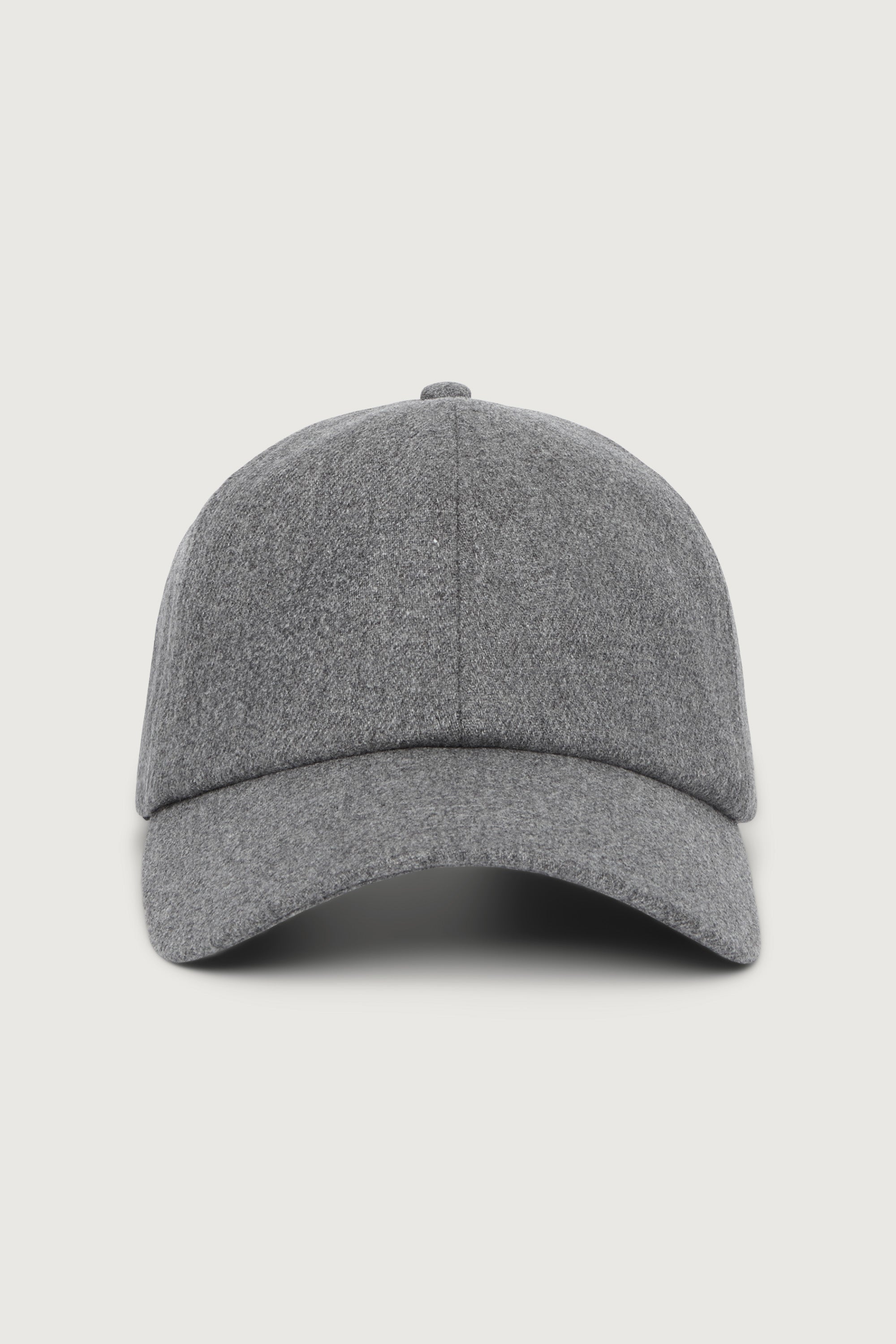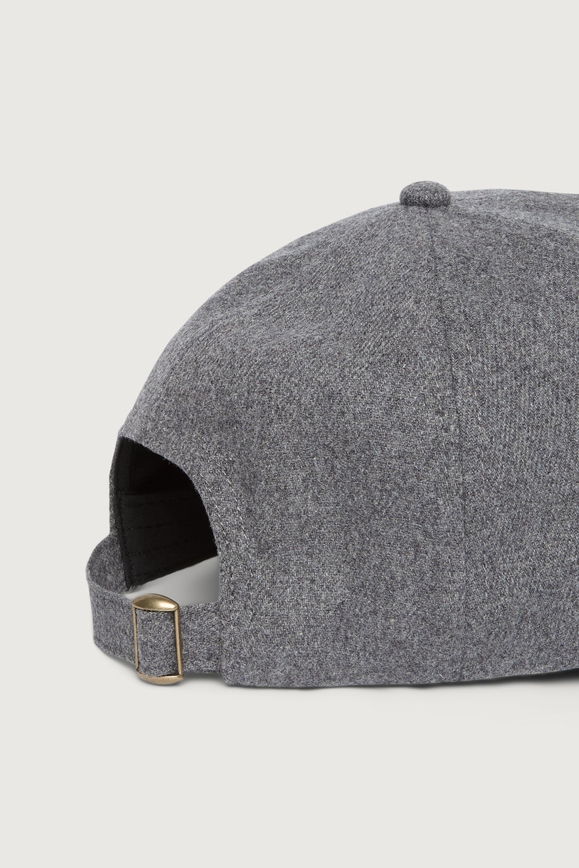 Wool blend fabric. Classic baseball cap silhouette. Adjustable metal strap.